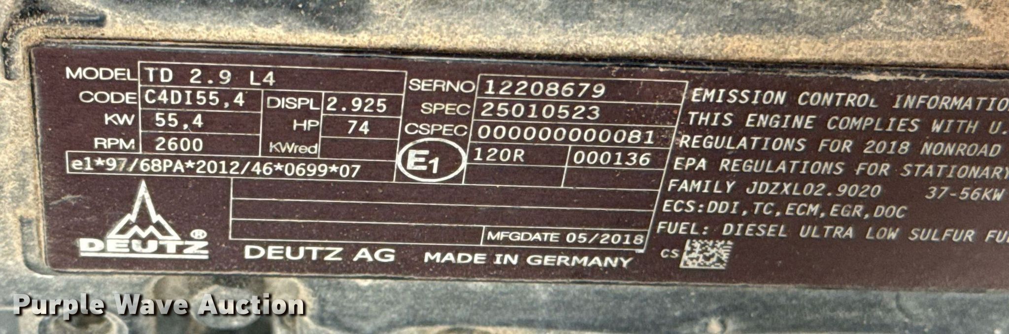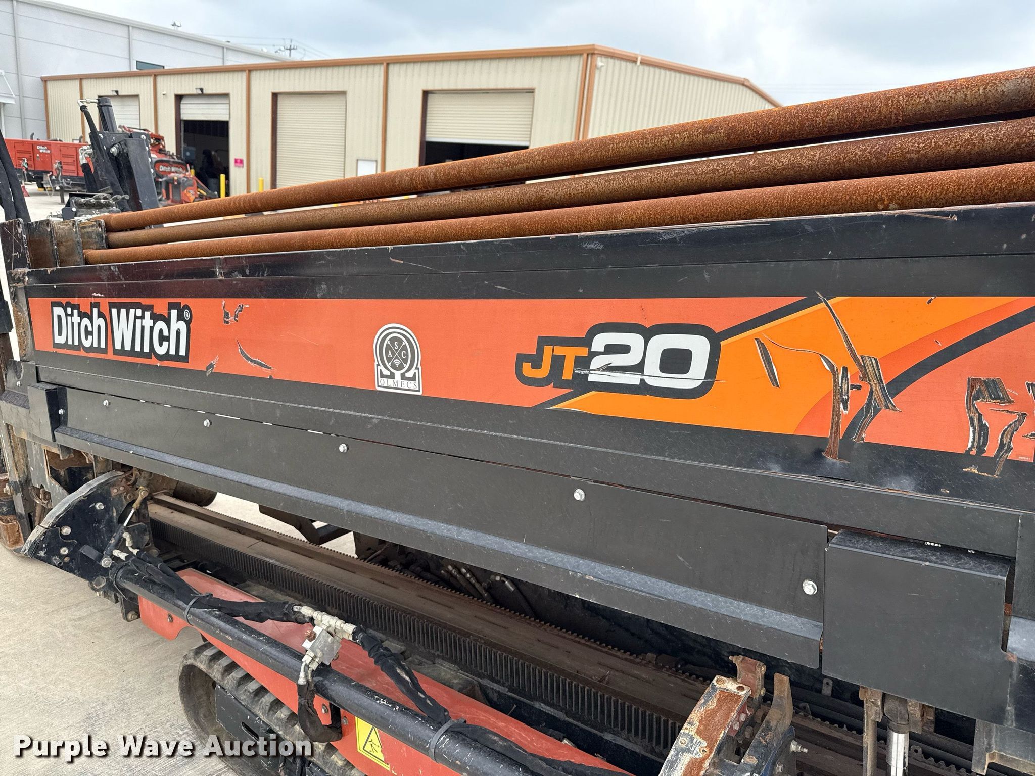 2019 Ditch Witch JT20 directional boring unit. Hours: 2,506 on meter, Serial: DWPJT20BHK0000060. Engine Deutz TD 2.9 L4, Serial: 12208679, Displacement: 2.925L, Cylinders: 4, Fuel type: Diesel, HP: 74, kW: 55. Features Ground drive remote: Tethered, Water pump FMC L0618COMP, GPM: 35, Drill stems On drill: 28, Additional: 14, Drill stem length: 10' Diameter: 2.5", Auto rod loader, Rear hydraulic stabilizers, Hydraulic stake down. Tracks Width: 11", Rubber. Notes Warning indicator: Strike voltage input error, Strike current input error, Self-Test Voltage Error, Self-Test Current Error, Voltage Limiter not connected, Current coil not connected. APEX Directional Drilling, LLC. Selma, TX 78154