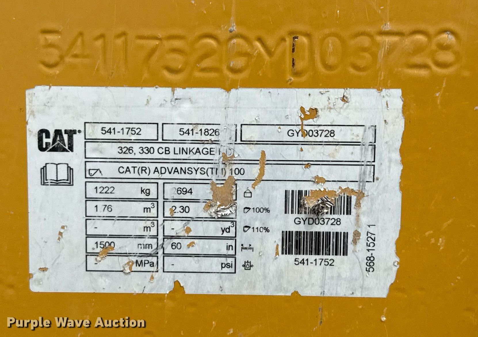 2023 Caterpillar 330GC excavator. Hours: 2,740 on meter, Miles or hours may vary, unit still in use, Serial: CAT00330VSCZ40009, Unit #: 1226. Engine Caterpillar C7.1, Serial: D8X02416, Displacement: 7.01L, Cylinders: 6, Fuel type: Diesel, kW: 151. Transmission Hydrostatic, Two speed travel. Operators station Enclosed cab, AC, Heat, Backup camera, Pattern changer. Features Auxiliary hydraulics Standard, Counter weights, Boom Standard, Stick Stick length: 10' 6", Bucket Caterpillar, Capacity: 2.3 cu.yd., Width: 60", Teeth: 7. Tracks Width: 31.5", Steel, Grouser pads: Triple. Welch Excavation. Winona, TX 75792