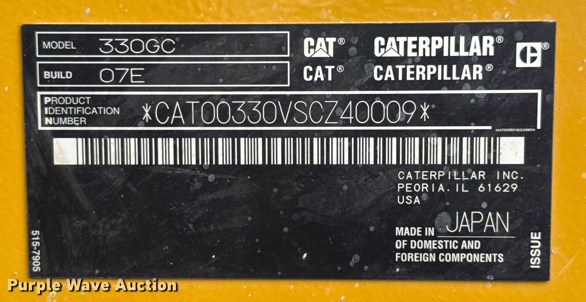 Purple Wave is selling a used Hydraulic Excavator in Texas. This item is a 2023 Caterpillar 330GC excavator with the following: Hours: 2,740 on meter, Miles or hours may vary, unit still in use, Serial: CAT00330VSCZ40009, Unit #: 1226