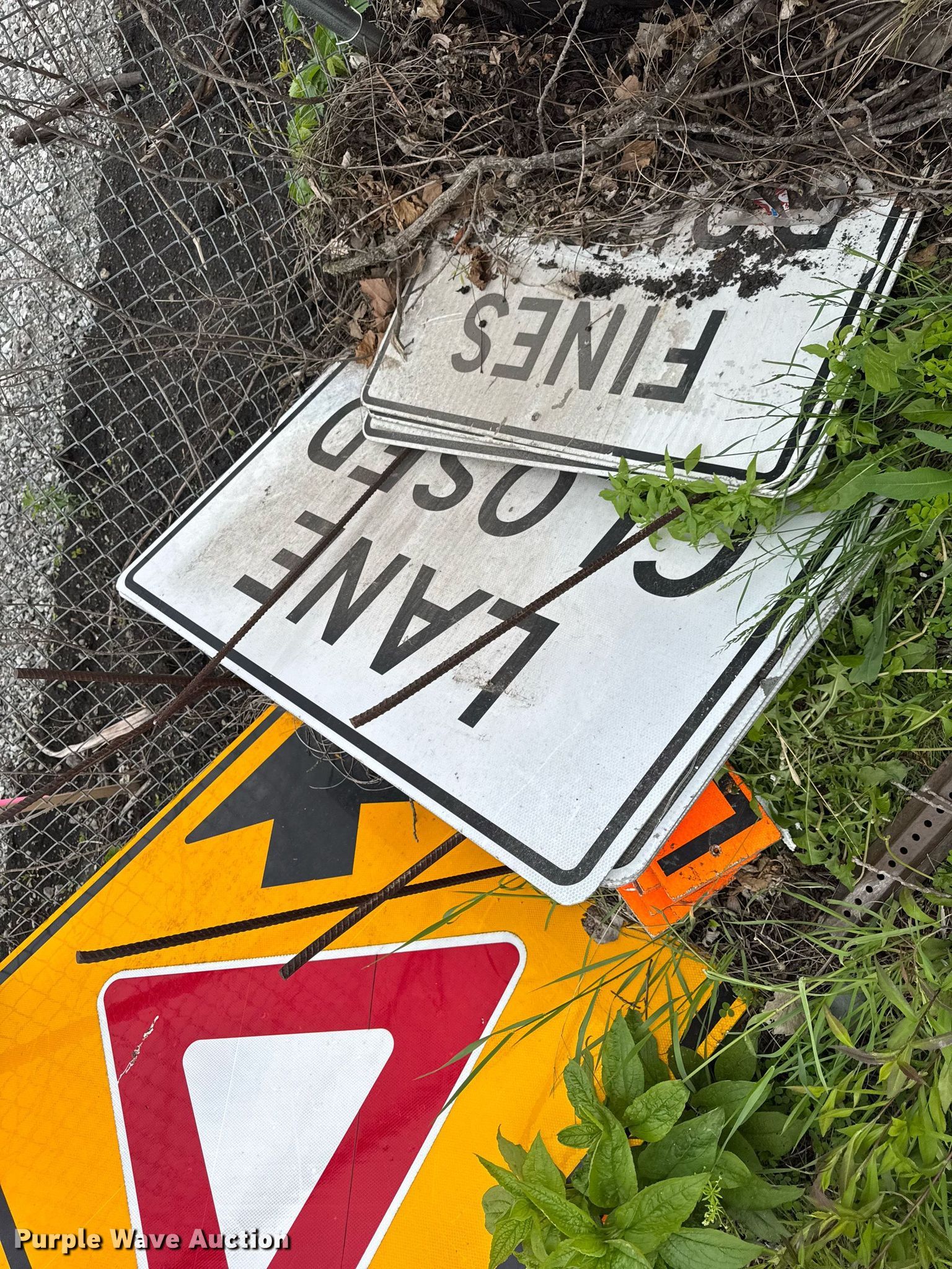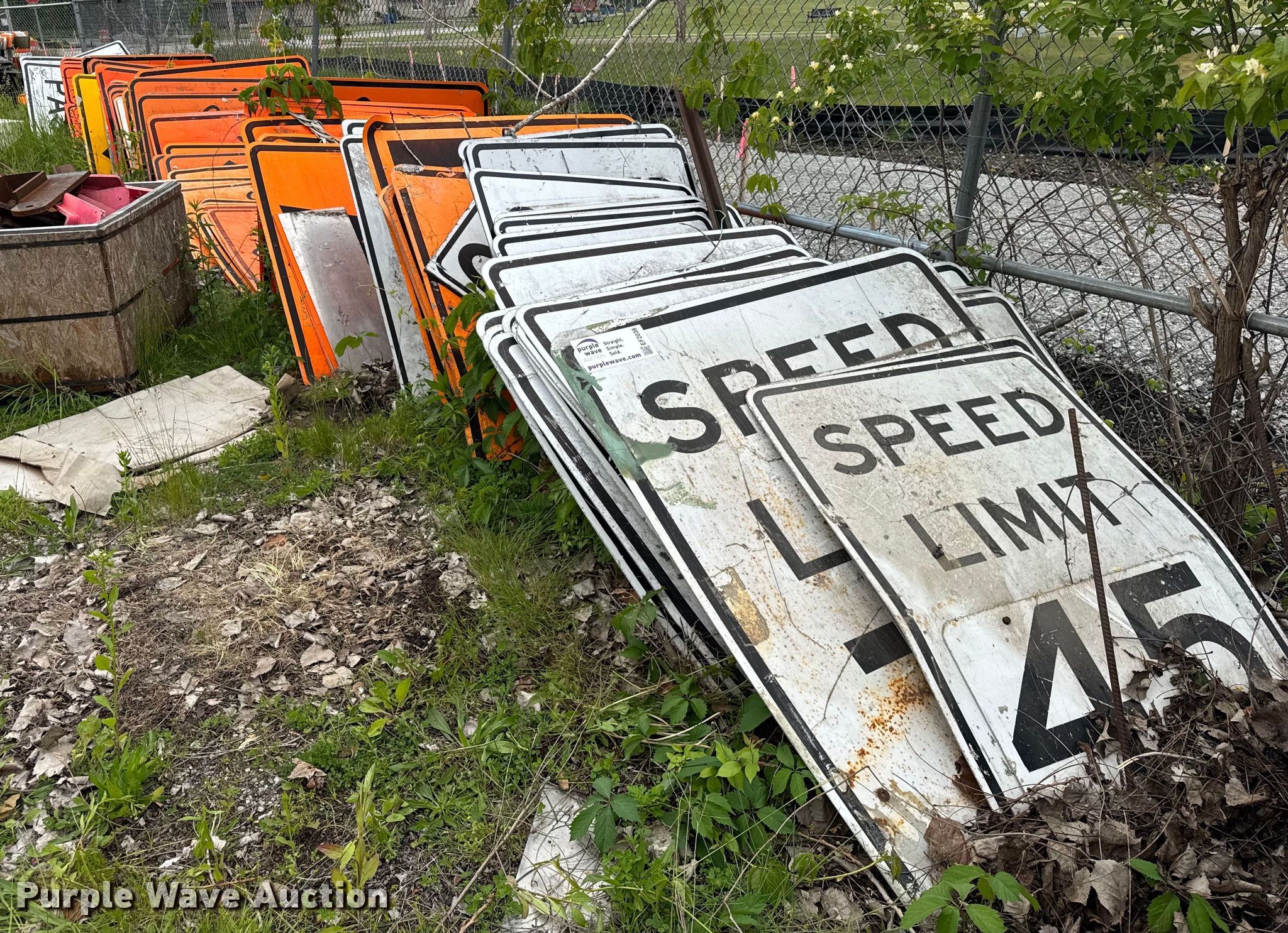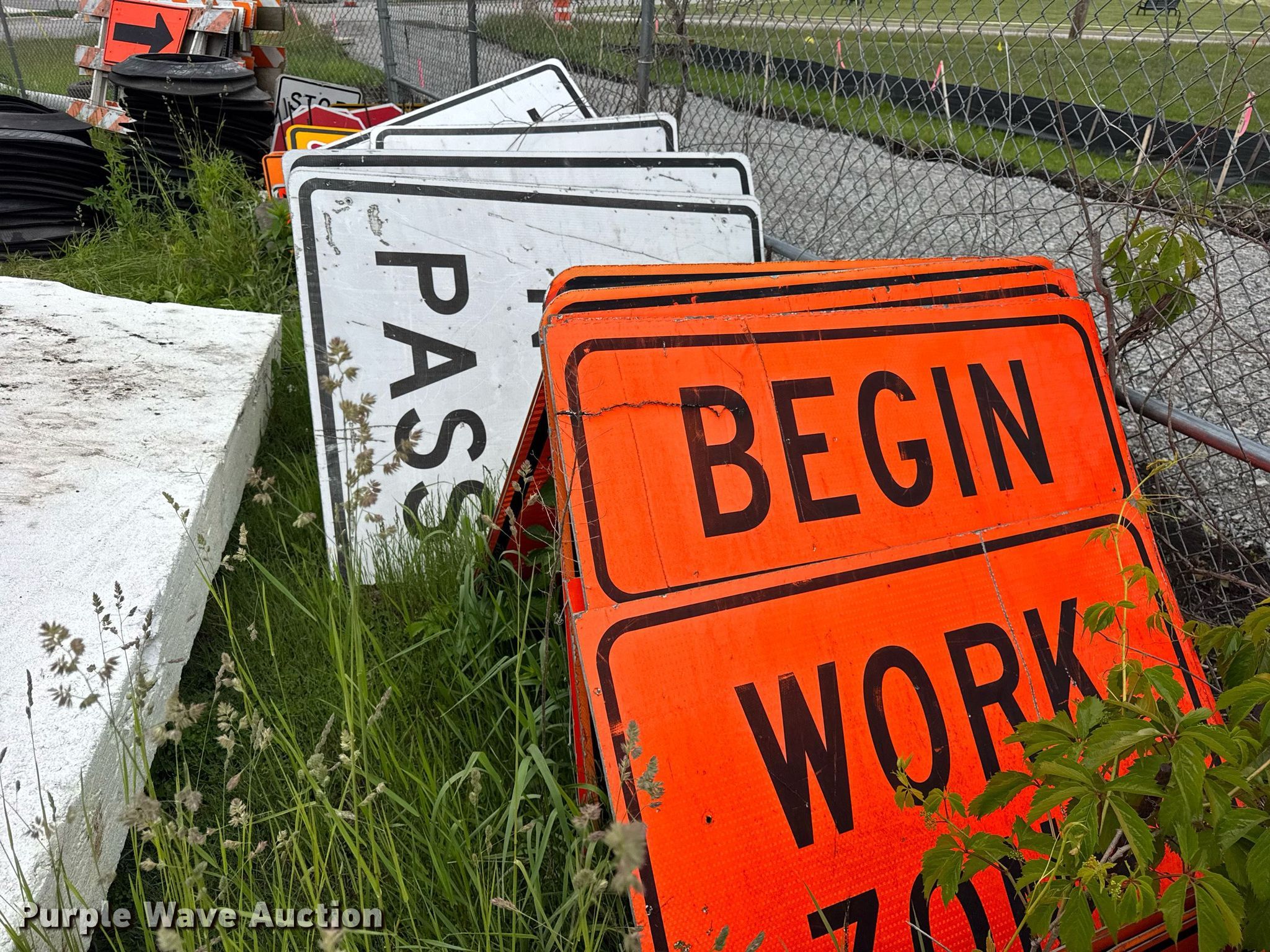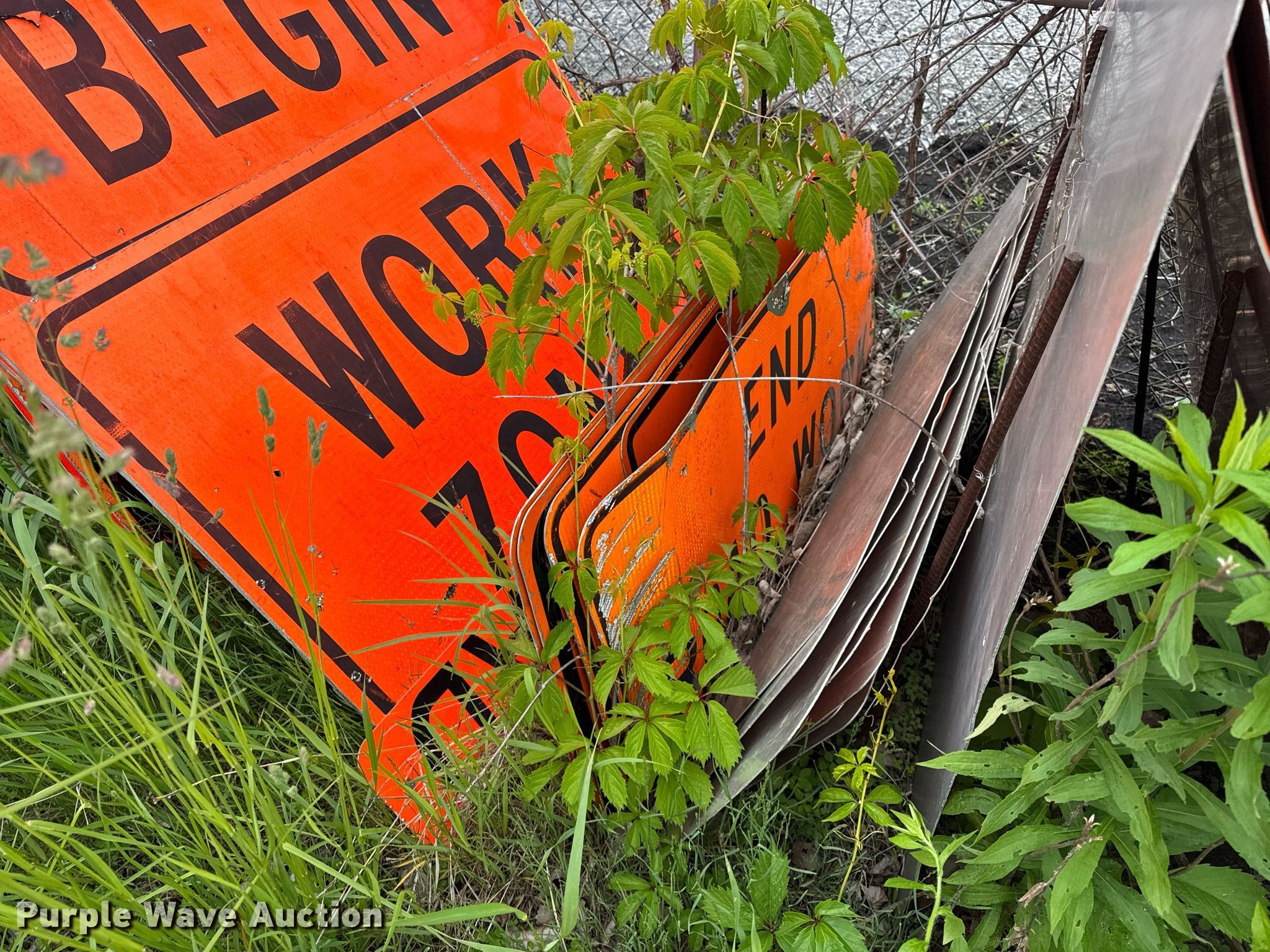 Purple Wave is selling a used Road Safety Equip. in Indiana. This item is a Road safety equipment with the following: Traffic barricades, Traffic control signage, High visual signs, Approximately 100 signs