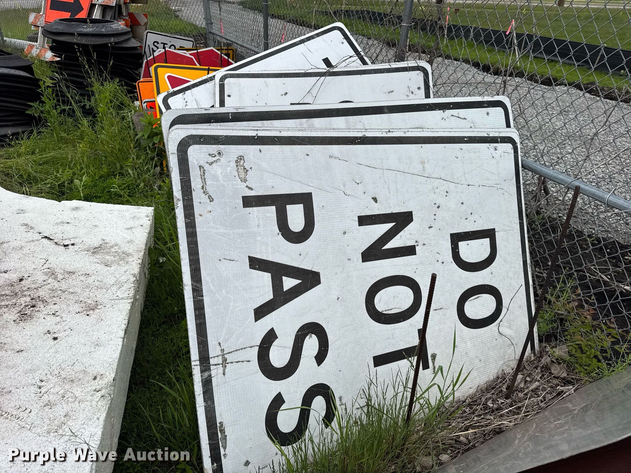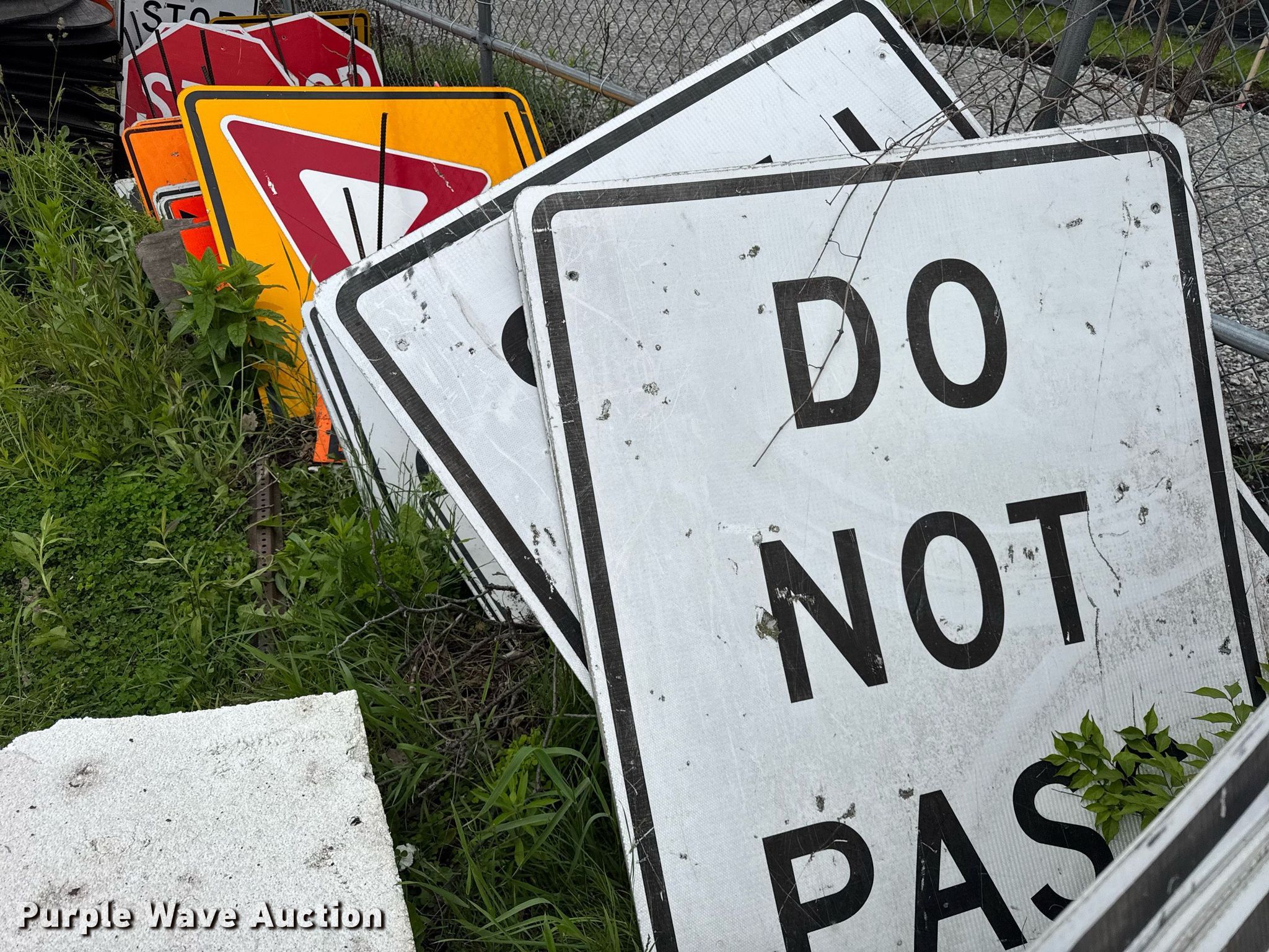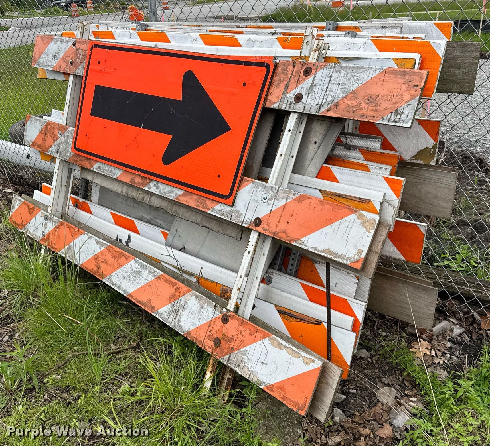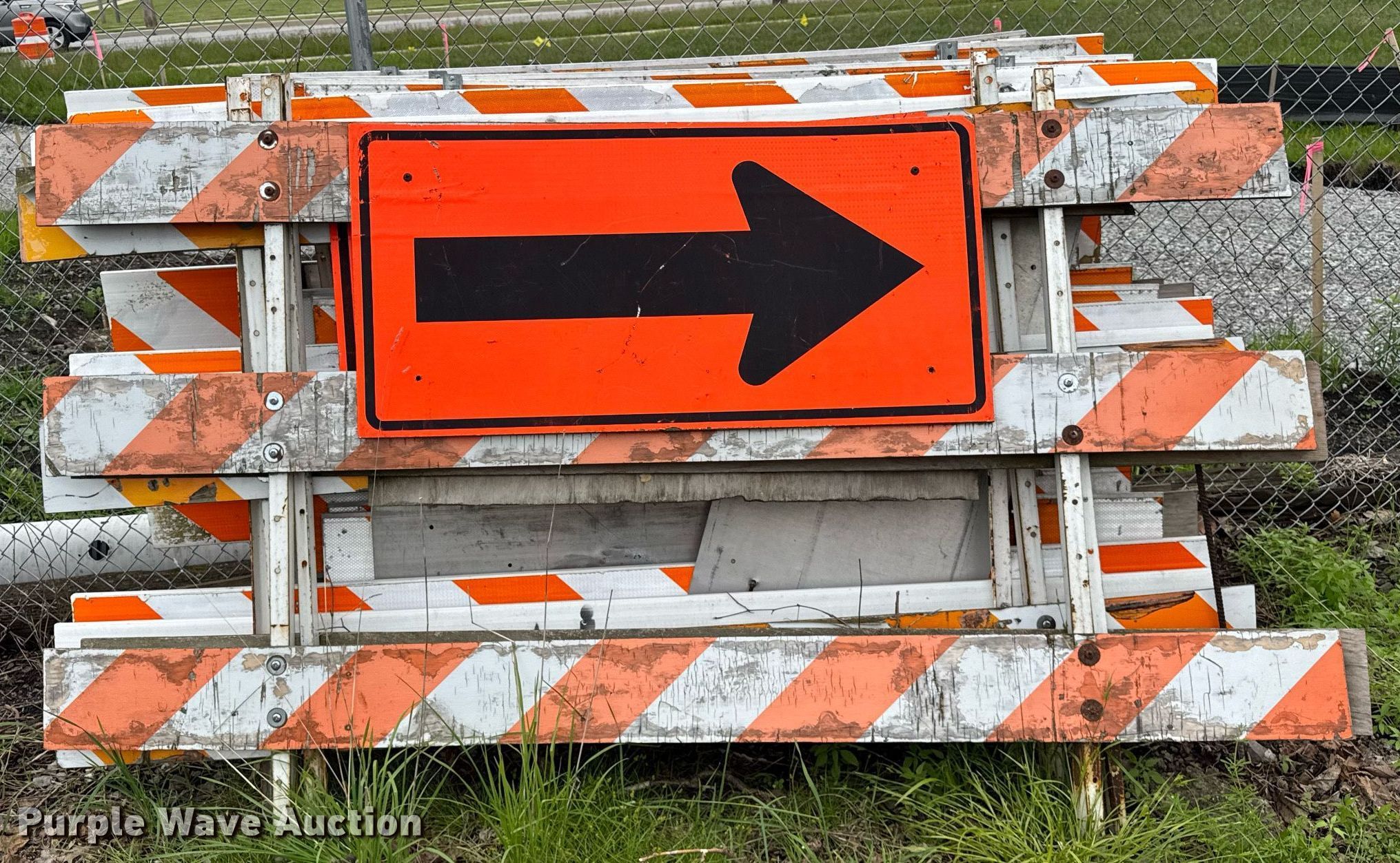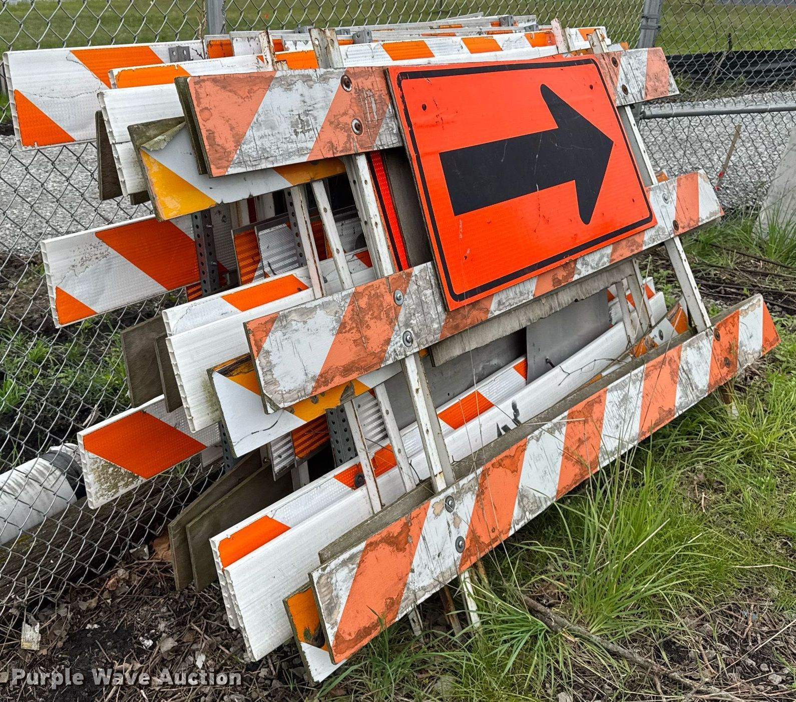 Purple Wave is selling a used Road Safety Equip. in Indiana. This item is a Road safety equipment with the following: Traffic barricades, Traffic control signage, High visual signs, Approximately 100 signs