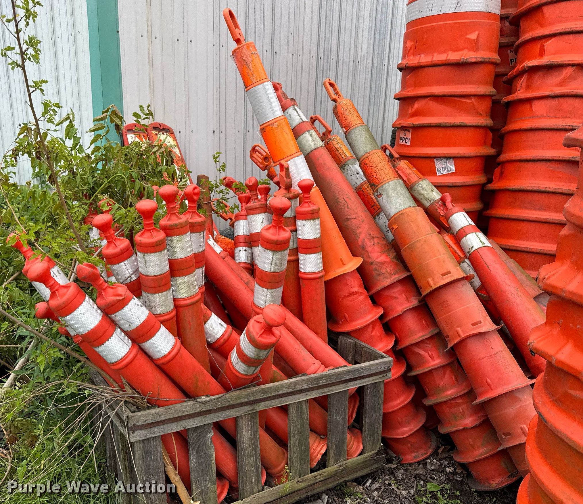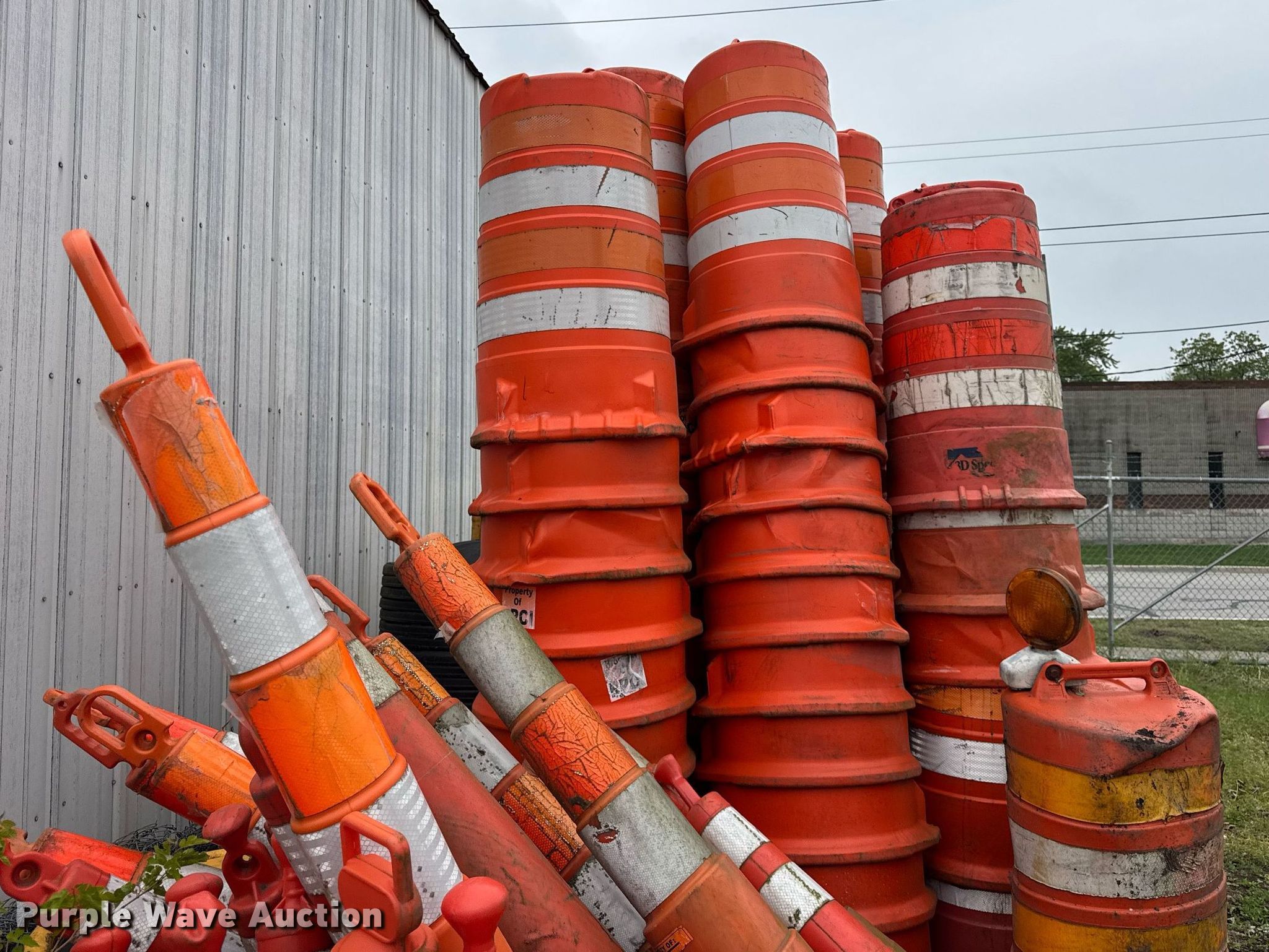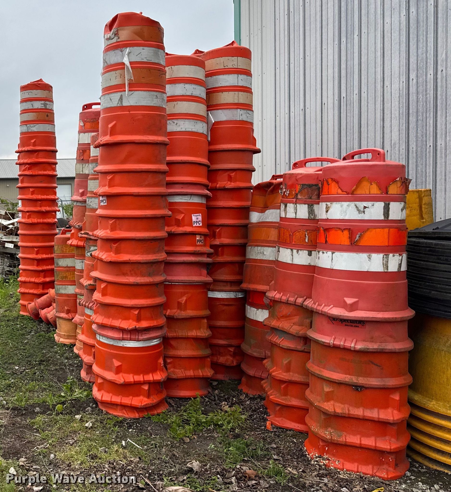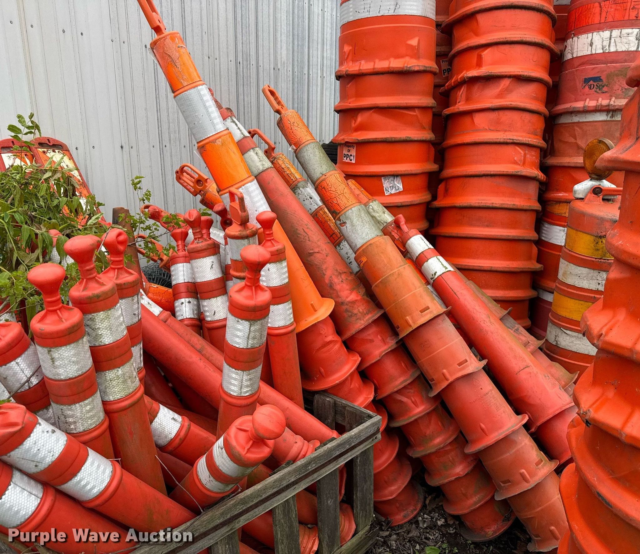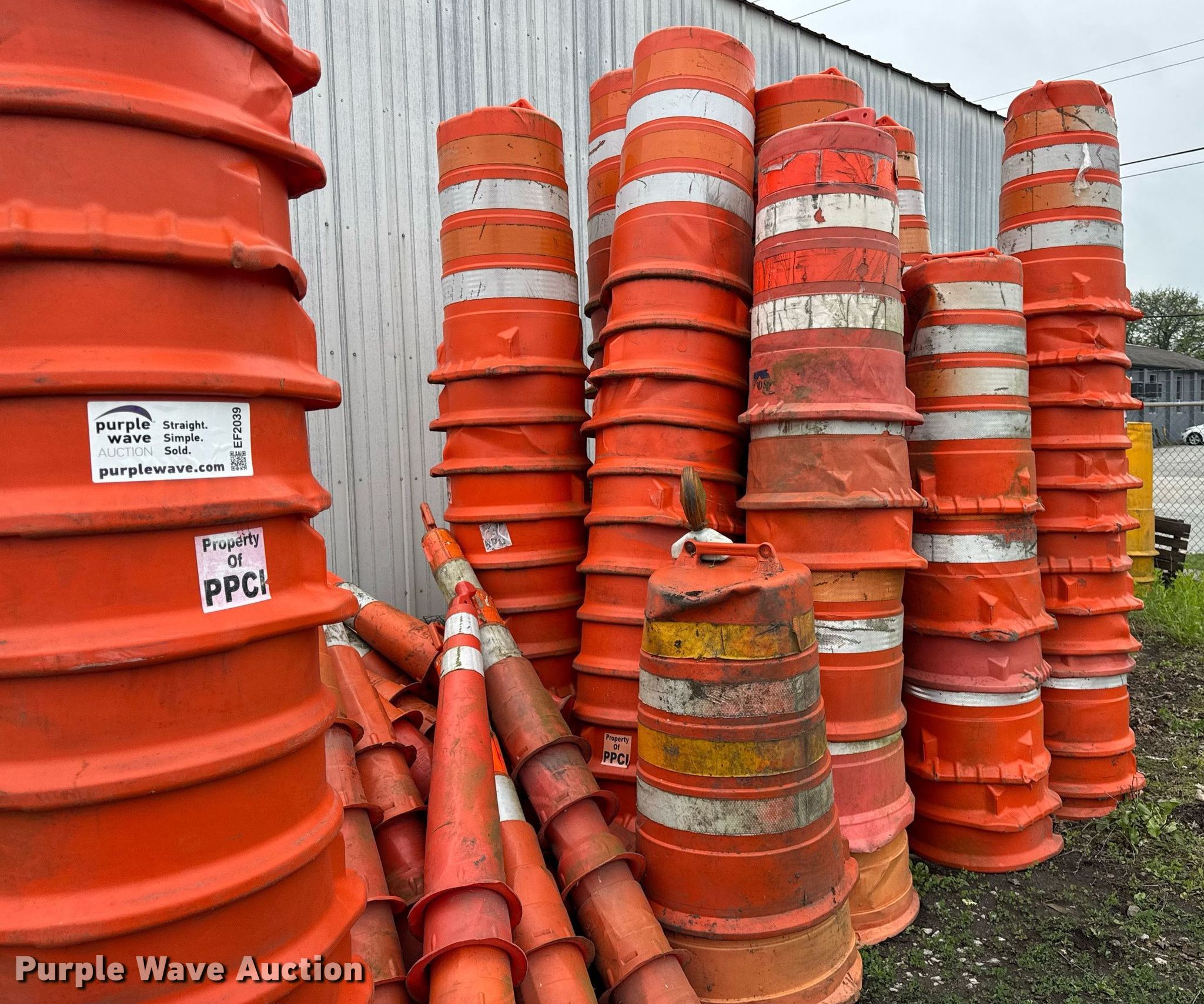 Purple Wave is selling a used Road Safety Equip. in Indiana. This item is a Road safety equipment with the following: Approximately 134 barrels, Approximately 50 cones