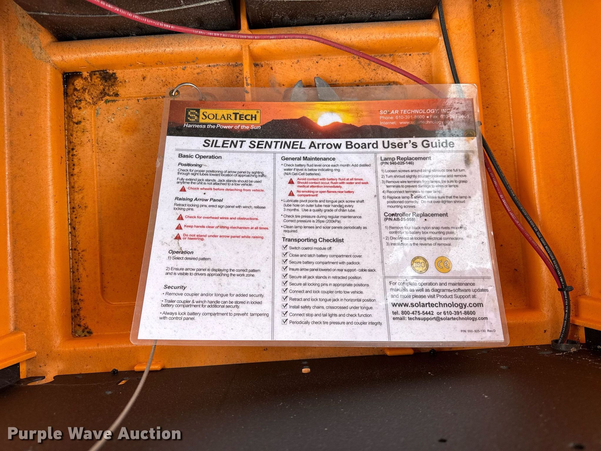 This 2014 Solar Tech Silent sentinel arrow board trailer will sell to the highest bidder regardless of price.