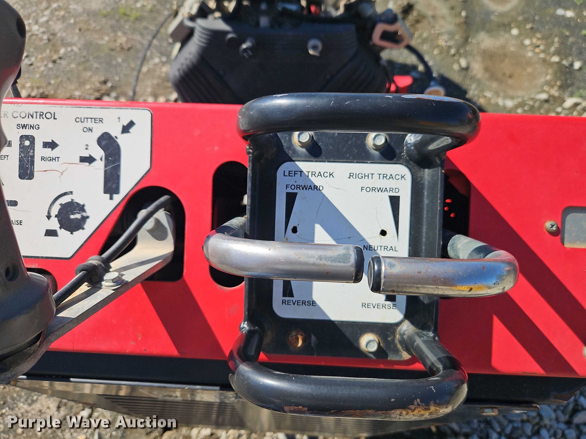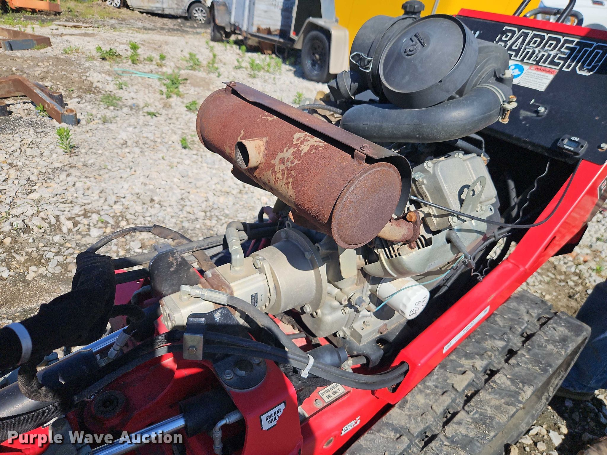 Barreto 30-SG stump grinder. Hours: 1,313 on meter. Engine Briggs & Stratton Vanguard, Cylinders: 2, Fuel type: Gas. Transmission Hydrostatic. Features Cutting head diameter: 20" Bolt-on teeth. Tracks Width: 7", Rubber. Gerken Rent-All. Paola, KS 66071