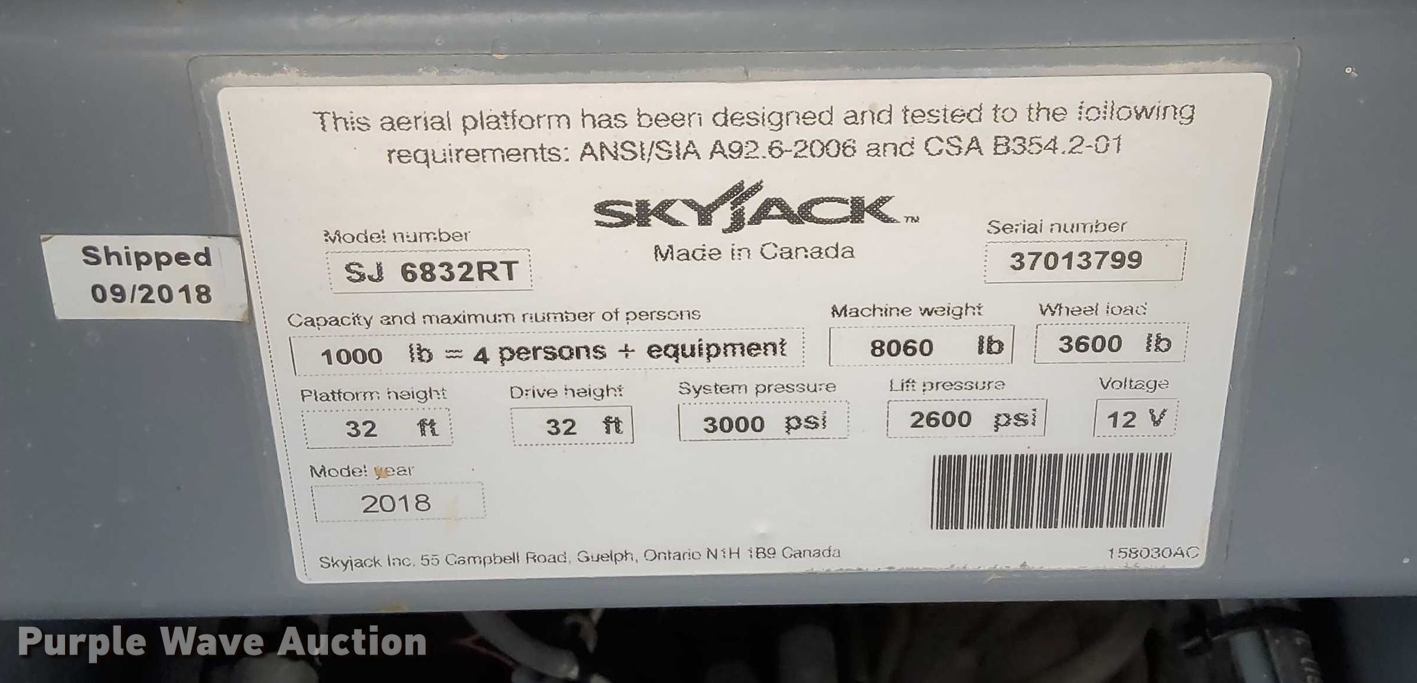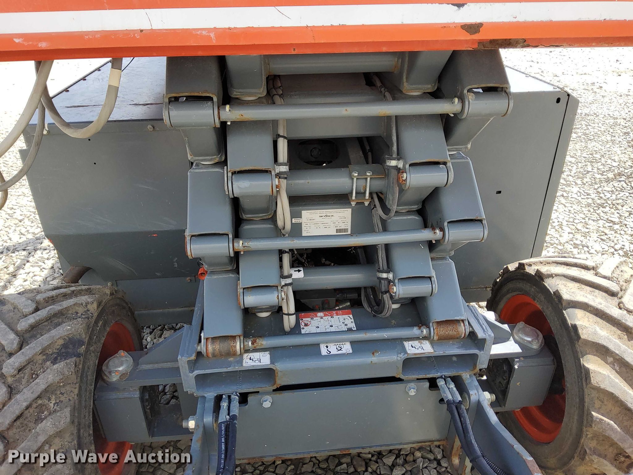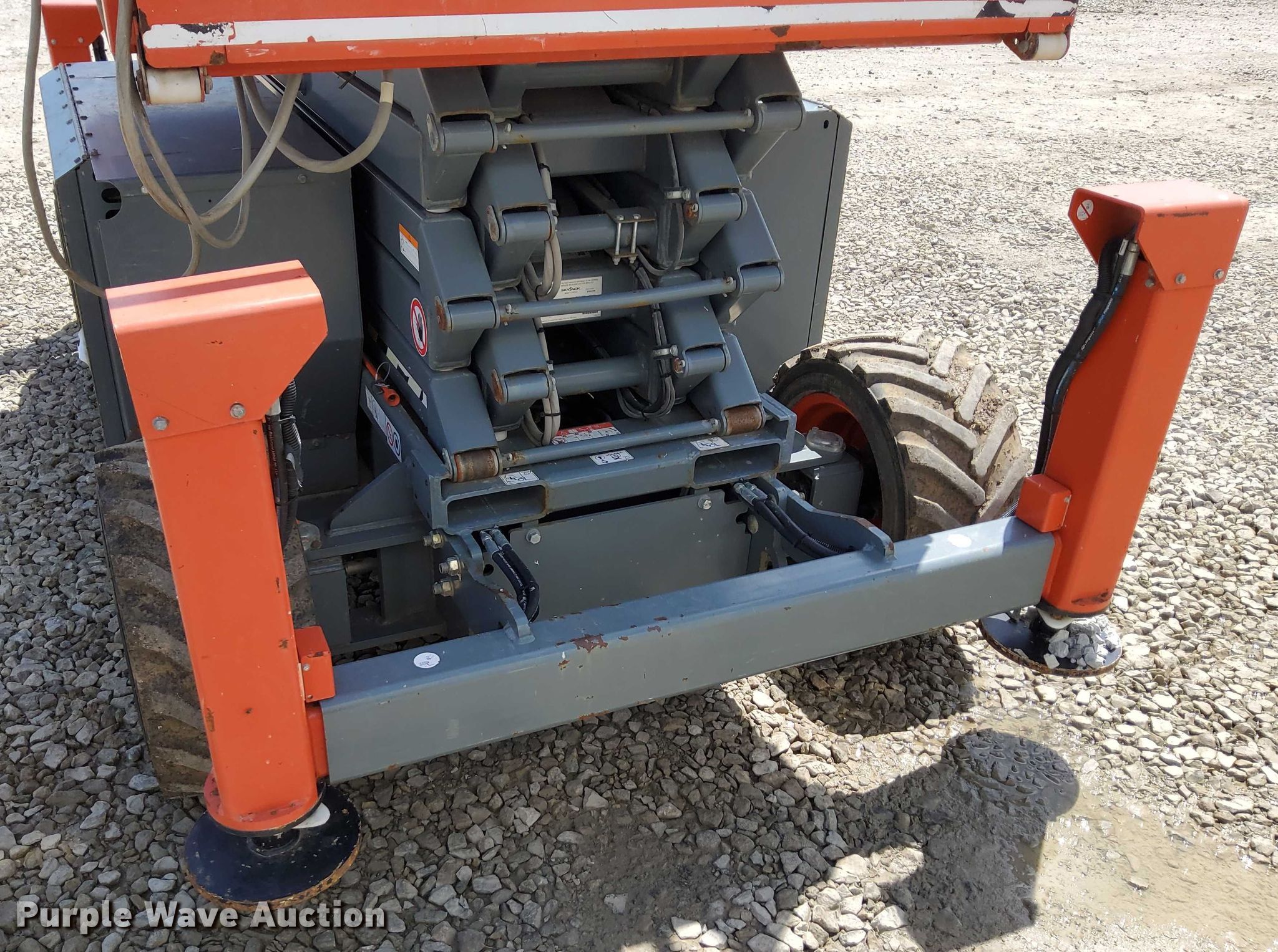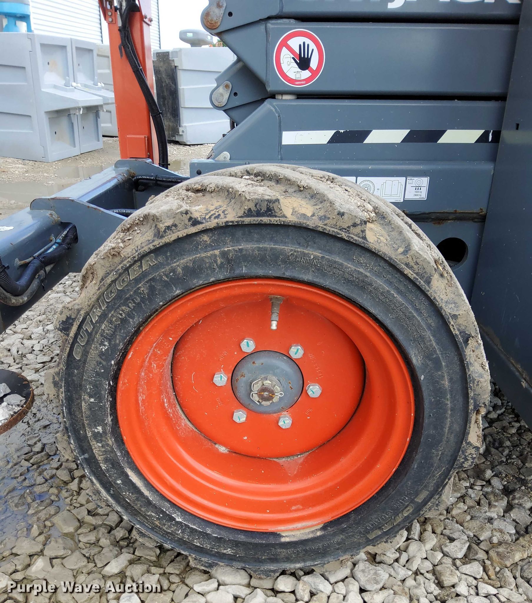 Purple Wave is selling a used Scissor or Vertical Lift in Kansas. This item is a 2018 SkyJack SJ6832 RT scissor lift with the following: Hours: 404 on meter, Serial: 37013799, Unit #: 5