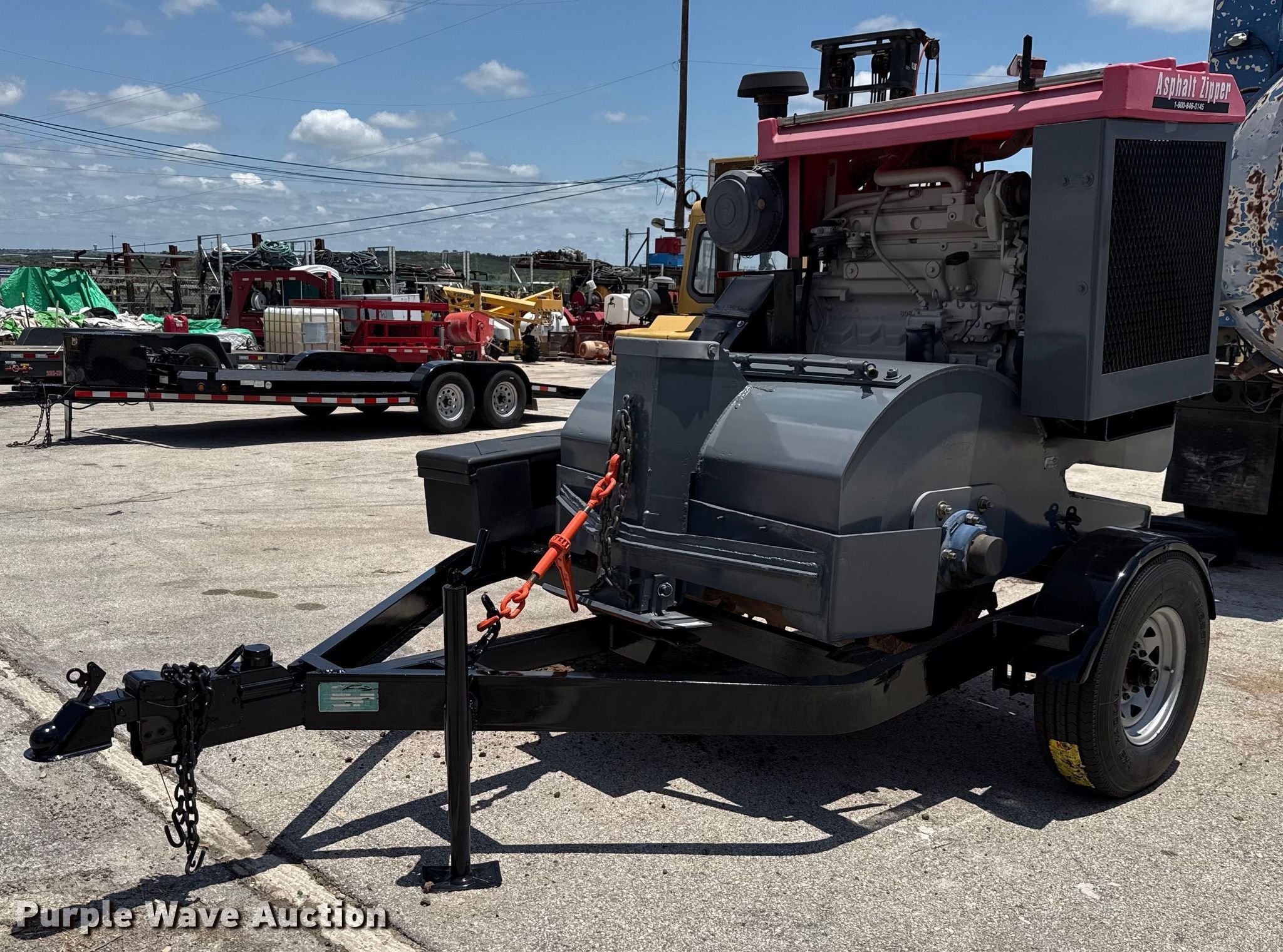 2001 Asphalt Zipper AZ480T cold planer. Hours: 417 on meter. Engine John Deere 6068, Displacement: 6.8L, Cylinders: 6, Fuel type: Diesel, HP: 185, kW: 138. Features Cutting head Width: 48". Trailer 11' L x 94" W, Ball hitch: 2 5/16", Suspension: Spring, Axles: Single, GVWR: 7,500 lbs, Tire size: 235/85R16. This is worksite support equipment and will not come with a title. Transfer of ownership documentation will be a bill of sale. Surmac Inc. Selma, TX 78154