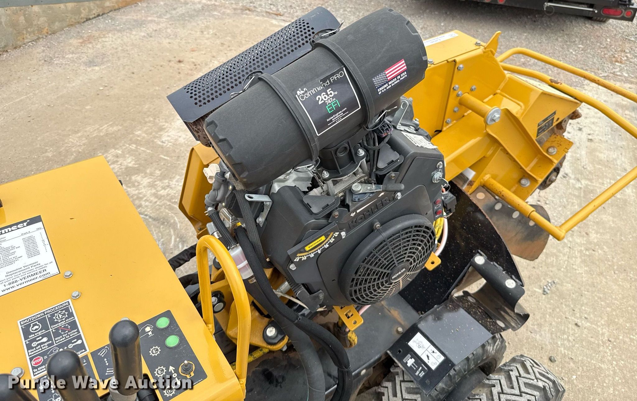 2022 Vermeer SC292 stump grinder. Hours: 294 on meter, Serial: 1VRF102YLN1002234. Engine Kohler Command Pro, Serial: 5208520353, Displacement: 747 cc, Cylinders: 2, Fuel type: Gas, HP: 26.5. Transmission Hydrostatic. Features Cutting head diameter: 18" Bolt-on teeth. Tires Size: 5.70-8, Back steer tire: 13X5.00-6. Vermeer Great Plains. 8300 N I- 35 Service Rd. Oklahoma City, OK 73131