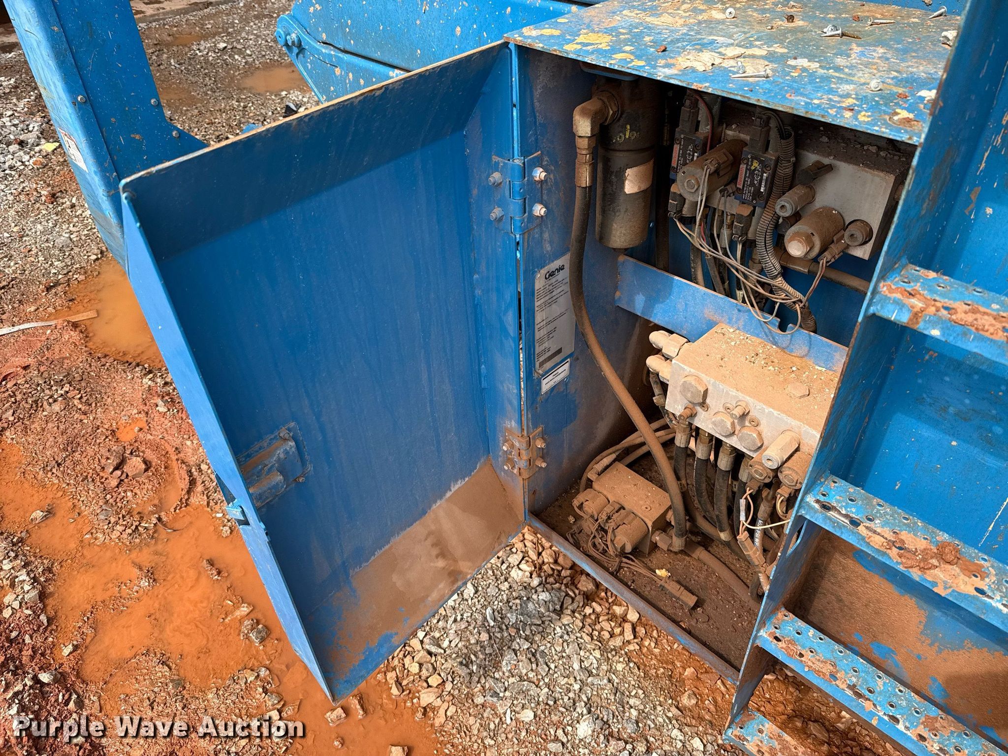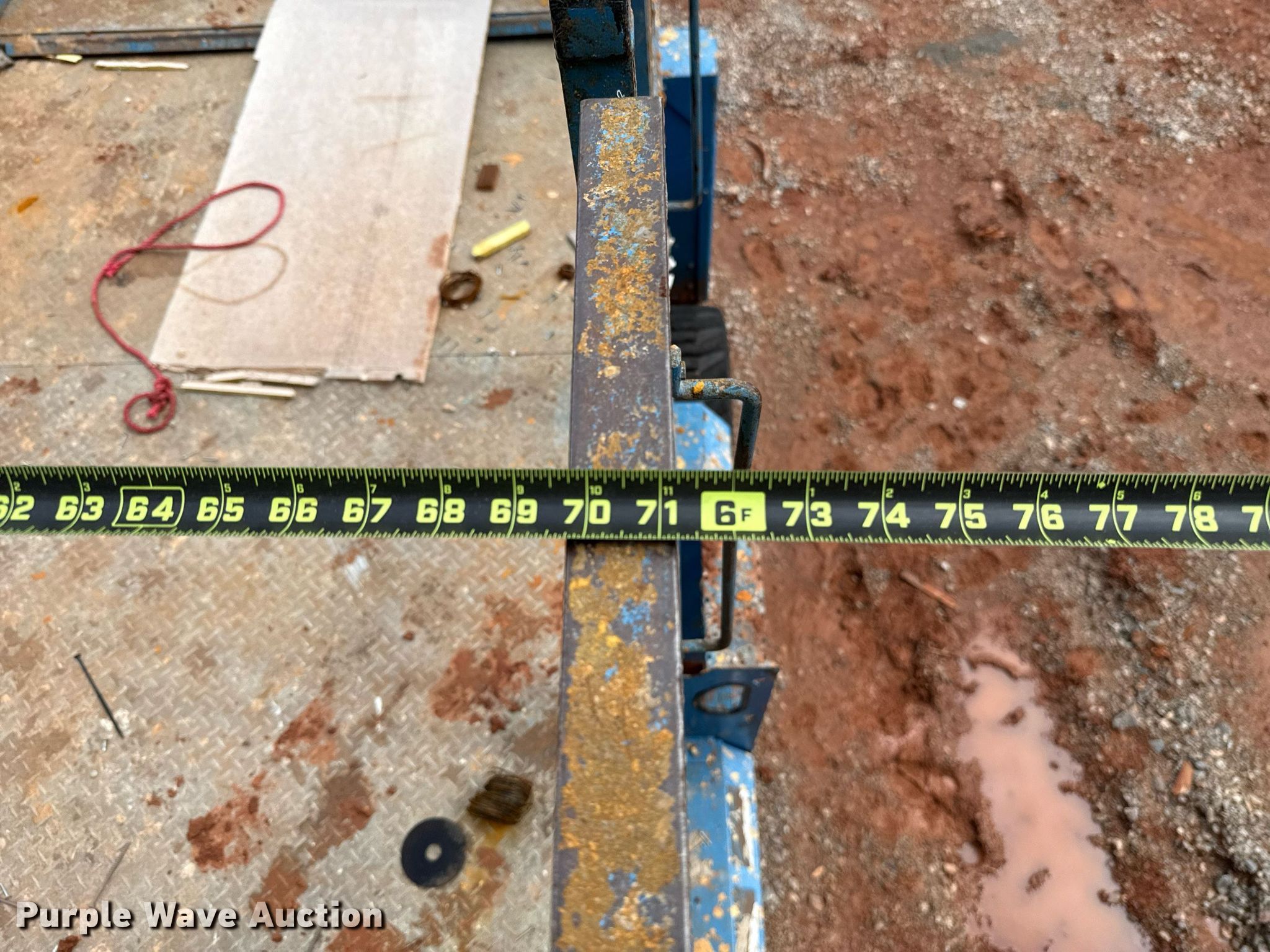 2006 Genie GS-4390 scissor lift. Hours: 4,791 on meter, Miles or hours may vary, unit still in use, Serial: GS-9006-42999. Engine Ford, Displacement: 2.5L, Cylinders: 4, Fuel type: Dual fuel. Chassis Four wheel drive. Features Rough terrain, Maximum lift capacity: 1,500 lbs, Maximum lift height: 43', Hydraulic outriggers, Platform: 150" L x 70" W, AC power outlet, Controls: Remote Control, Ground, Platform extensions: Manual, Safety alarm. Tires Foam filled. Midwest Drywall Company. Oklahoma City, OK 73129