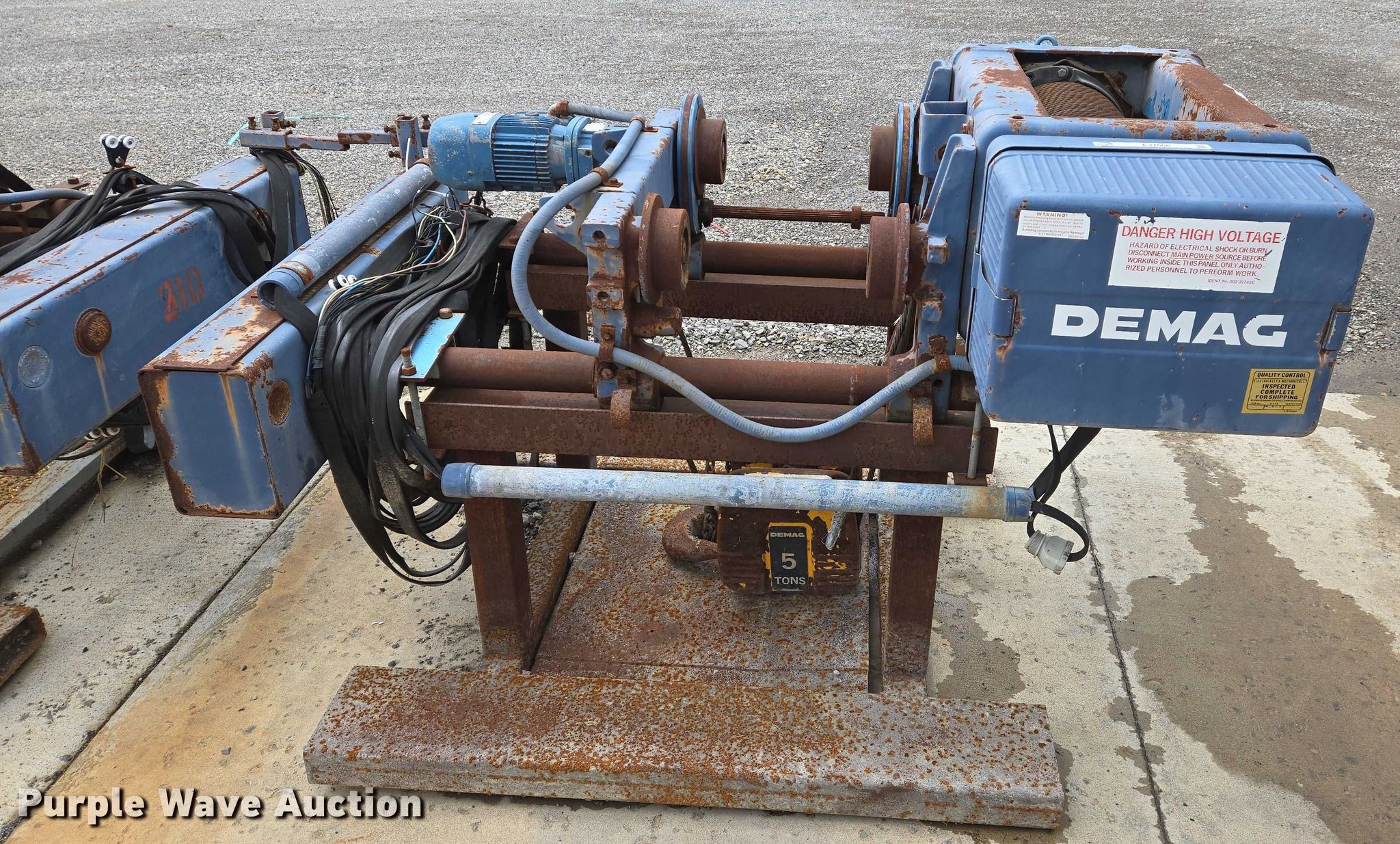 Purple Wave is selling a used Overhead or Straddle Crane in Missouri. This item is a (3) Mannesmann-Demag overhead cranes with the following: Capacity: 10,000 lbs, Phase: Three, (2) cable hoist, Chain host