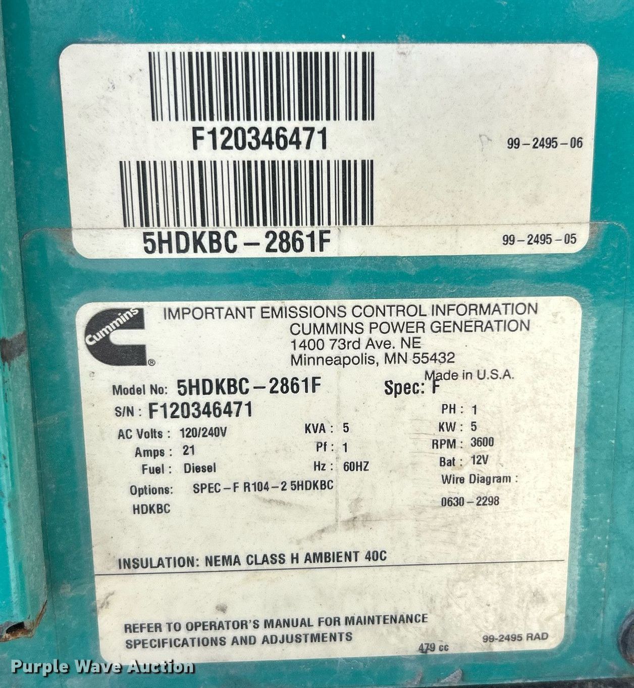 - Cummins Onan 5HDKBC-2861F
