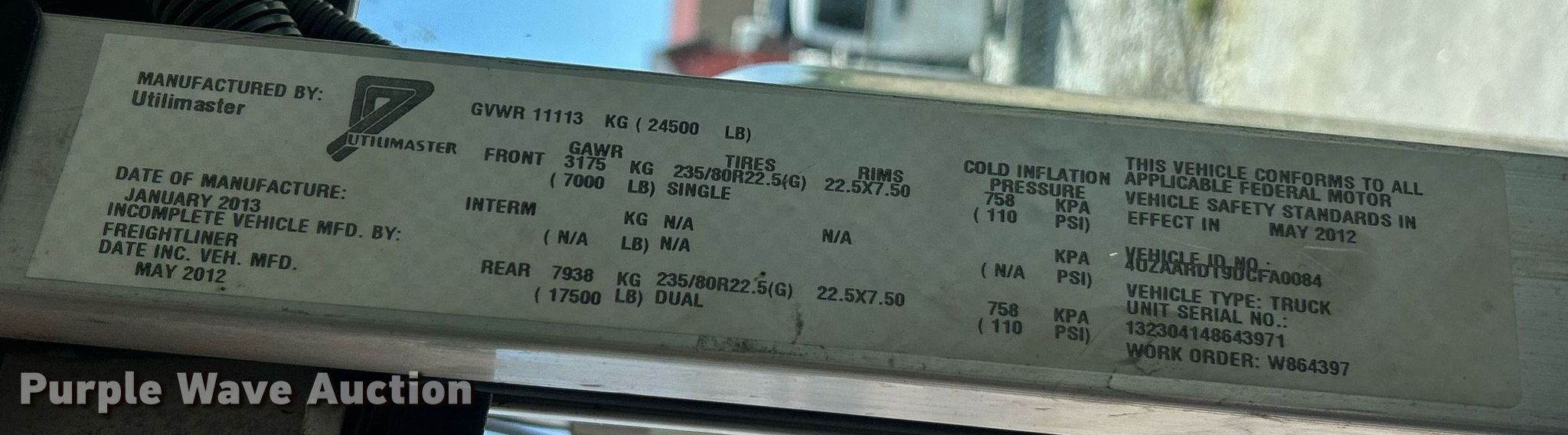 Purple Wave is selling a used Service Truck in Missouri. This item is a 2013 Freightliner MT55 utility / service truck with the following: Miles: 15,628 on odometer, Hours: 4,700 on meter, VIN: 4UZAARDT9DCFA0084