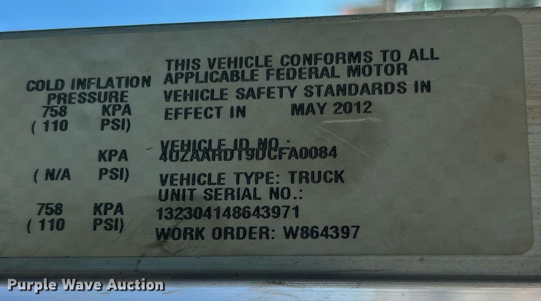 - VIN: 4UZAARDT9DCFA0084