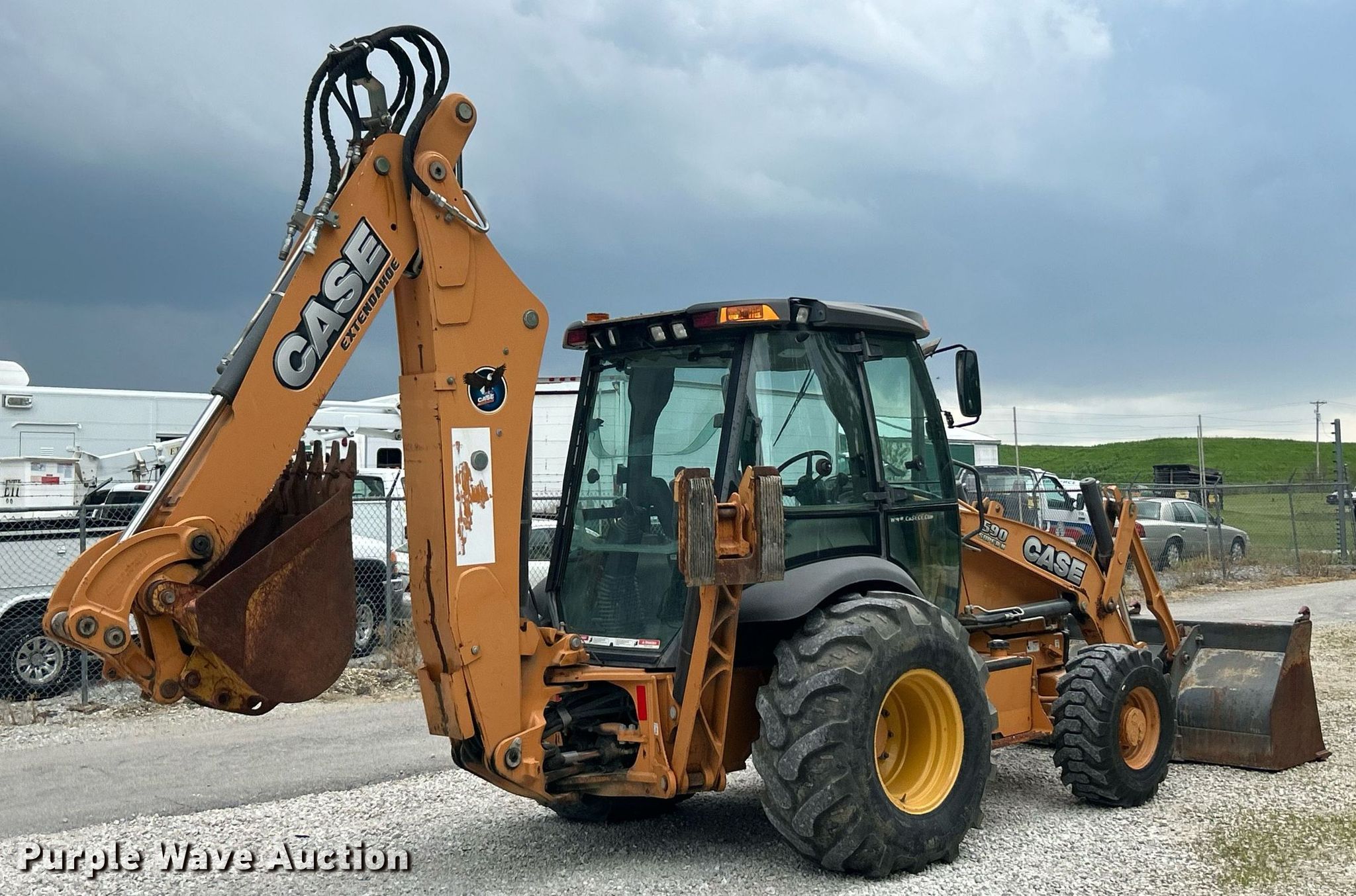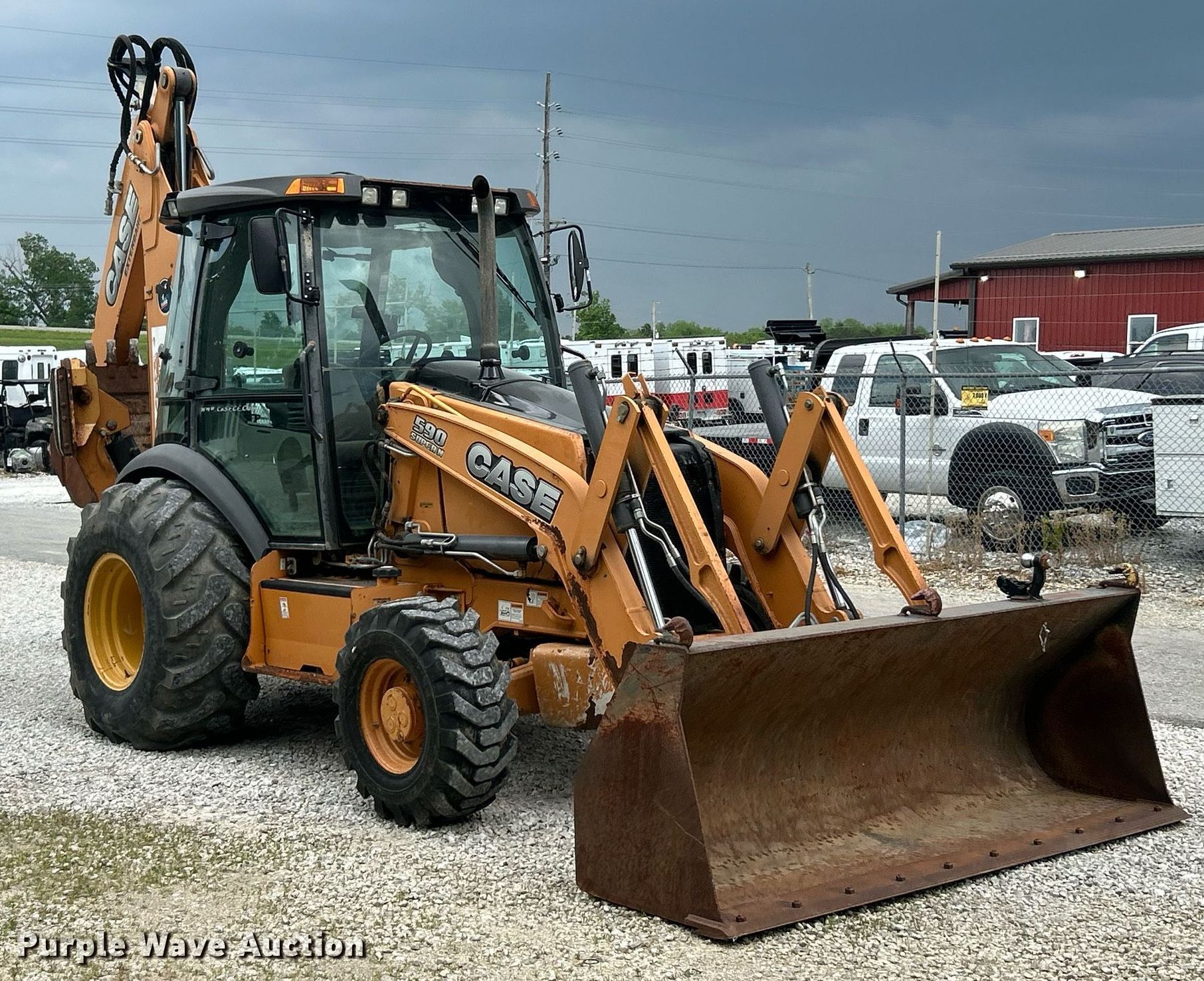 2013 Case 590 Super N backhoe. Hours: 3,331 on meter, Serial: JJGN59SNHDC591250. Engine FPT, Cylinders: 4, Fuel type: Diesel. Transmission Powershift, 4F - 4R. Chassis Four wheel drive. Operators station Enclosed cab, AC, Heat, Backhoe controls: Pilot control, Pattern changer. Features Loader Width: 96", Cutting edge: Bolt-on, Backhoe Extendable stick, Auxiliary hydraulics, Bucket Width: 24", Teeth: 5.. Tires Front: 14-17.5, Rear: 21L-24. Fruendly Auto Source Inc.. Moscow Mills, MO 63362