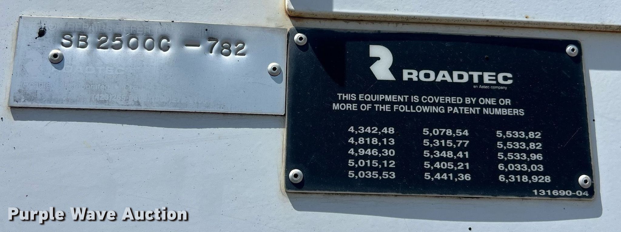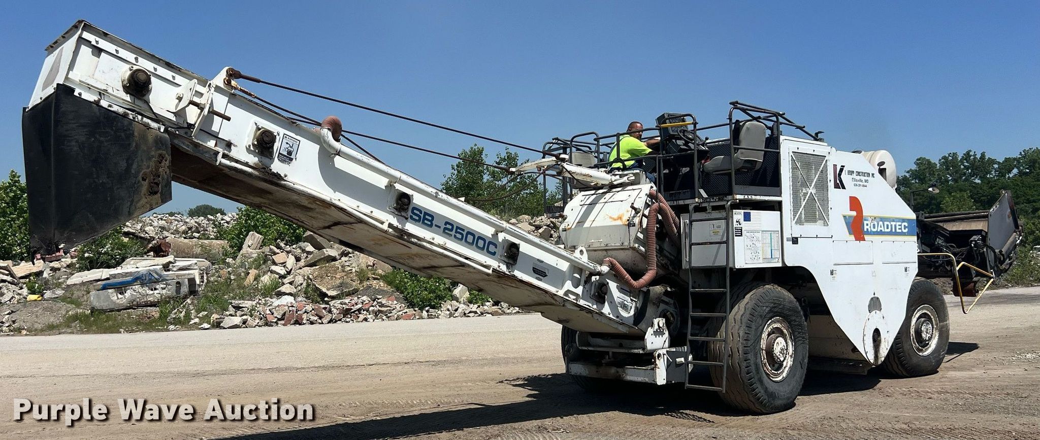 Purple Wave is selling a used Road Widener in Oklahoma. This item is a 2005 Roadtec SB-2500C material transfer vehicle with the following: Hours: 6,507 on meter, Serial: SB2500C782