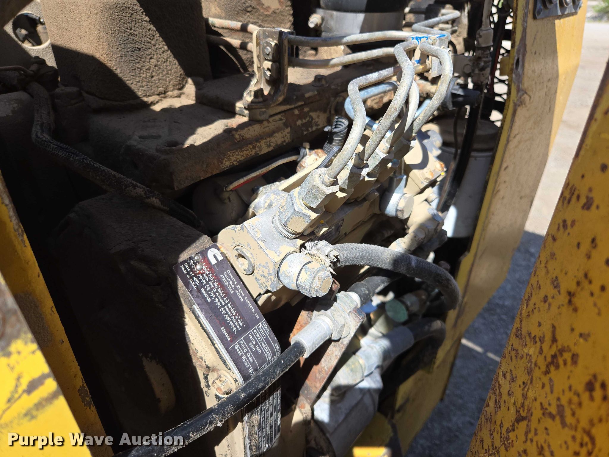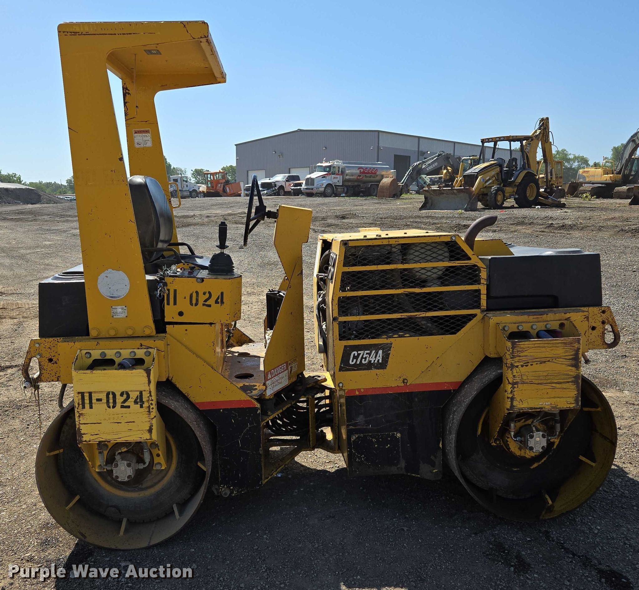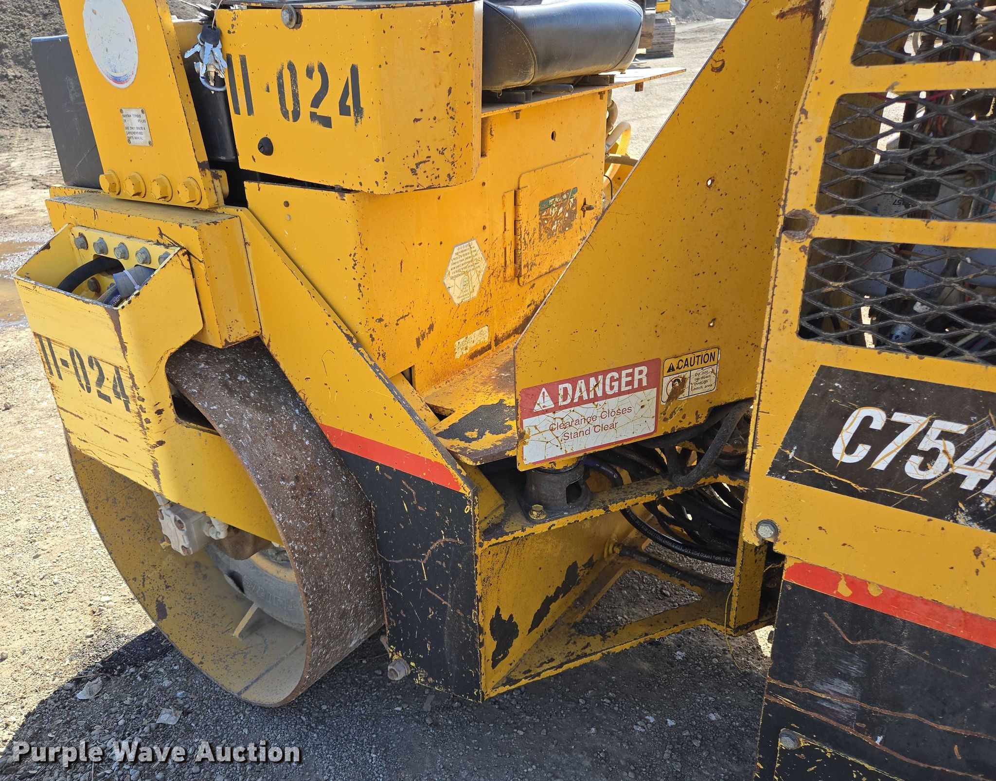 Hypac C754A double drum vibratory roller. Hours: 8,933 on meter. Engine Cummins B3.9-C, Displacement: 3.9L, Cylinders: 4. Transmission Hydrostatic. Features Drum: Smooth, Vibratory system: Double, Independent drum controls, Front drum Width: 53", Diameter: 29.5", Rear drum Width: 53", Diameter: 29.5", Water spray applicator: Rear. Becco Contractors Inc. Tulsa, OK 74116