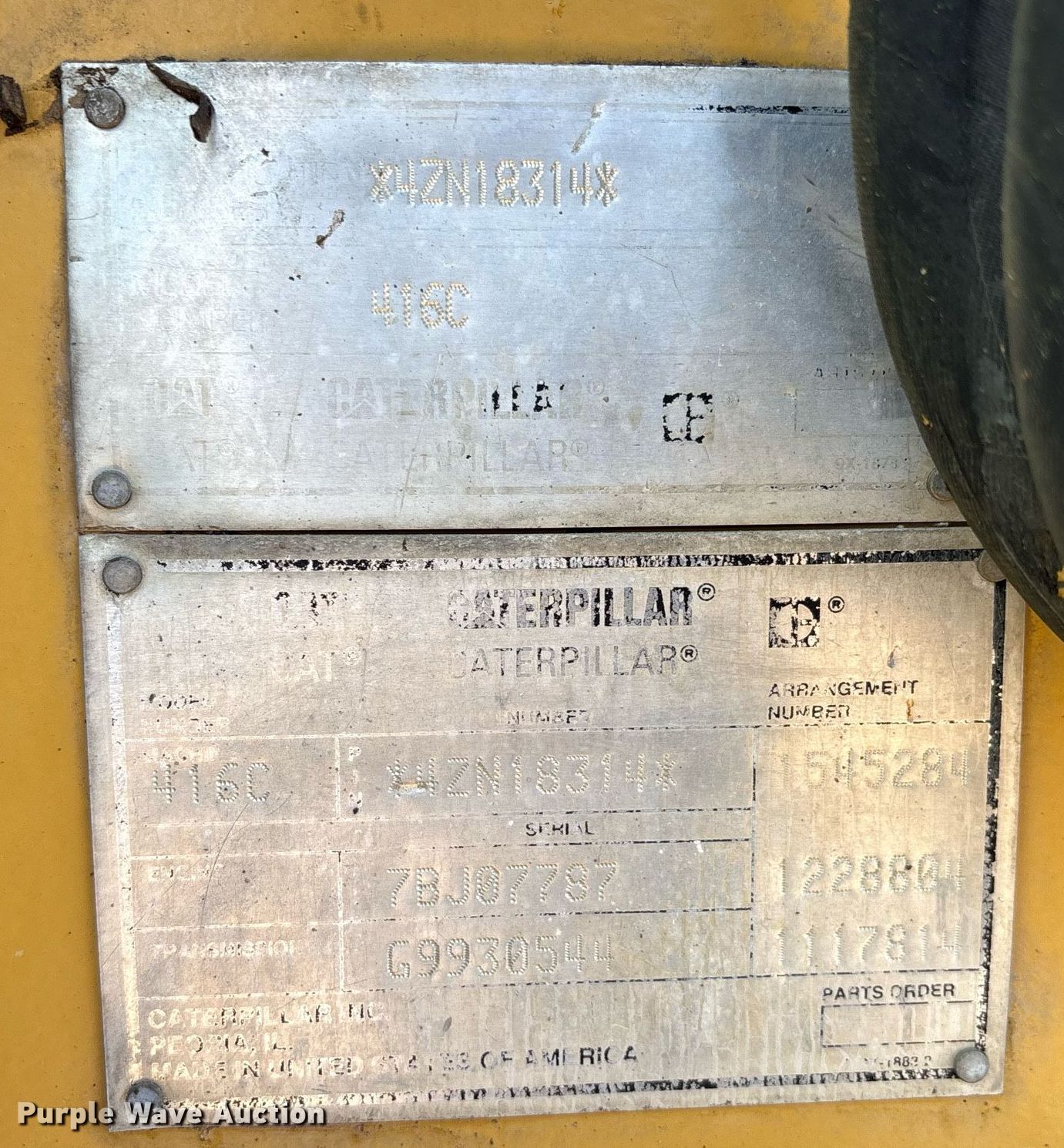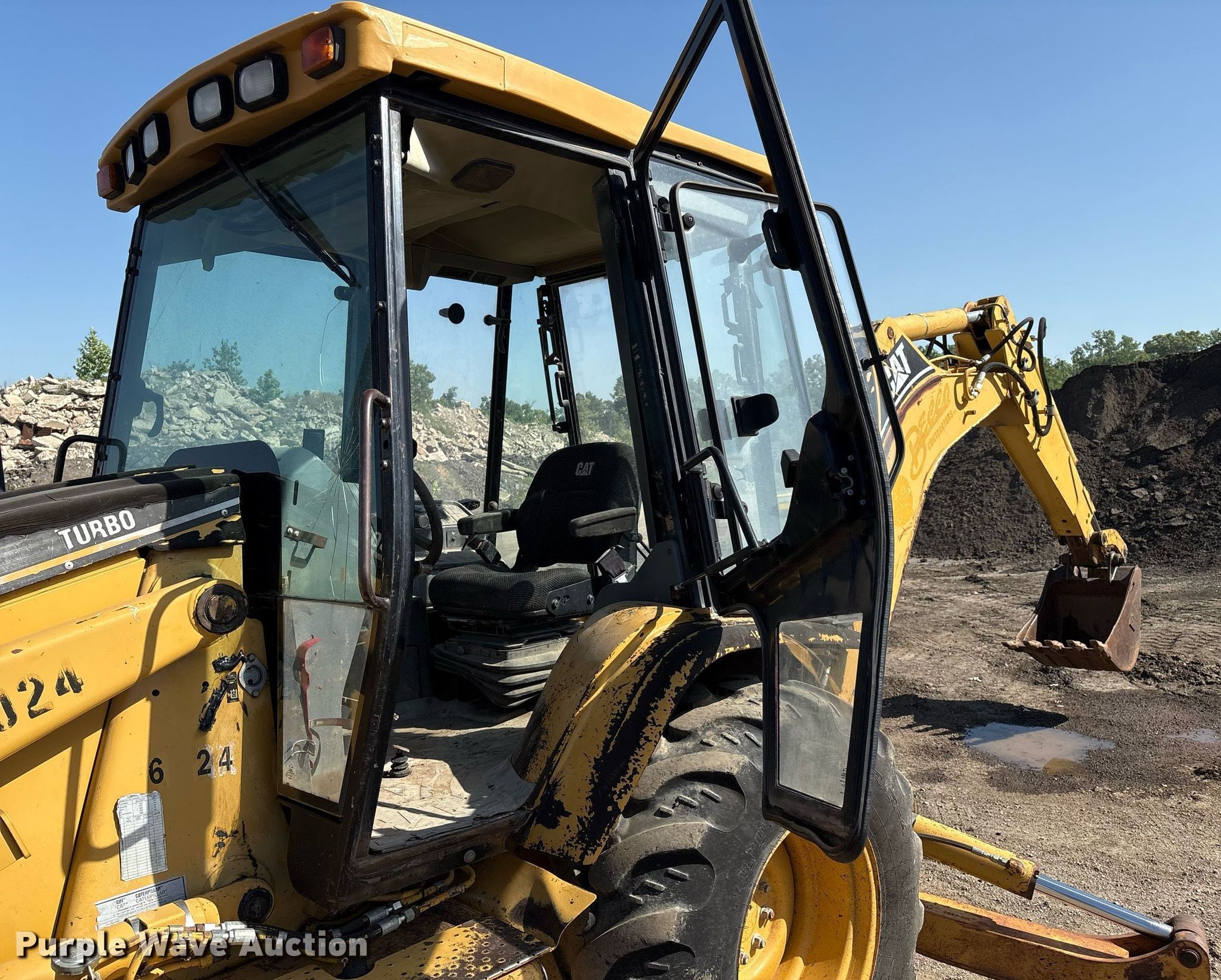 1999 Caterpillar 416C backhoe. Hours: 3,091 on meter, Serial: 4ZN18314. Engine Caterpillar, Cylinders: 4, Fuel type: Diesel. Transmission Shuttle shift, 4F - 4R. Chassis Four wheel drive, Differential lock. Operators station Enclosed cab, AC, Heat, Backhoe controls: Wobble stick / two stick. Features Loader Bucket Bucket leveler, Width: 87", Cutting edge: Bolt-on, Backhoe Extendable stick, Bucket Width: 22", Teeth: 5.. Tires Front: 320/80-18, Rear: 19.5L-24. Notes Glass cracked. Becco Contractors Inc. Tulsa, OK 74116