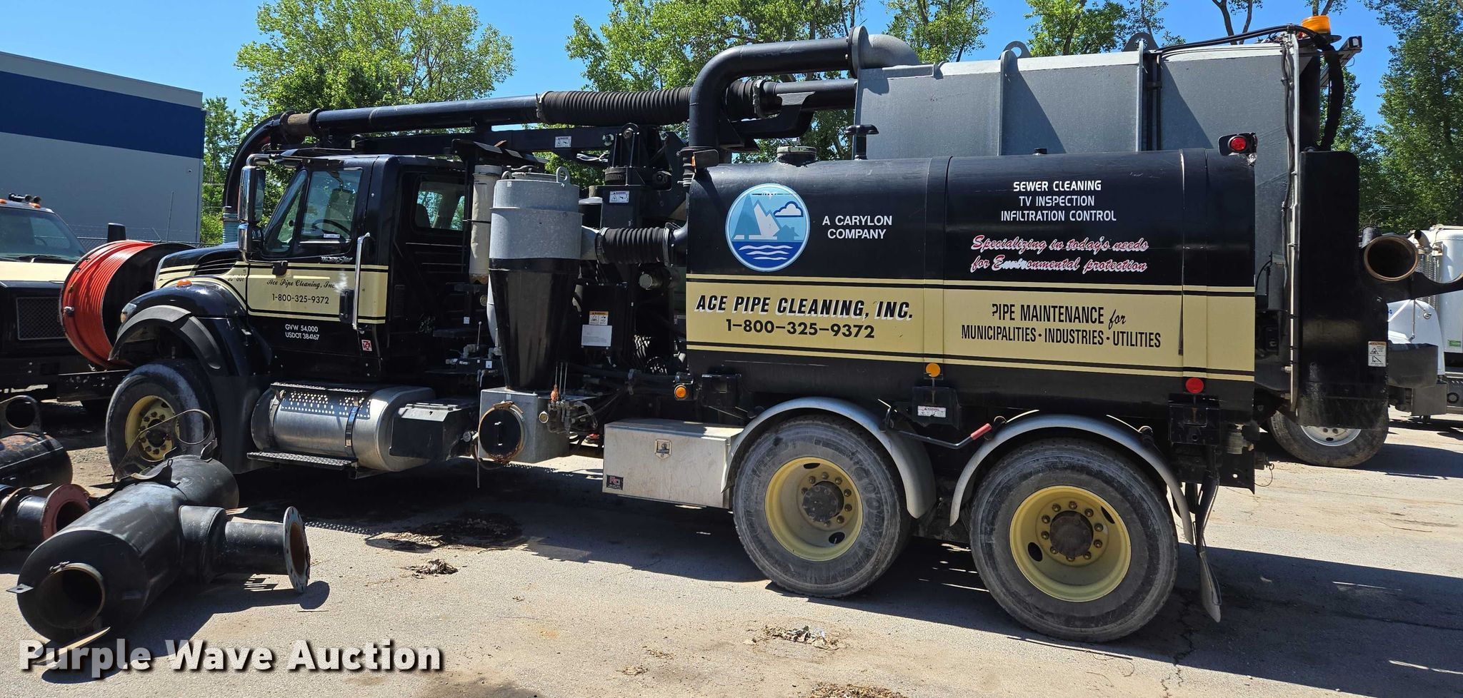 2011 International 7500 sewer jetter truck. Miles: Unknown, VIN: 1HTWPAZT0BJ393927. Engine International MaxxForce 10, Displacement: 9.3L, Cylinders: 6, Fuel type: Diesel. Transmission Allison, Automatic. Chassis Axles: Tandem, Suspension: Spring over walking beam, Brakes: Air, PTO, Wet kit, GVWR: 60,000 lbs. Interior AC, Heat, Cruise control. Features Tank bed Vacall AJV 0810, Serial: AJV0004152, Capacity: 1,000 gallons, Rear outlet: 6", Hose reel Front, Hydraulic, Diameter: 48", Telescopic boom Diameter: 8".. Tires Front: 425/65R22.5, Rear: 11R22.5. Notes Windshield chipped or cracked, Dead battery, Non-operational engine, blown , Transmission issues , Dash disassembled, Hose damaged, Pumps missing, Vacuum system parts missing, Non-operational unit Unit must be towed or hauled. Missouri title. Mileage has not been verified. Odometer discrepancy will be marked on the title. Title distribution may be delayed up to 14 days from verification of funds. Ace Pipe Cleaning, Inc.. Kansas City, MO 64120