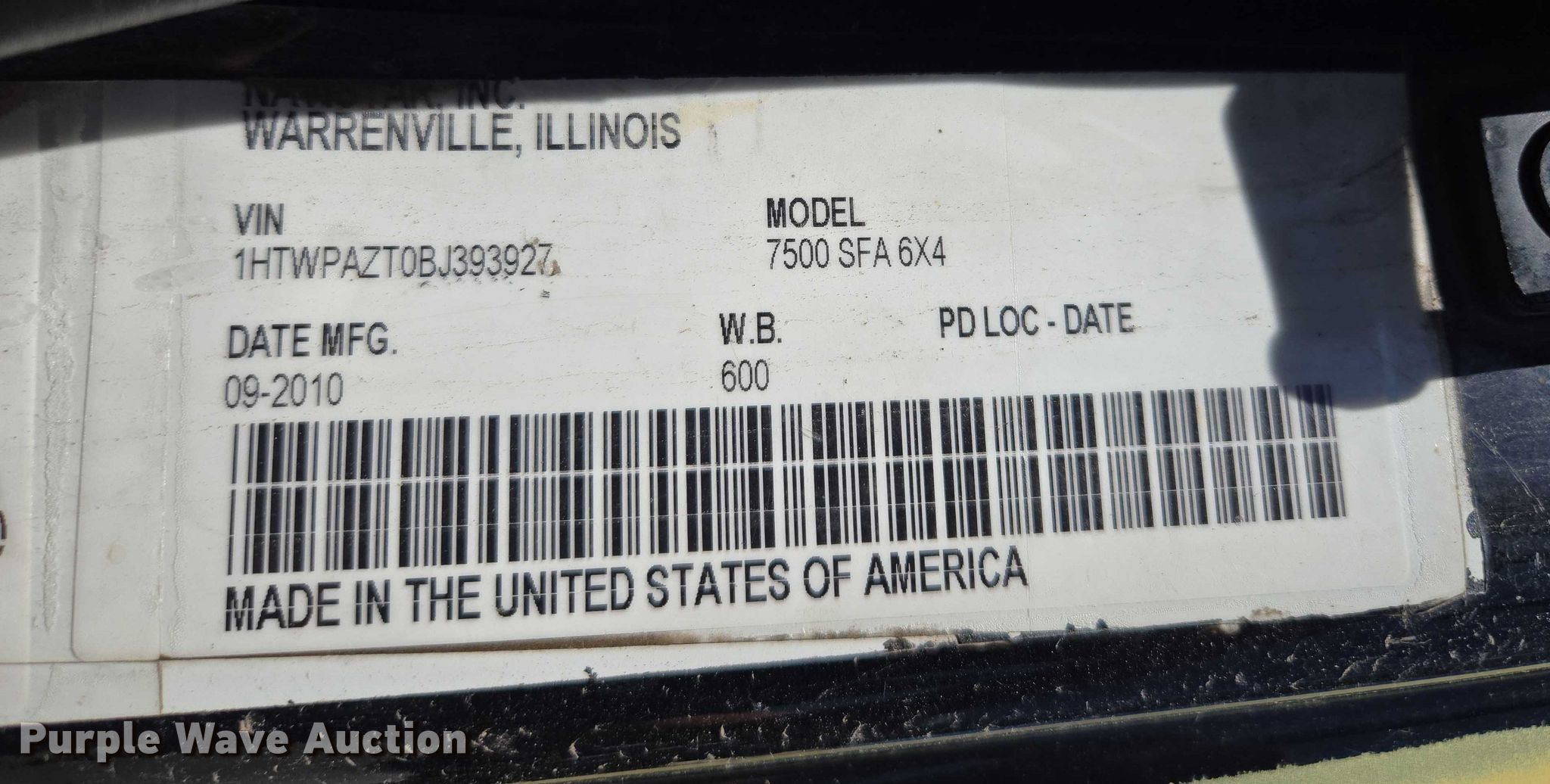 - VIN: 1HTWPAZT0BJ393927