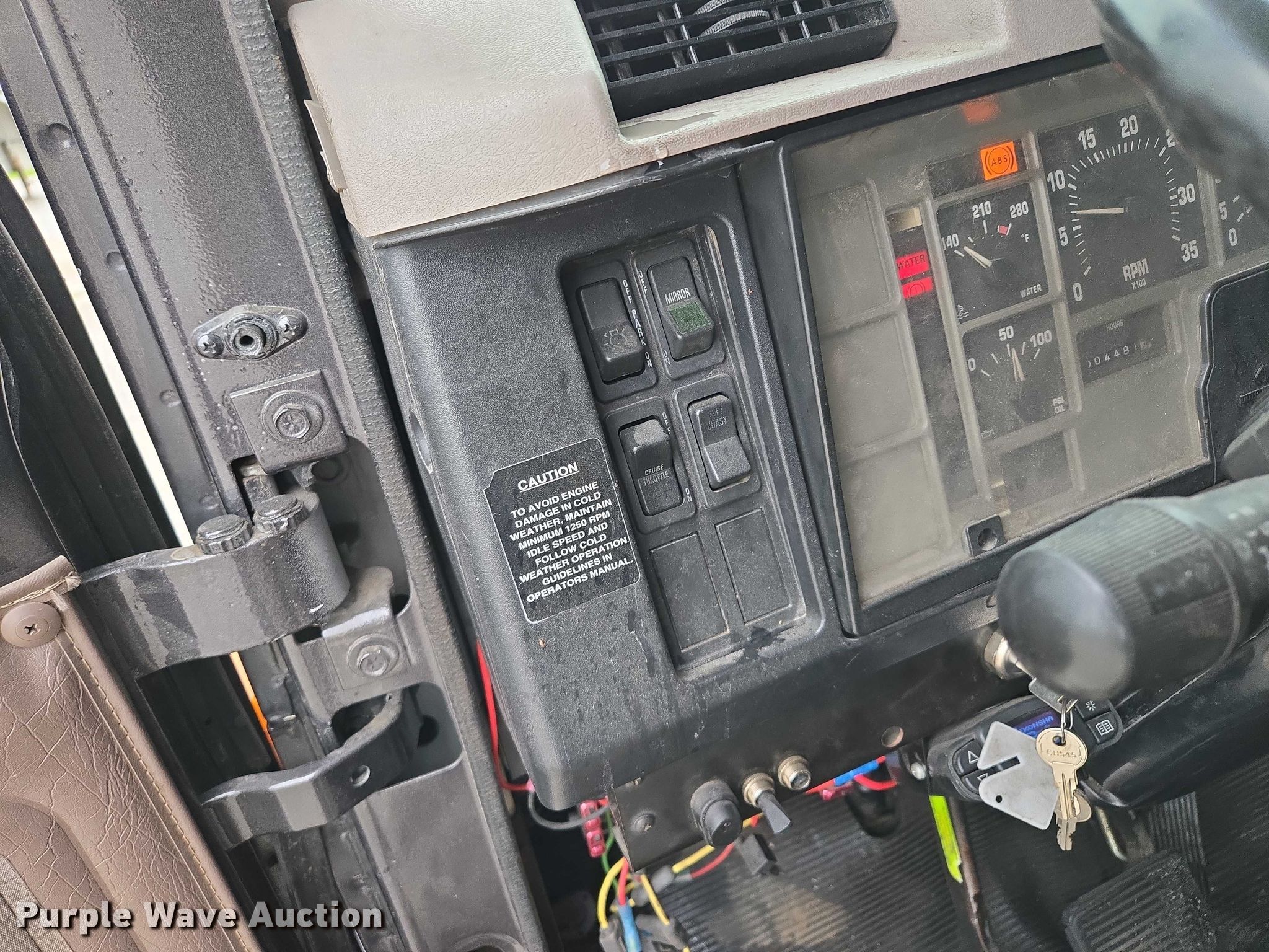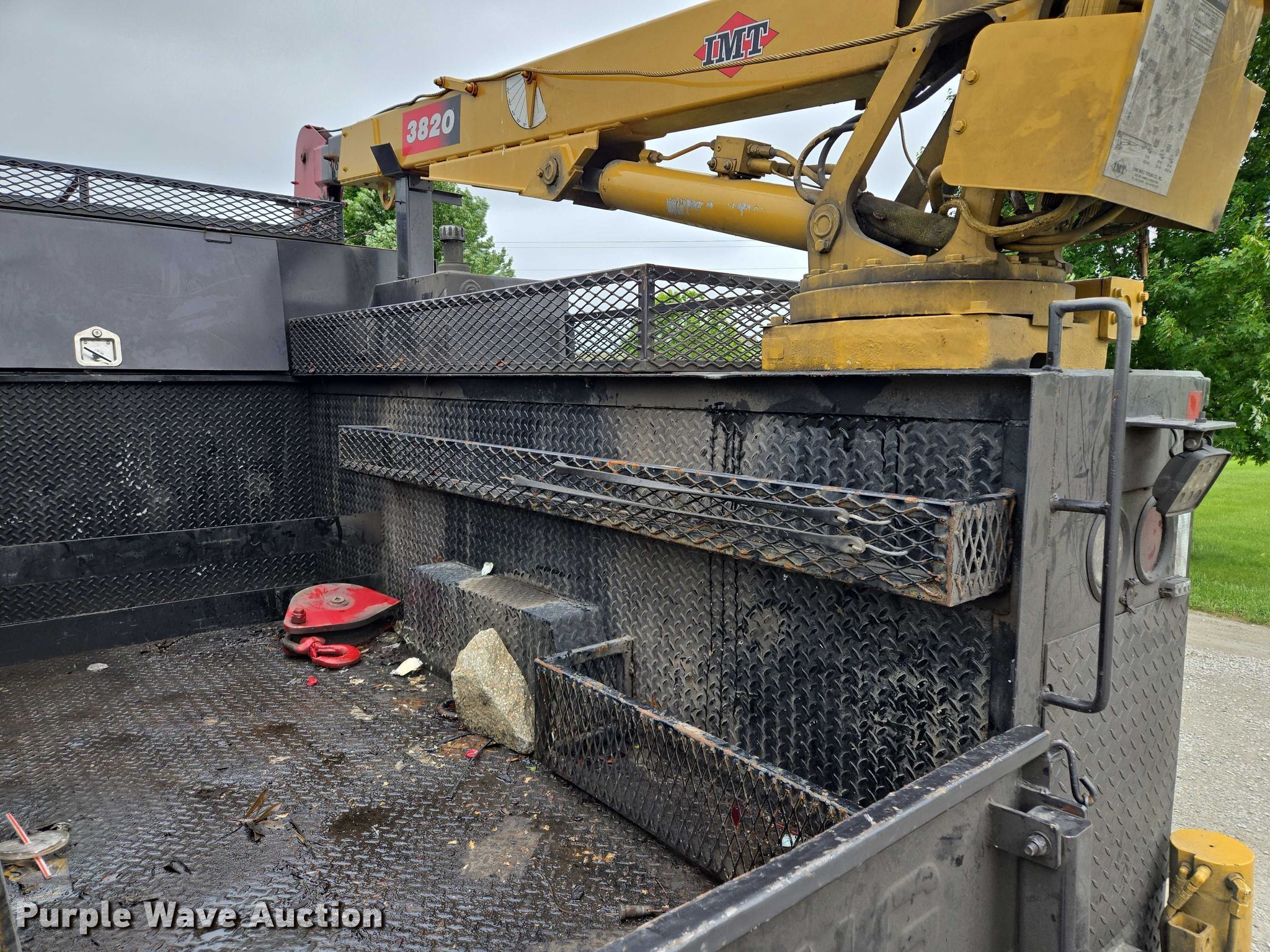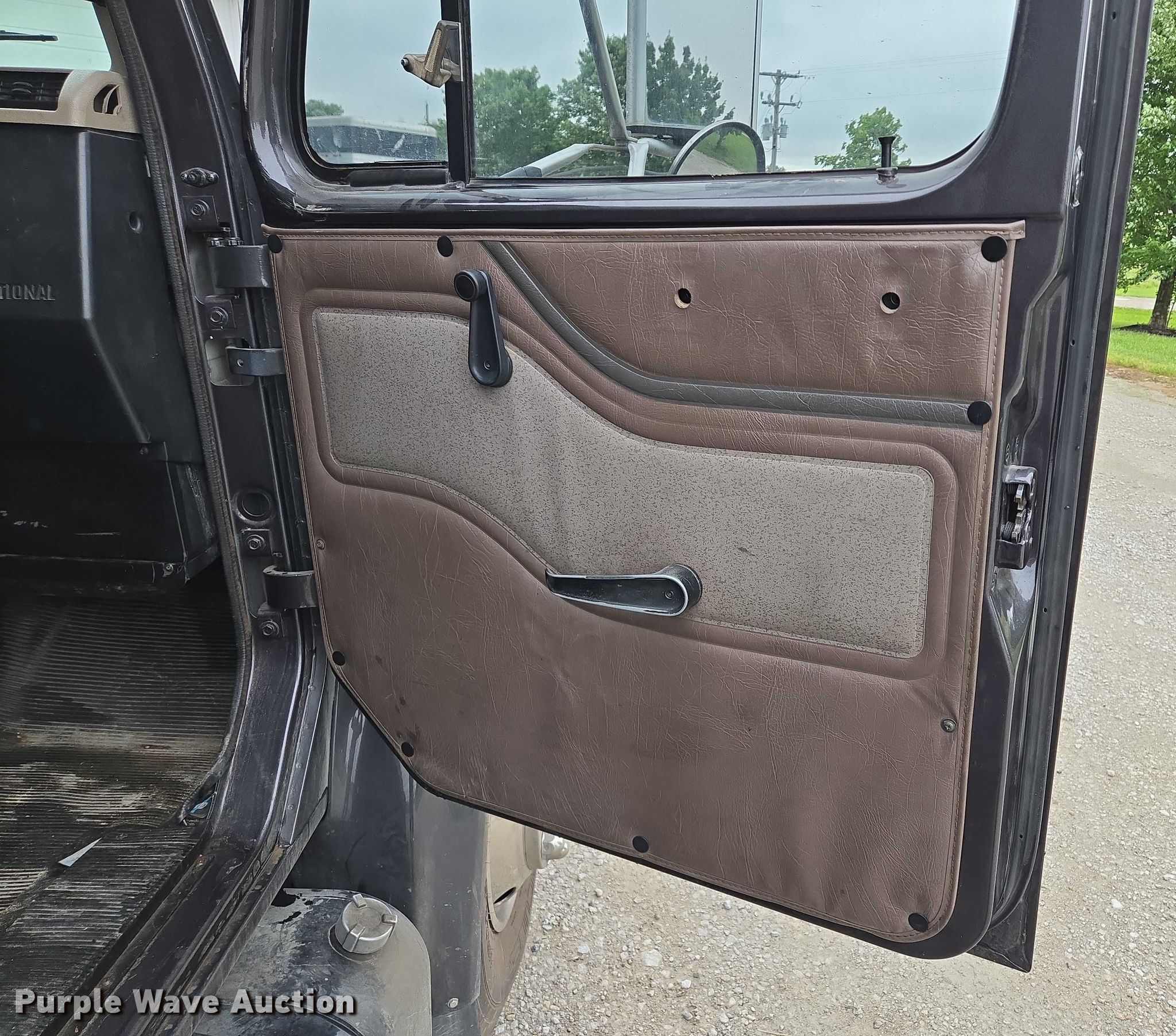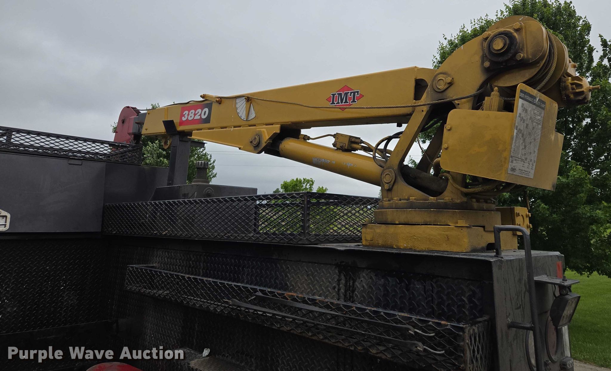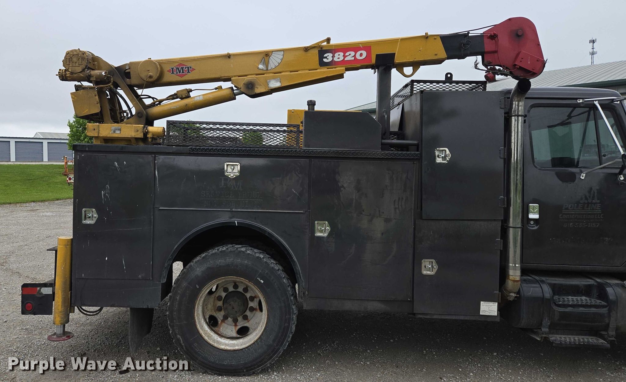 2000 International 4700 utility / service truck. Miles: Unknown, VIN: 1HTSLABMXYH282900. Engine International T444E, Displacement: 7.3L, Cylinders: 8, Fuel type: Diesel. Transmission Eaton Fuller, Manual. Chassis Axles: Single, Suspension: Spring, Brakes: Hydraulic, PTO, GVWR: 11,567 lbs. Interior Heat, Auxiliary controls. Features Bed 11' L x 94" W, Air compressor IMT CAS40P-AW, Crane IMT 3820, Maximum boom length: 20.5' Maximum lift capacity: 7,500 lbs.. Tires Size: 11R22.5. Notes Dash warning indicator: ABS, Windshield chipped or cracked, Non-operational odometer, Coolant leak, Engine issues, blow-by , Crane cable issues, damaged. Oklahoma classic title. Mileage has not been verified. Exempt will be written in the odometer disclosure on the title. Title distribution may be delayed up to 30 days from verification of funds. Plattsburg, MO 64477
