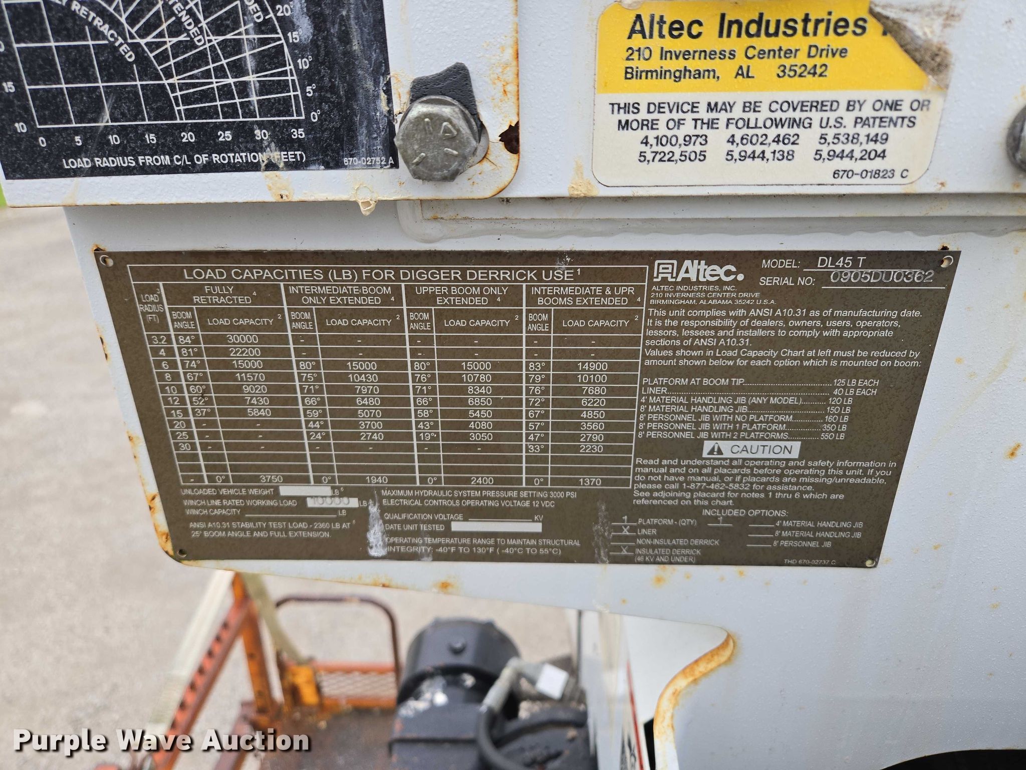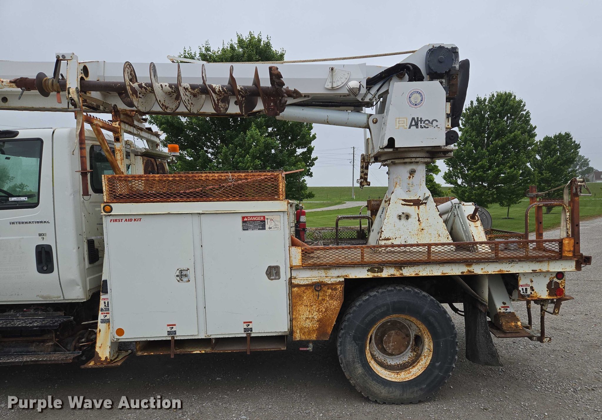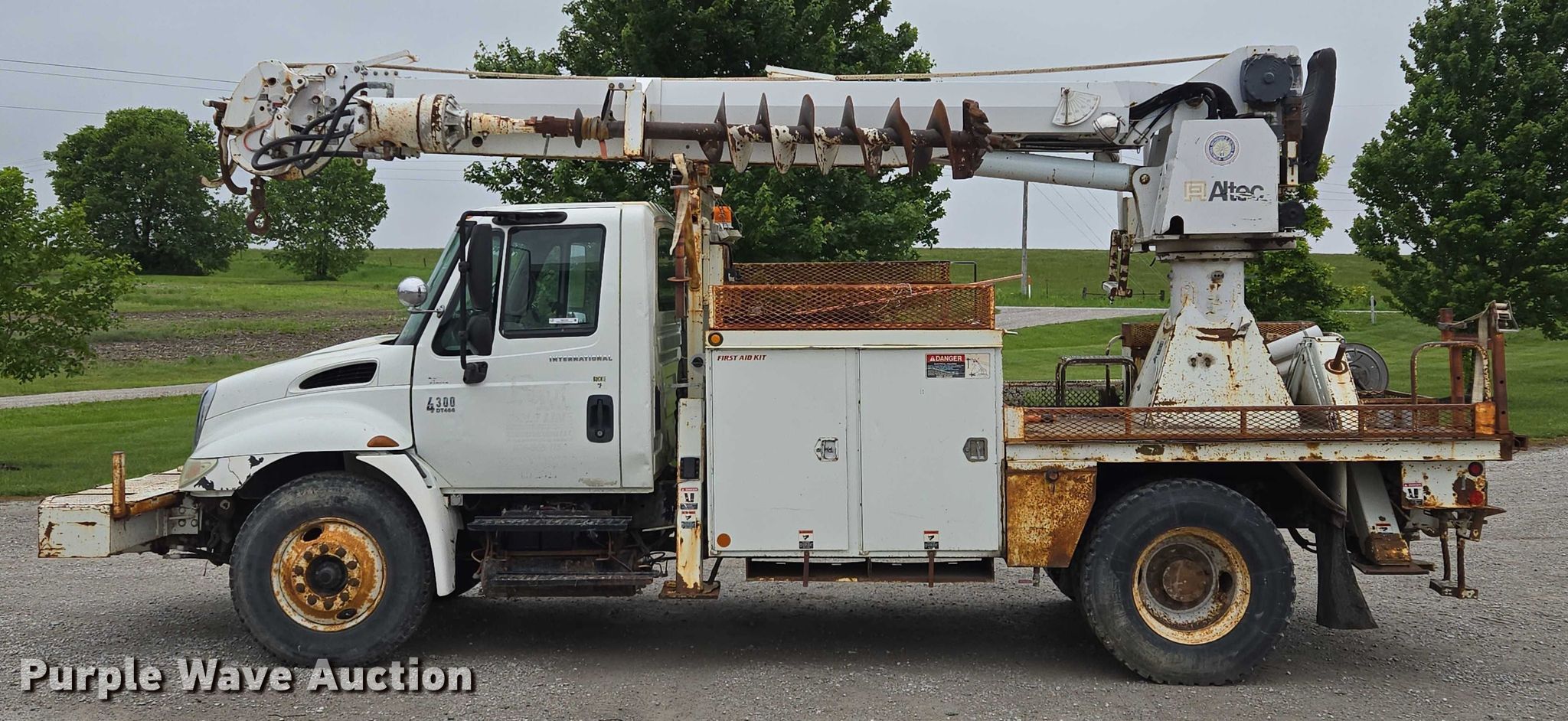 2006 International 4300 digger derrick truck. Miles: 168,619 on odometer, VIN: 1HTMMAAN76H229276. Engine International DT466, Displacement: 7.64L, Cylinders: 6, Fuel type: Diesel. Transmission International 6 Plus, Manual, Speed: 7. Chassis Axles: Single, Differential lock, Suspension: Spring, Brakes: Air, PTO, GVWR: 33,000 lbs. Interior AC, Heat, Cruise control. Features Bed Altec, Serial: 37-4331323, 13' L x 96" W, Boom Altec DL45 T, Serial: 0905DU0362, Boom length: 45', Maximum lift capacity: 15,000 lbs, Maximum lift height: 47', Boom type: Telescopic, Boom controls Platform/ basket, Material handler, Pole guide, Auger Diameter: 18".. Tires Size: 11R22.5. Notes Dash warning indicator: Check engine, ABS, Fuel filter, Warn engine, Engine. Oklahoma title. Title distribution may be delayed up to 30 days from verification of funds. Plattsburg, MO 64477