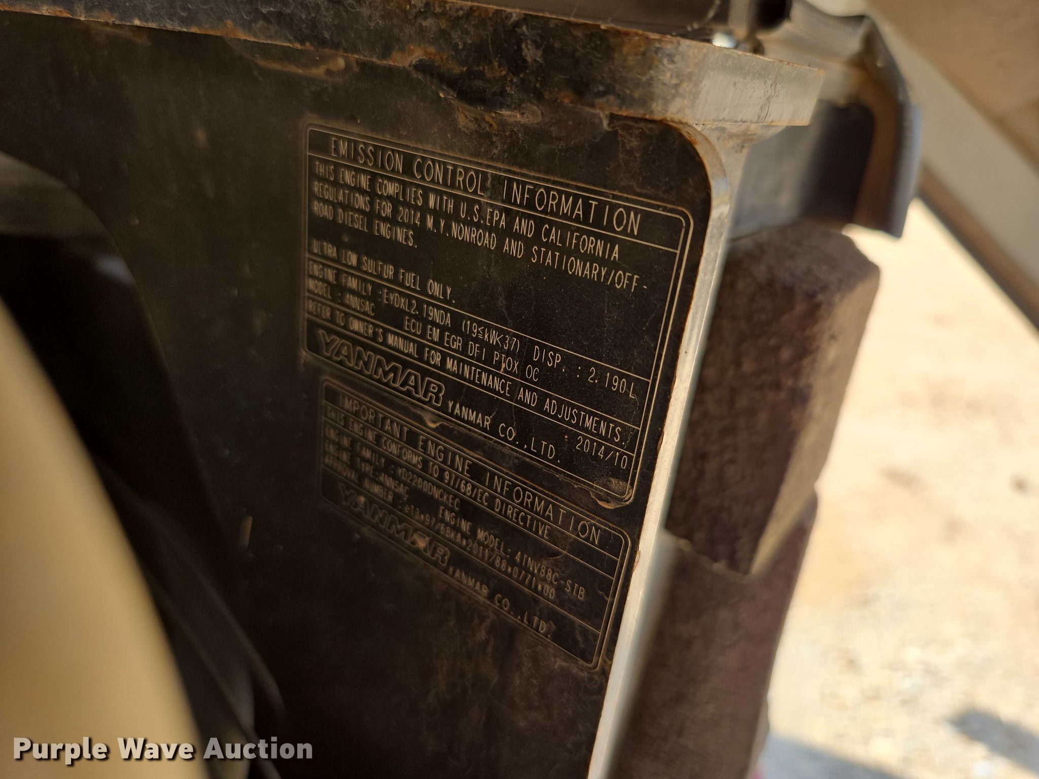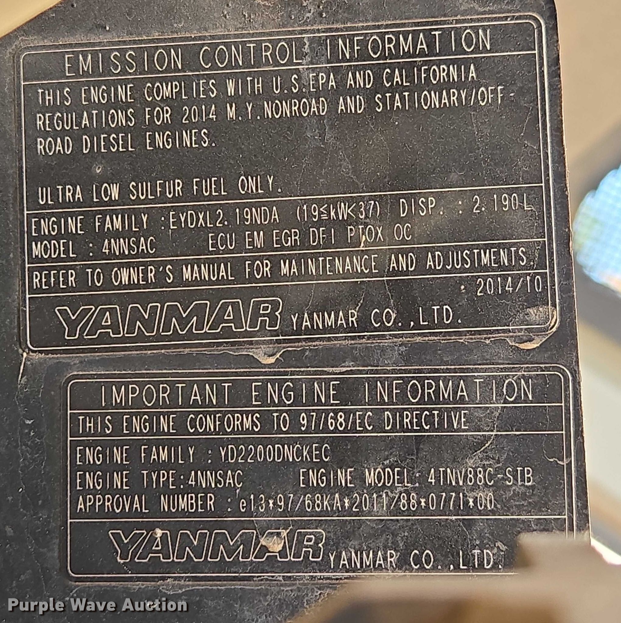 2015 Takeuchi TB240 mini excavator. Hours: 3,953 on meter, Serial: 124000510, Unit #: 93336. Engine Yanmar 4TNV88C-STB, Serial: 04046, Displacement: 2.189L, Cylinders: 4, Fuel type: Diesel. Transmission Hydrostatic. Operators station Enclosed cab, AC, Heat. Features Auxiliary hydraulics, Backfill blade Width: 68.5", Boom Swing, Stick Stick length: 63", Quick coupler: Mechanical TAG.. Tracks Width: 14", Rubber. Midwest equipment. Springfield, MO 65802
