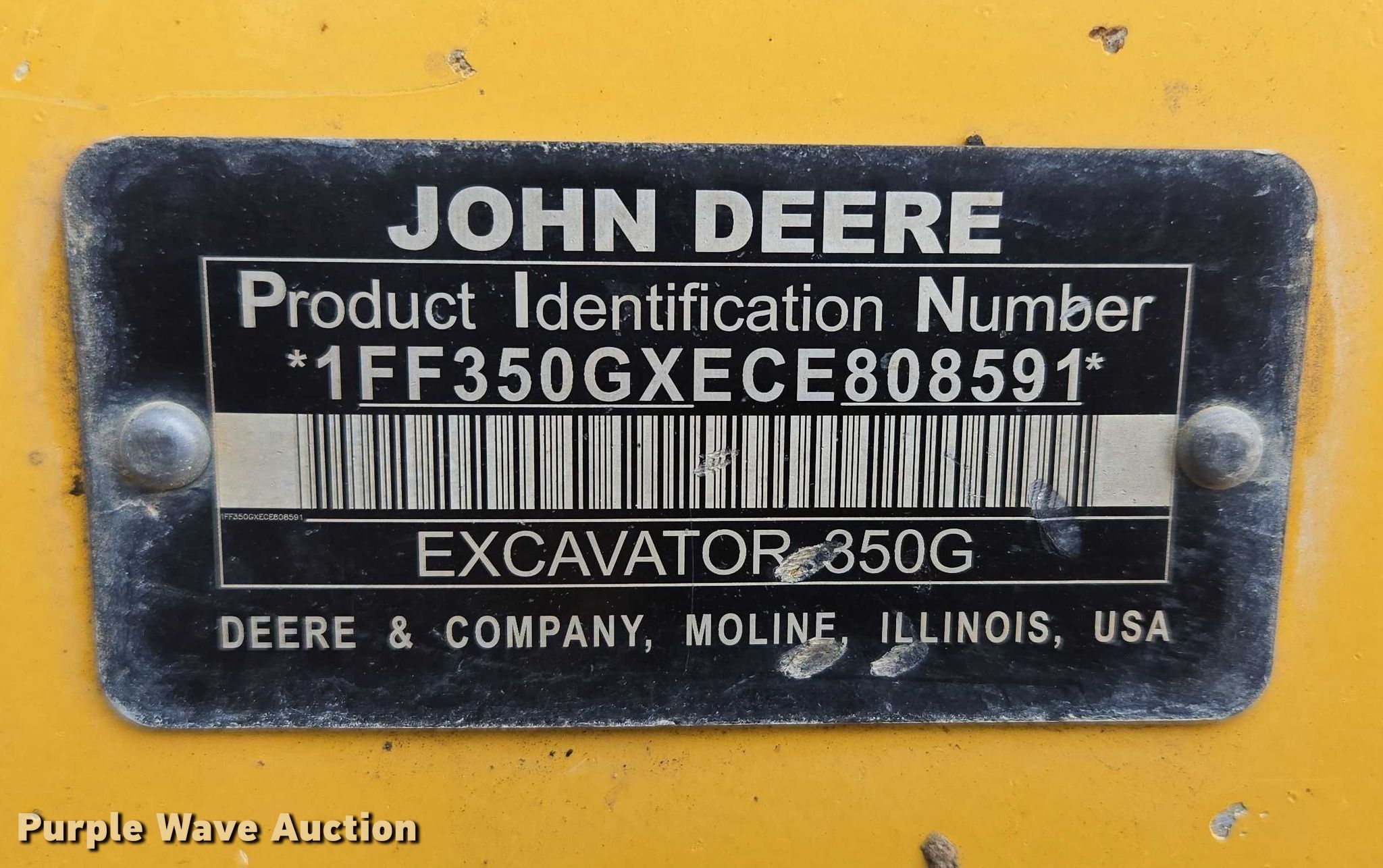 Purple Wave is selling a used Hydraulic Excavator in Missouri. This item is a 2012 John Deere 350G LC excavator with the following: Hours: 8,882 on meter, Serial: 1FF350GXECE808591, Unit #: 93445