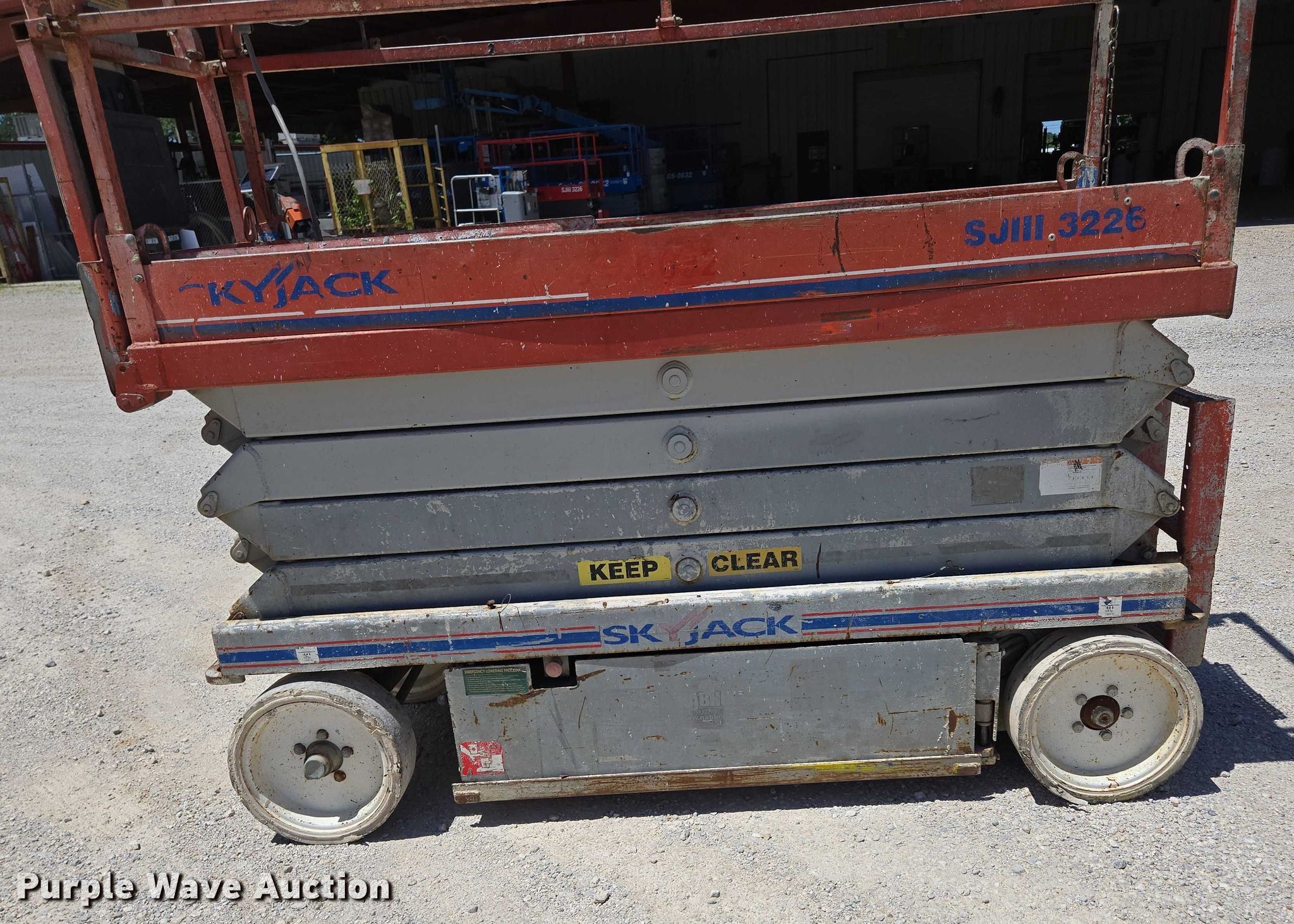 Purple Wave is selling a used Scissor or Vertical Lift in Arkansas. This item is a 2006 Skyjack SJ3226 scissor lift with the following: Hours: 479 on meter, Serial: 276653