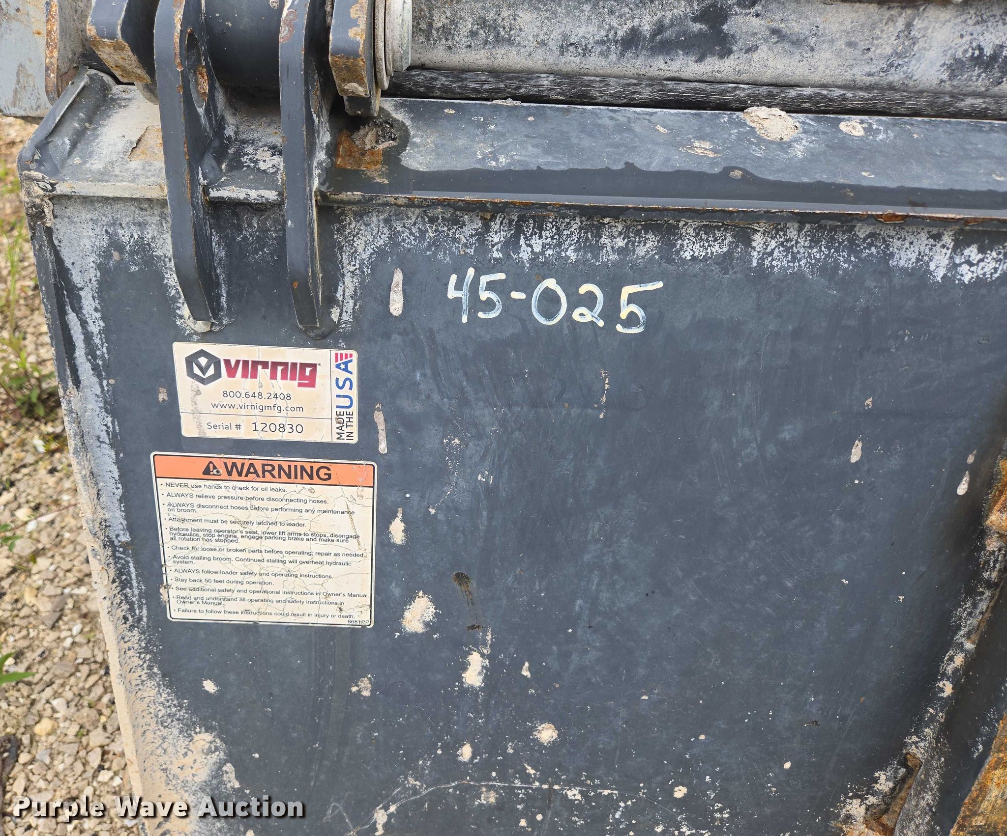 Purple Wave is selling a used Skid Steer Attach. in Missouri. This item is a Virnig 84 skid steer broom with the following: Serial: 120830, Unit #: 88.671704, Width: 84", Length: 59", Oil Leak, Weld repair