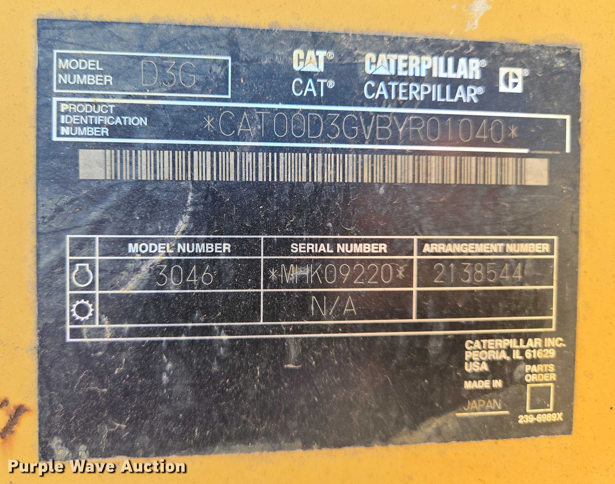 Purple Wave is selling a used Crawler Dozer in Kansas. This item is a 2005 Caterpillar D3G LGP dozer with the following: Hours: 5,908 on meter, Serial: CAT00D3GVBYR01040