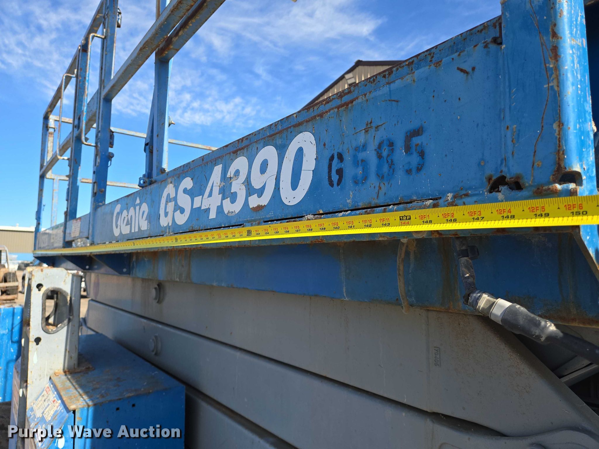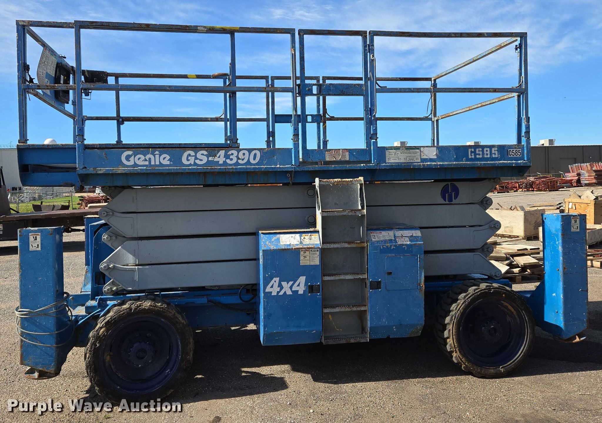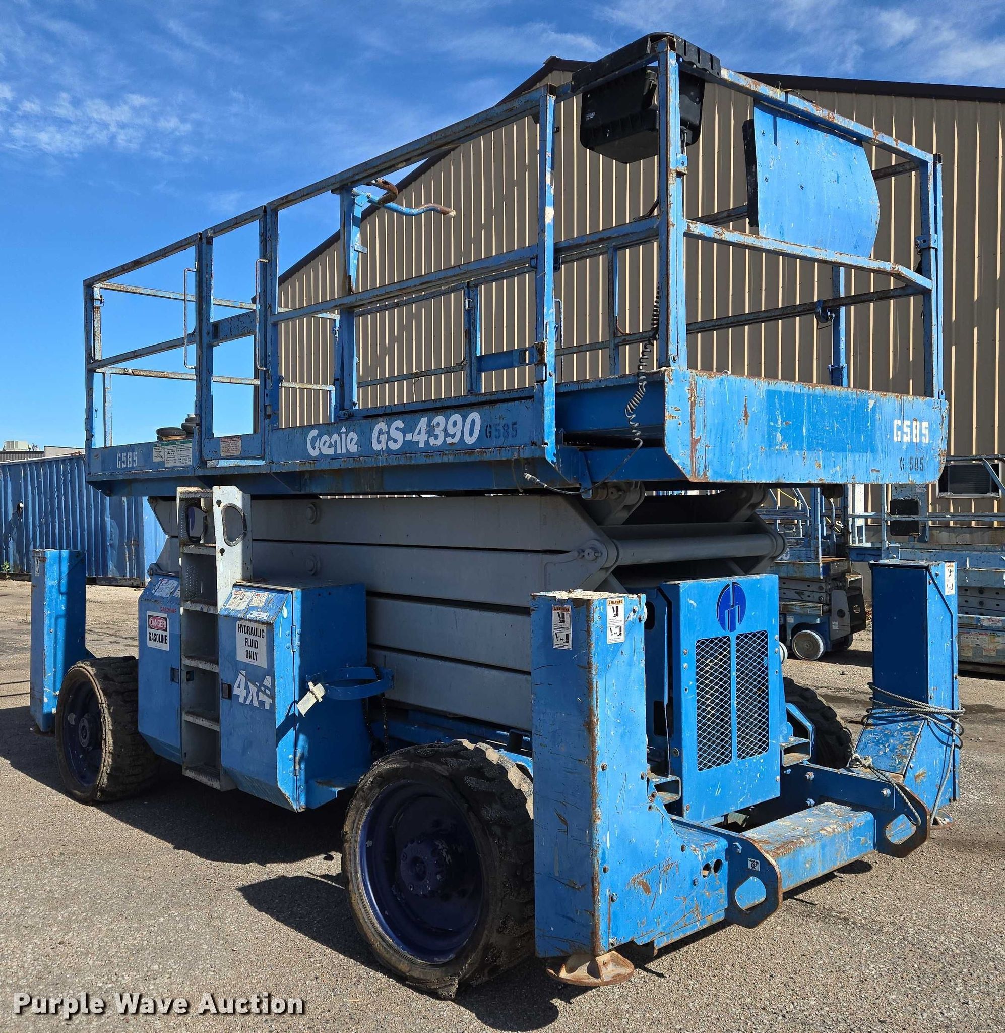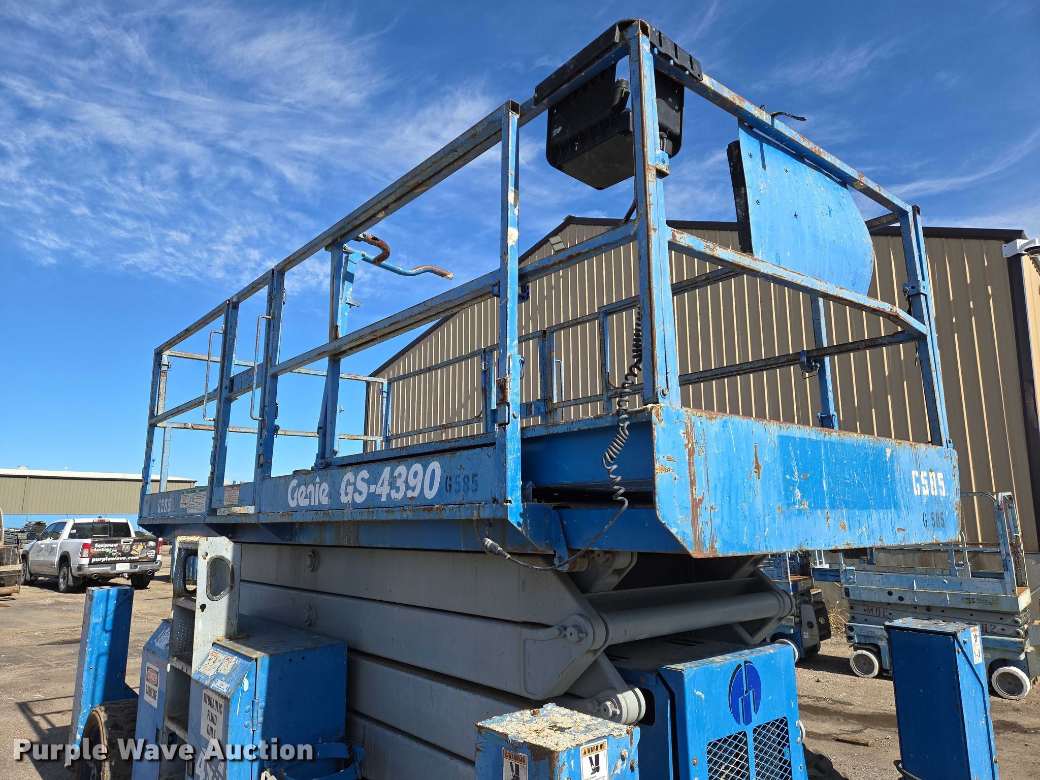 Purple Wave is selling a used Scissor or Vertical Lift in Kansas. This item is a 2004 Genie GS-4390 scissor lift with the following: Hours: 4,633 on meter, Serial: GS9004-41585