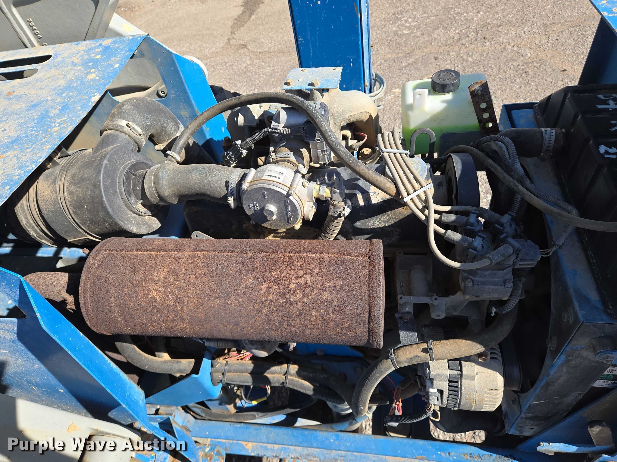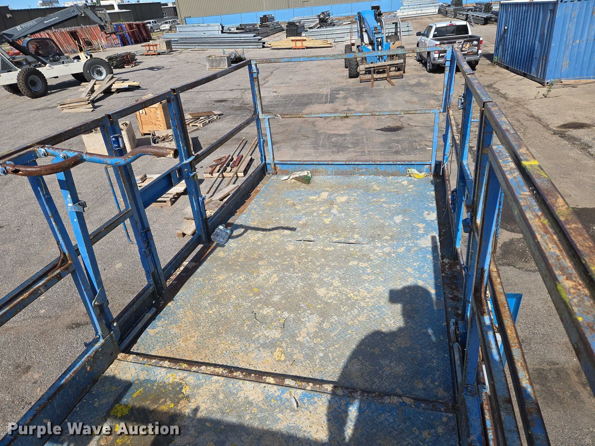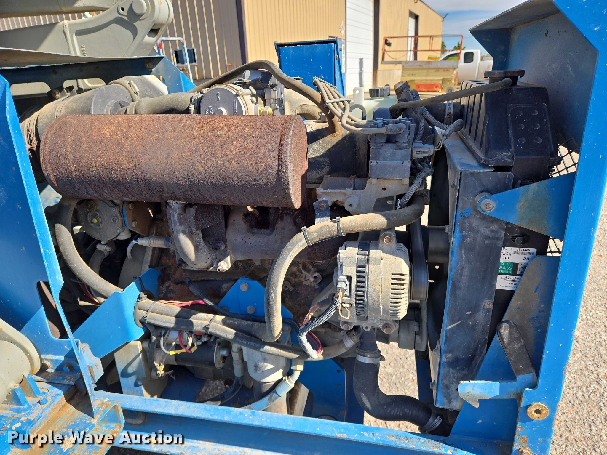 2004 Genie GS-4390 scissor lift. Hours: 4,633 on meter, Serial: GS9004-41585. Engine Cylinders: 4, Fuel type: Gas. Chassis Four wheel drive. Features Rough terrain, Maximum lift capacity: 1,500 lbs, Maximum lift height: 43', Hydraulic outriggers, Platform: 150" L x 72" W, Controls: Platform, Ground, Platform extensions: Manual. Tires Tire size: 305-546. Midwest Drywall Company. Wichita, KS 67209
