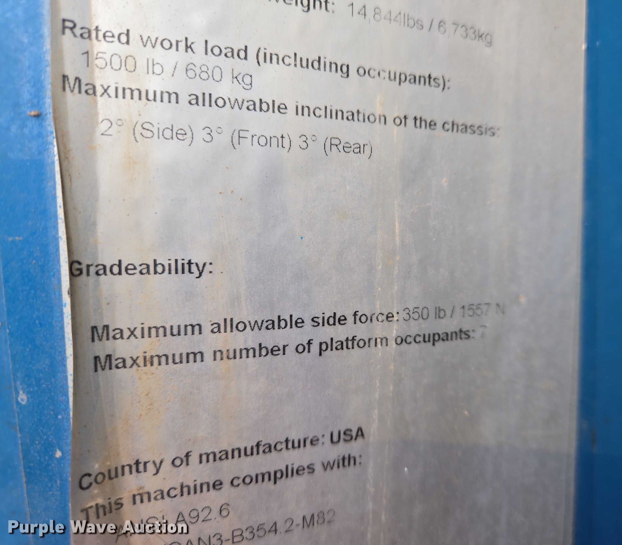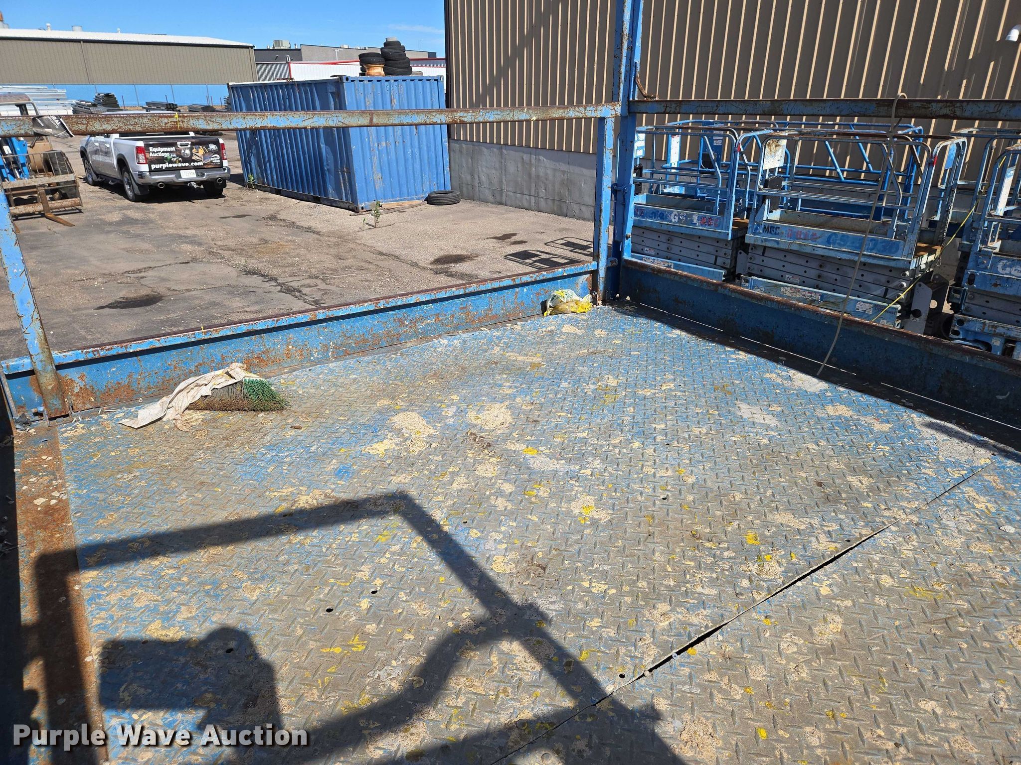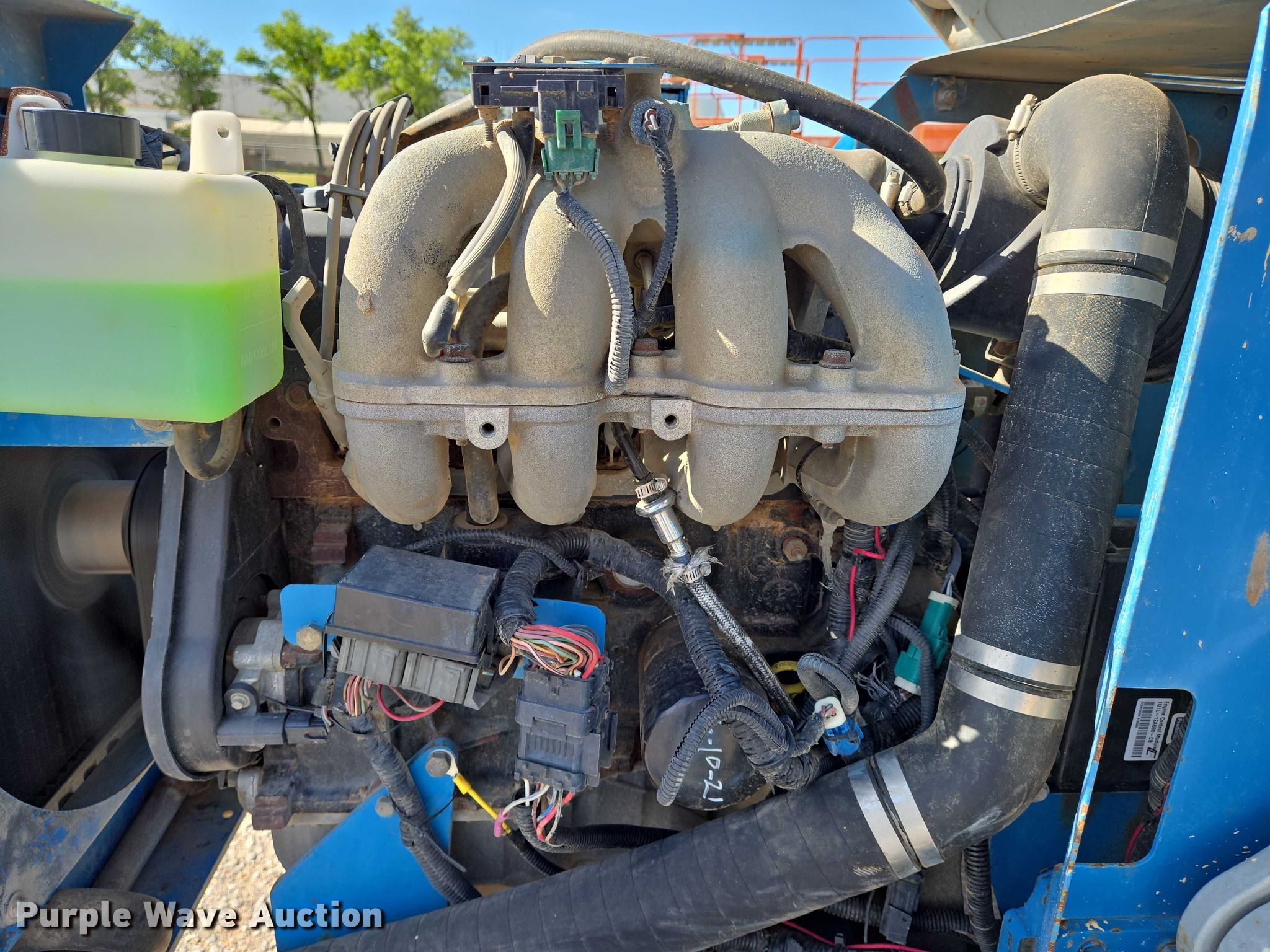 2004 Genie GS-4390 scissor lift. Hours: 4,633 on meter, Serial: GS9004-41585. Engine Cylinders: 4, Fuel type: Gas. Chassis Four wheel drive. Features Rough terrain, Maximum lift capacity: 1,500 lbs, Maximum lift height: 43', Hydraulic outriggers, Platform: 150" L x 72" W, Controls: Platform, Ground, Platform extensions: Manual. Tires Tire size: 305-546. Midwest Drywall Company. Wichita, KS 67209