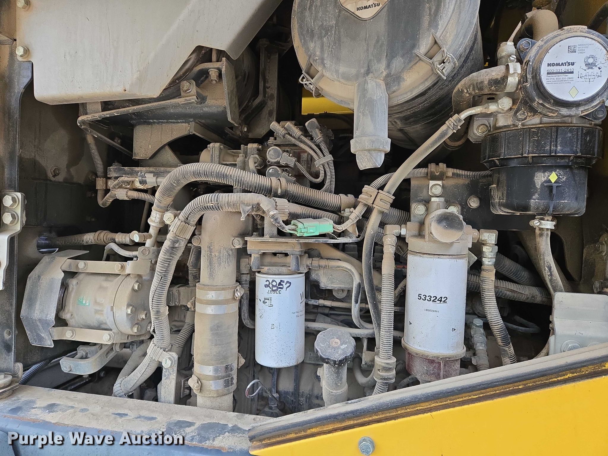 2015 Komatsu WA320-7 wheel loader. Hours: 3,051 on meter, Serial: A36113. Engine Komatsu SAA6D107E-2, Cylinders: 6, Fuel type: Diesel, HP: 165. Transmission Hydrostatic. Operators station Enclosed cab, AC, Heat, Bucket controls: Joystick, Ride control. Features Quick coupler: Hydraulic, Counter weights, Bucket Paladin Komatsu WA320-8, Capacity: 3.5 cu.yd., Width: 108", Self- leveling bucket, Cutting edge: Bolt-on. Tires Size: 20.5R25. Coonrod & Associates Construction Co. Retirement. Humboldt, KS 66748