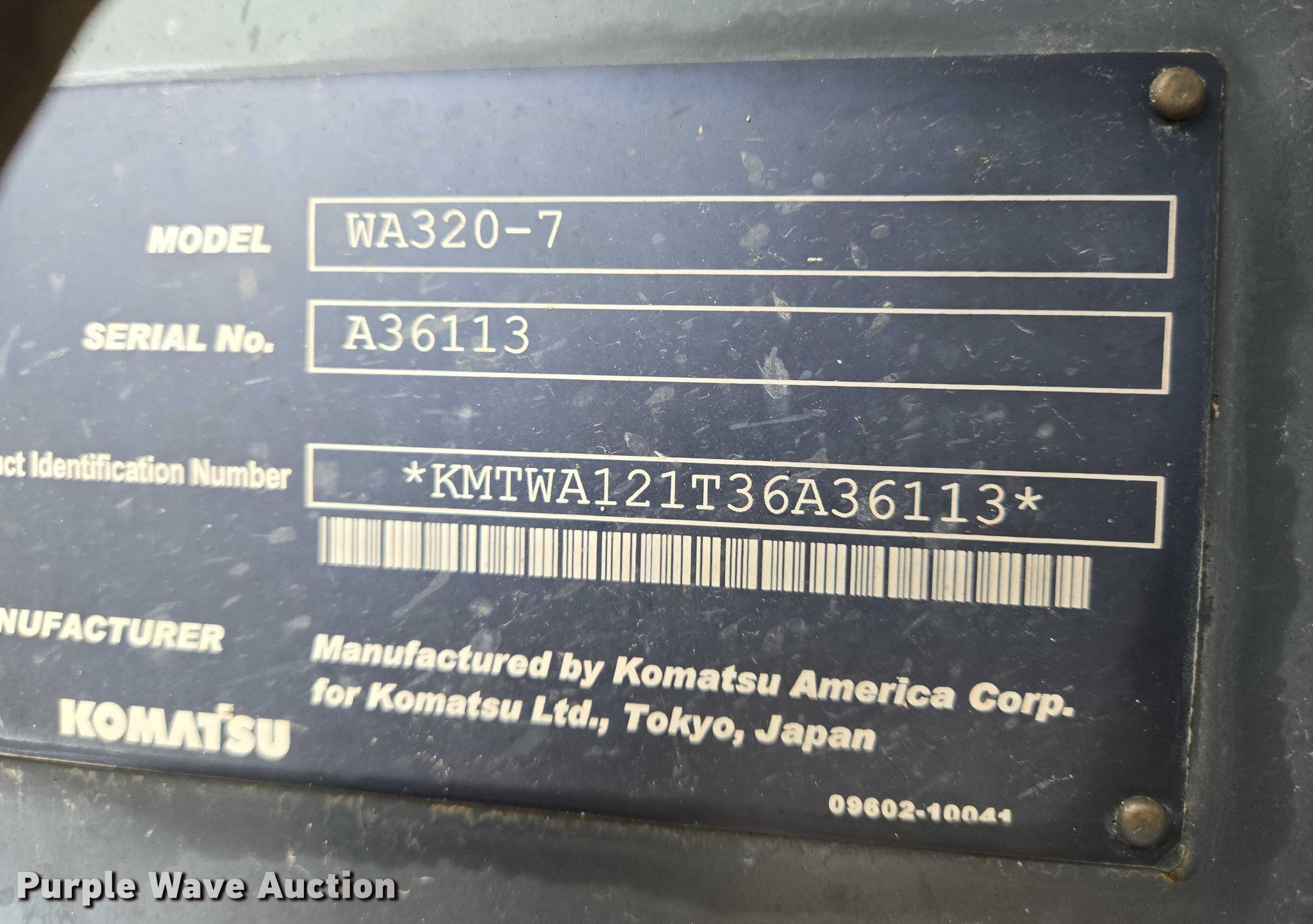Purple Wave is selling a used Wheel Loader in Kansas. This item is a 2015 Komatsu WA320-7 wheel loader with the following: Hours: 3,051 on meter, Serial: A36113
