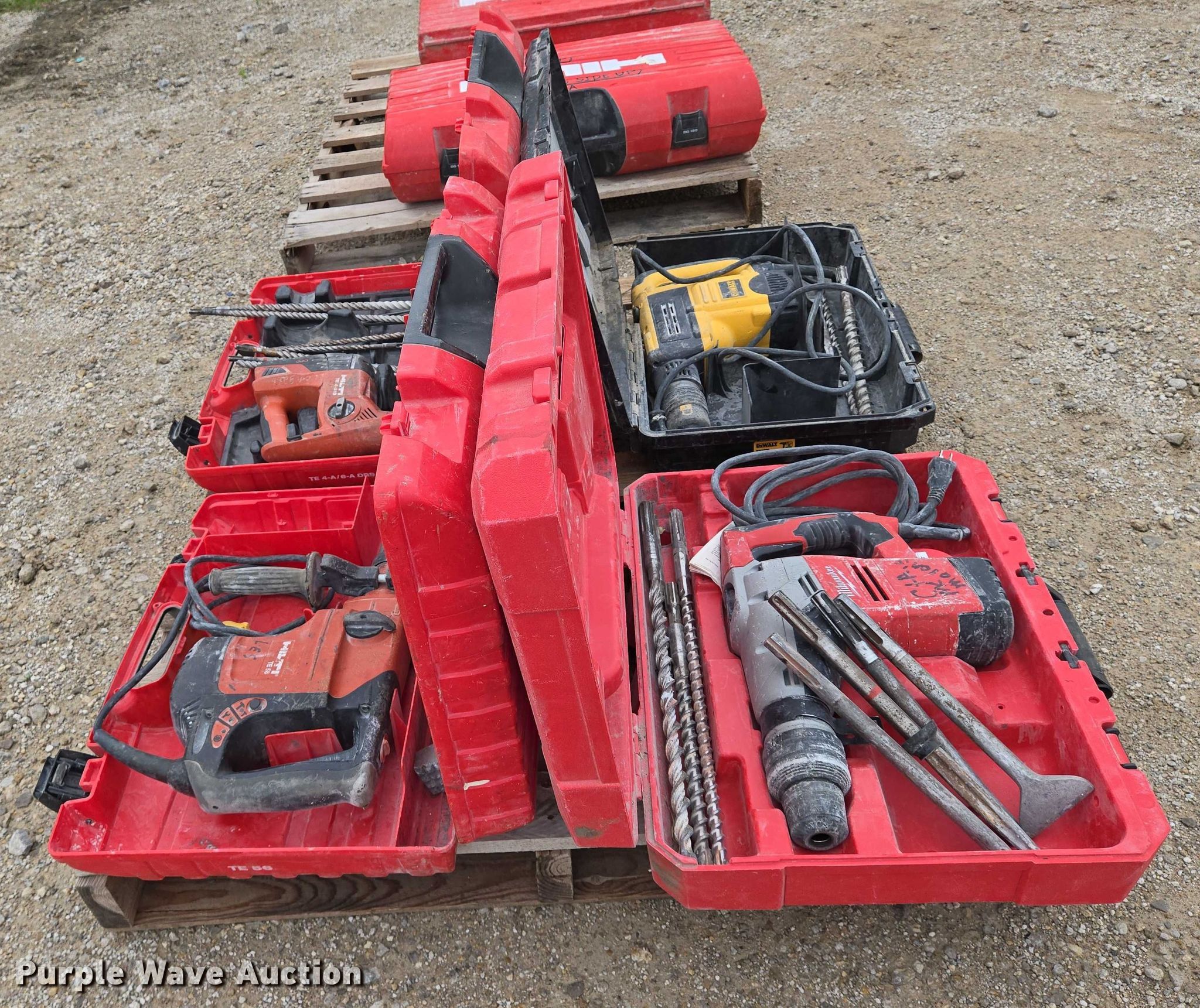 (4) hammer drills. Dewalt (5) bits, Hilti TE 56 (4) bits, Hilti TE 4-A18 (12) bits, Milwaukee (8) bits. Coonrod & Associates Construction Co. Retirement. Humboldt, KS 66748