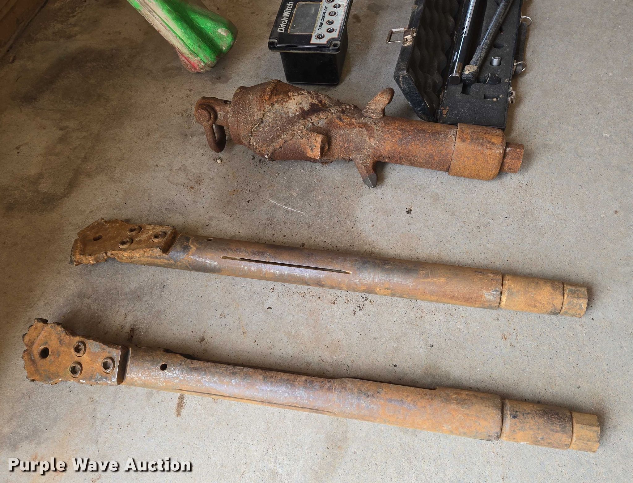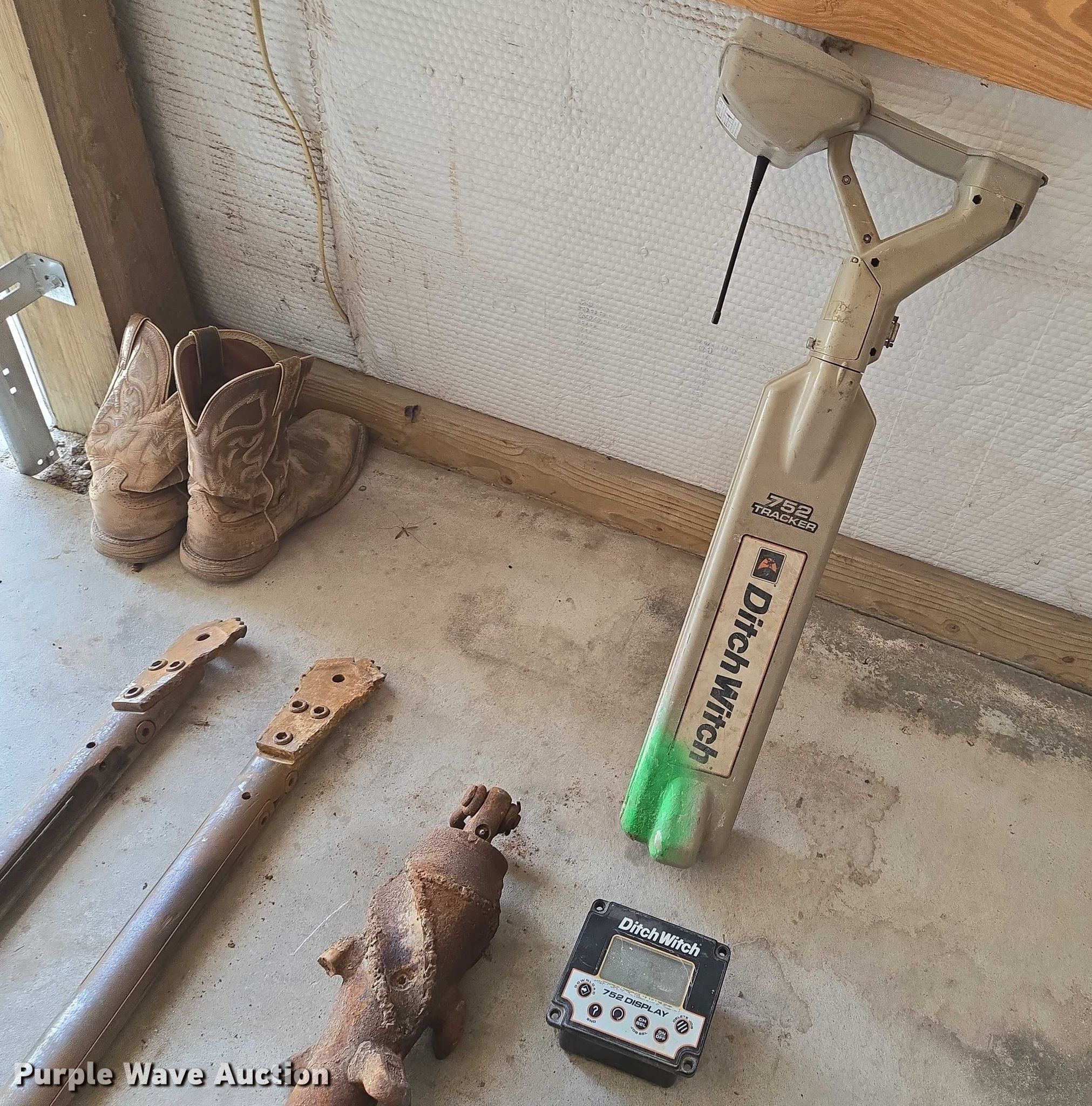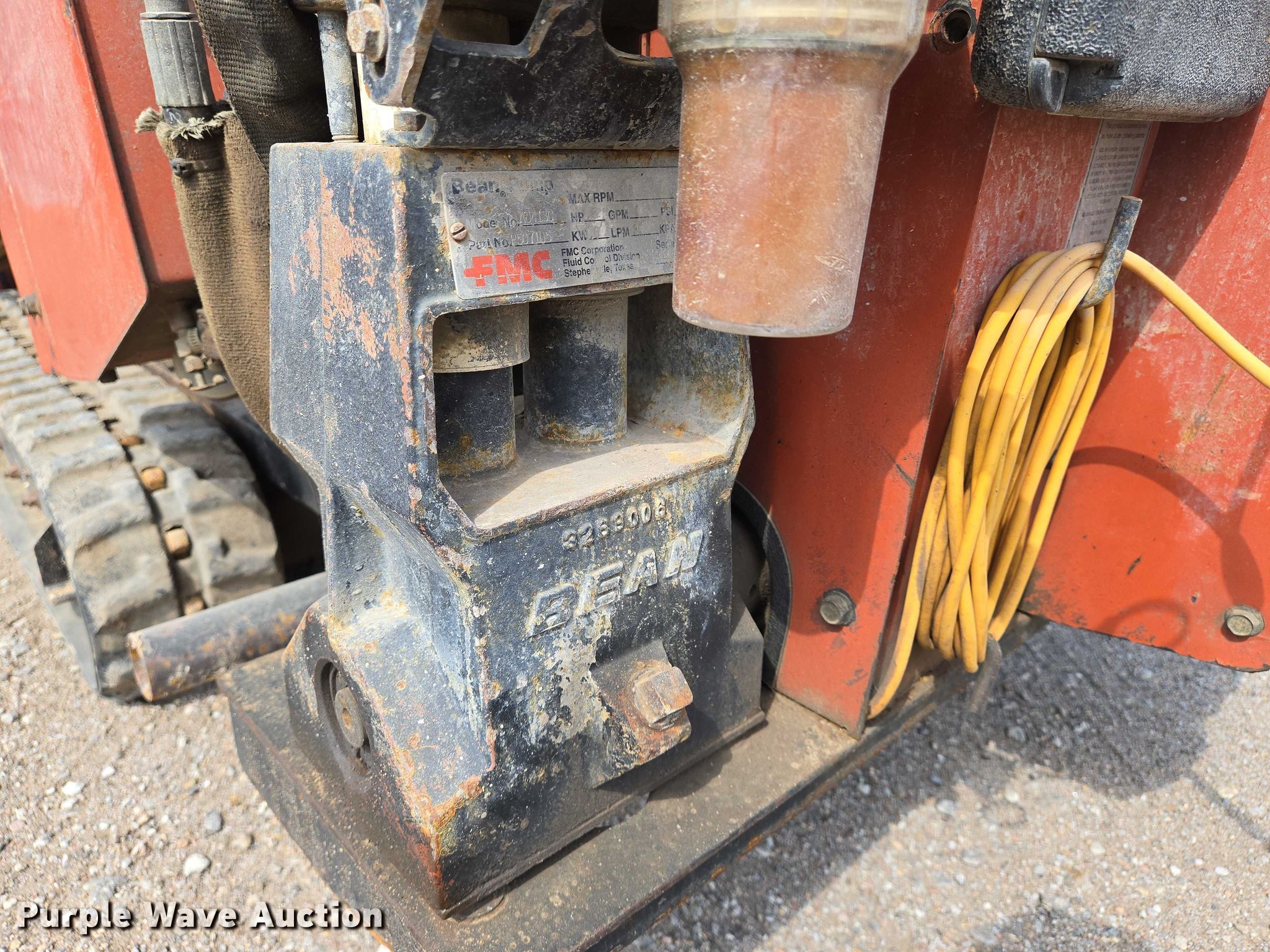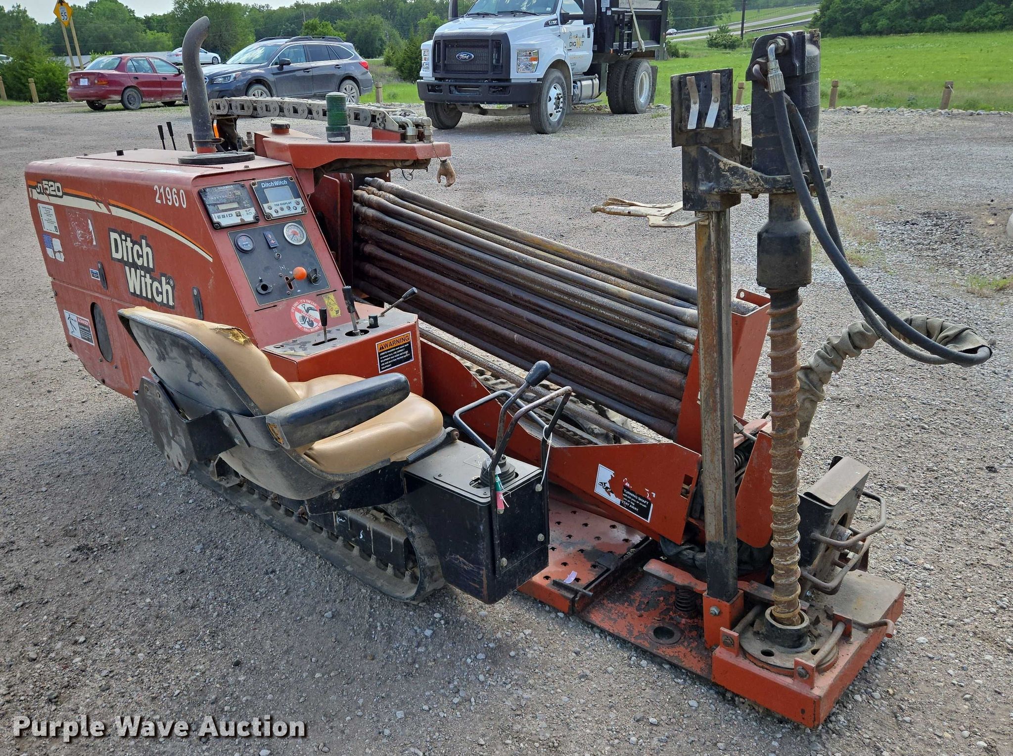 2005 Ditch Witch JT520 directional boring unit. Hours: 1,831 on meter, Serial: 2Z1300. Engine Kubota, Displacement: 1.1, Cylinders: 3, Fuel type: Diesel. Features Water pump FMC A0413C, GPM: 9, Drill stems On drill: 32, Drill stem length: 5' Diameter: 1", Rear hydraulic stabilizers, Hydraulic stake down, Backreamer diameter: 6", Locator Ditch Witch 752, Ditch Witch 750 display. Tracks Width: 7.5", Rubber. Notes Additional parts: (2) beacons, (2) drill stem heads, Ditch Witch 752 remote display intermittent issues. Dig N It. Andover, KS 67002