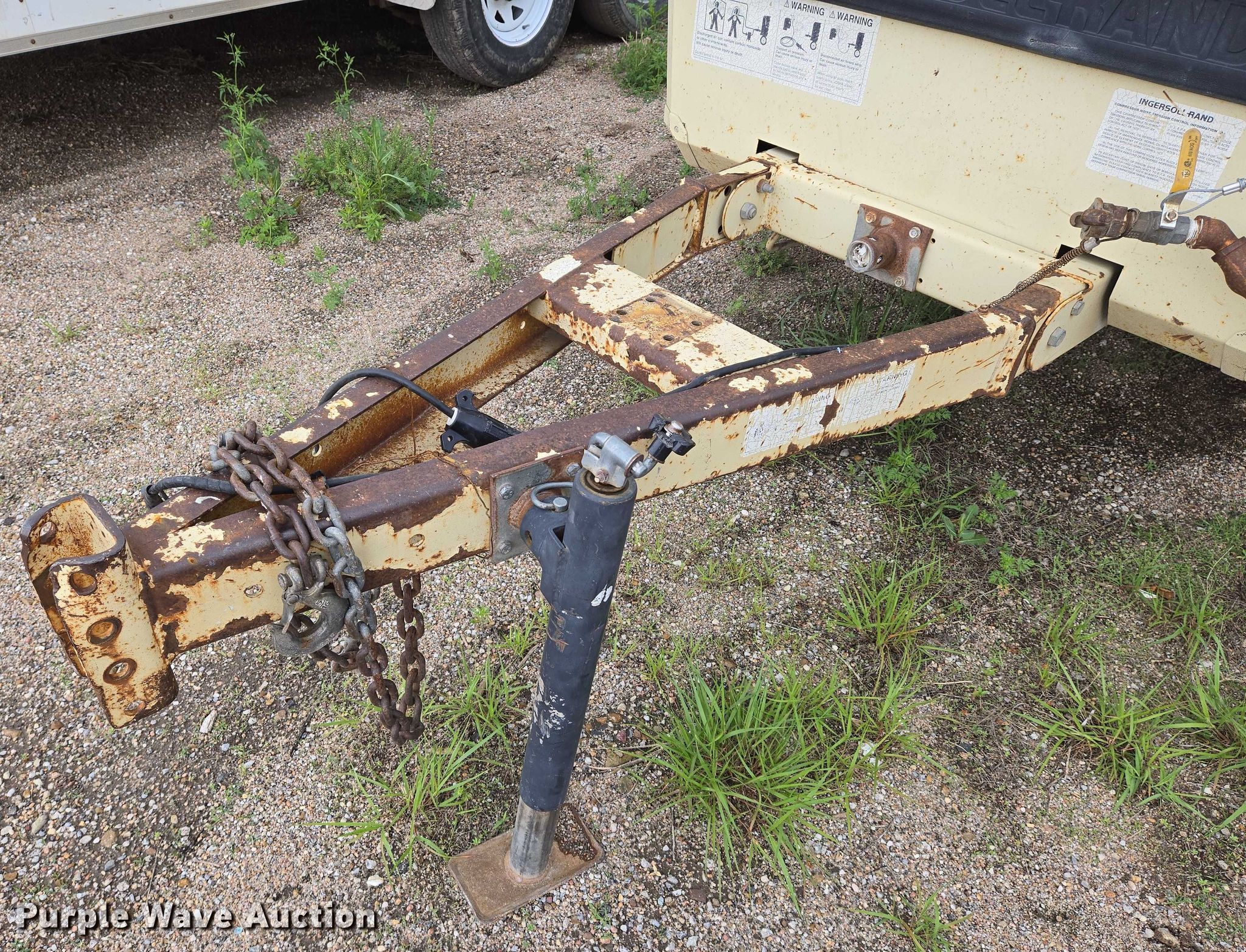 1999 Ingersoll- Rand 185 air compressor. Hours: 4,266 on meter, Serial: 302599UFJ219, Unit #: 92.04W. Engine Cylinders: 4, Fuel type: Diesel. Features Air compressor CFM: 185. Trailer 11' L x 70" W, Suspension: Spring, Brakes: Electric, Axles: Single, Tire size: 205/75R15. Notes Non-operational unit. This is worksite support equipment and will not come with a title. Transfer of ownership documentation will be a bill of sale. Sherwood Construction Company. Wichita, KS 67277
