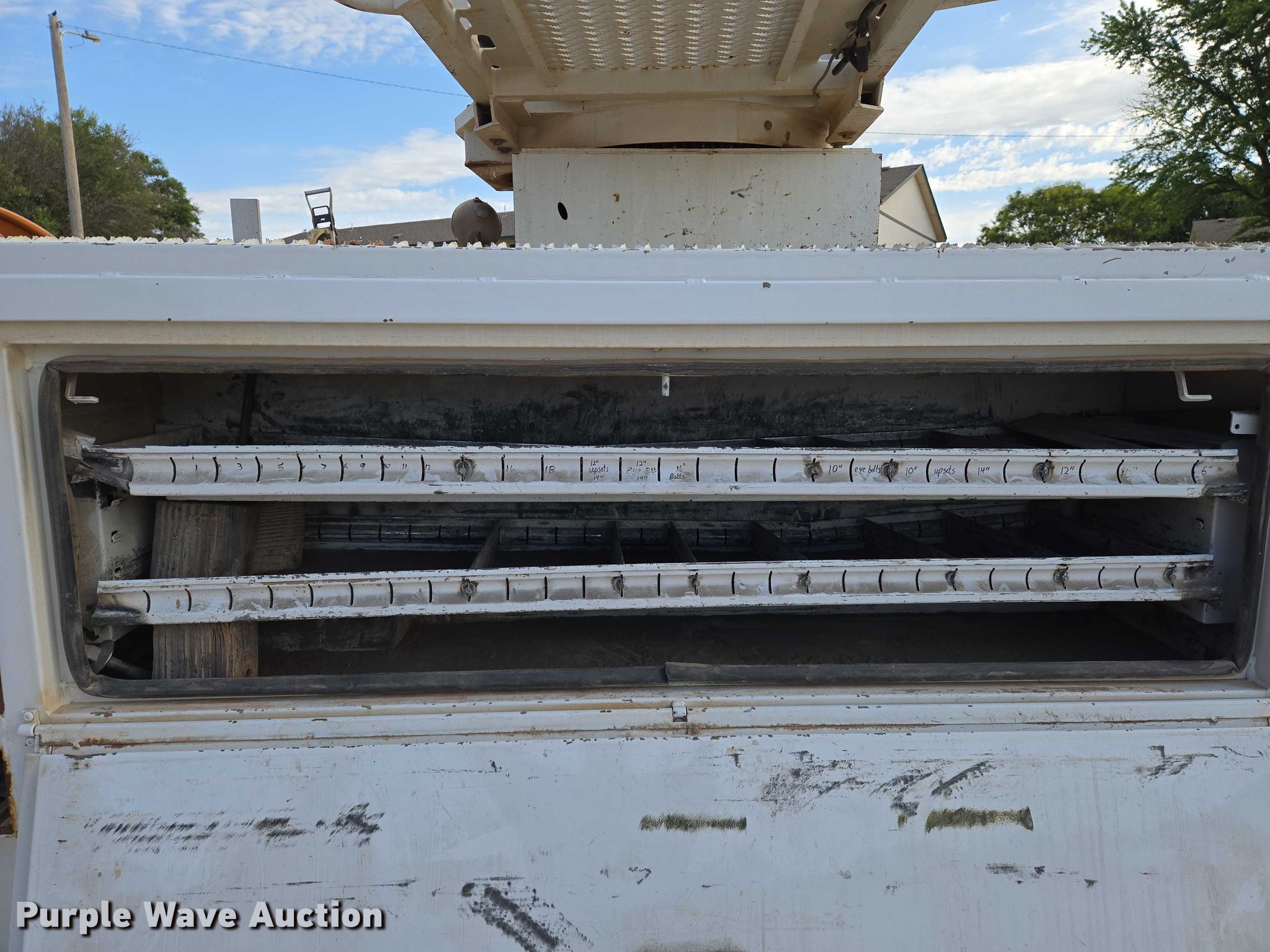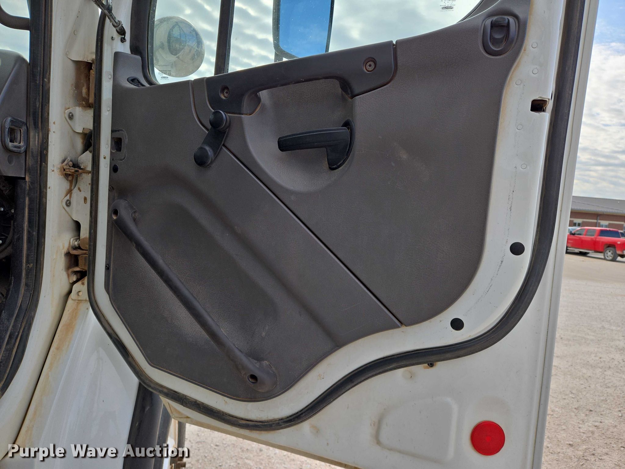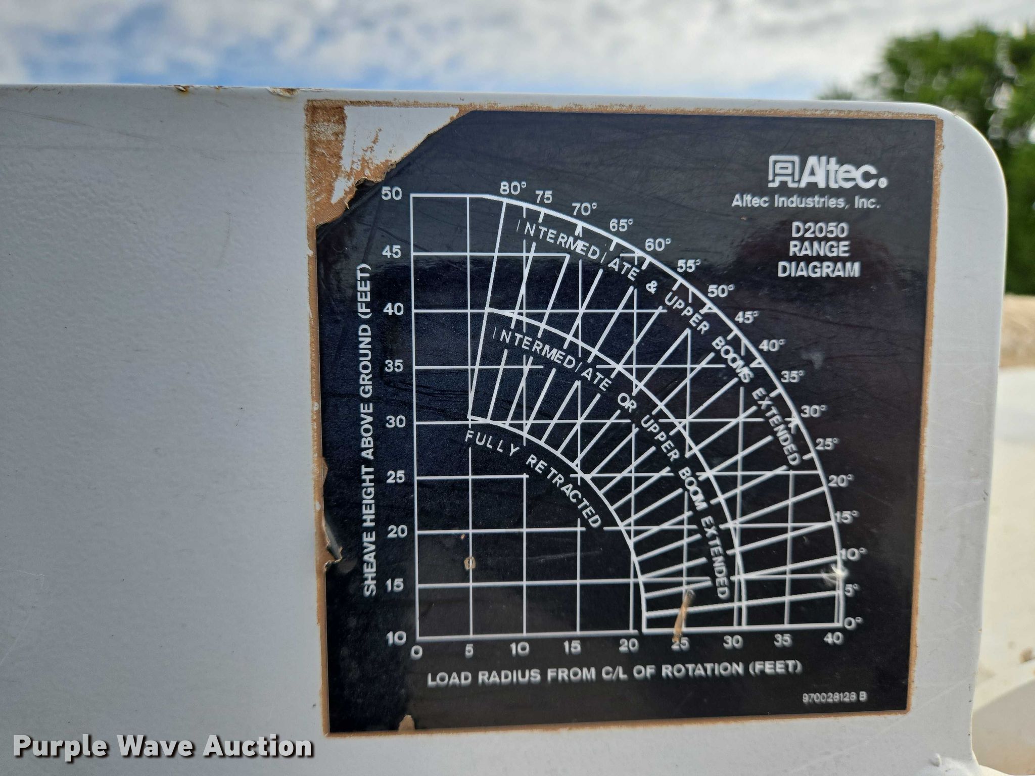 2014 Freightliner Business Class M2 digger derrick truck. Miles: 132,720 on odometer, VIN: 1FVHCYCY8EHFY2729. Engine Cummins ISL9 330, Serial: 73611911, Displacement: 8.9L, Cylinders: 6, Fuel type: Diesel, HP: 330. Transmission Eaton Fuller, Manual, Speed: 10. Chassis Axles: Tandem, Suspension: Spring over walking beam, Brakes: Air, PTO, Wet kit, GVWR: 58,000 lbs. Interior AC, Heat, Cruise control, Brake controller. Features Bed Altec, 17' L x 96" W, Boom Altec D2050BTR, Serial: 0314FT0085, Maximum lift capacity: 30,000 lbs, Maximum lift height: 50', Boom type: Insulated, Telescopic, Boom controls Platform/ basket, Material handler, Pole guide, Auger Diameter: 18", Certification valid through: 09/2025, Winch Capacity: 15,000 lbs. Tires Front: 315/80R22.5, Rear: 11R22.5. Notes EGR deleted, DEF deleted, Block heater may need replaced, Dash warning indicator: ABS. Oklahoma title. Title distribution may be delayed up to 30 days from verification of funds. Alfalfa Electric Cooperative, Inc.. Cherokee, OK 73728