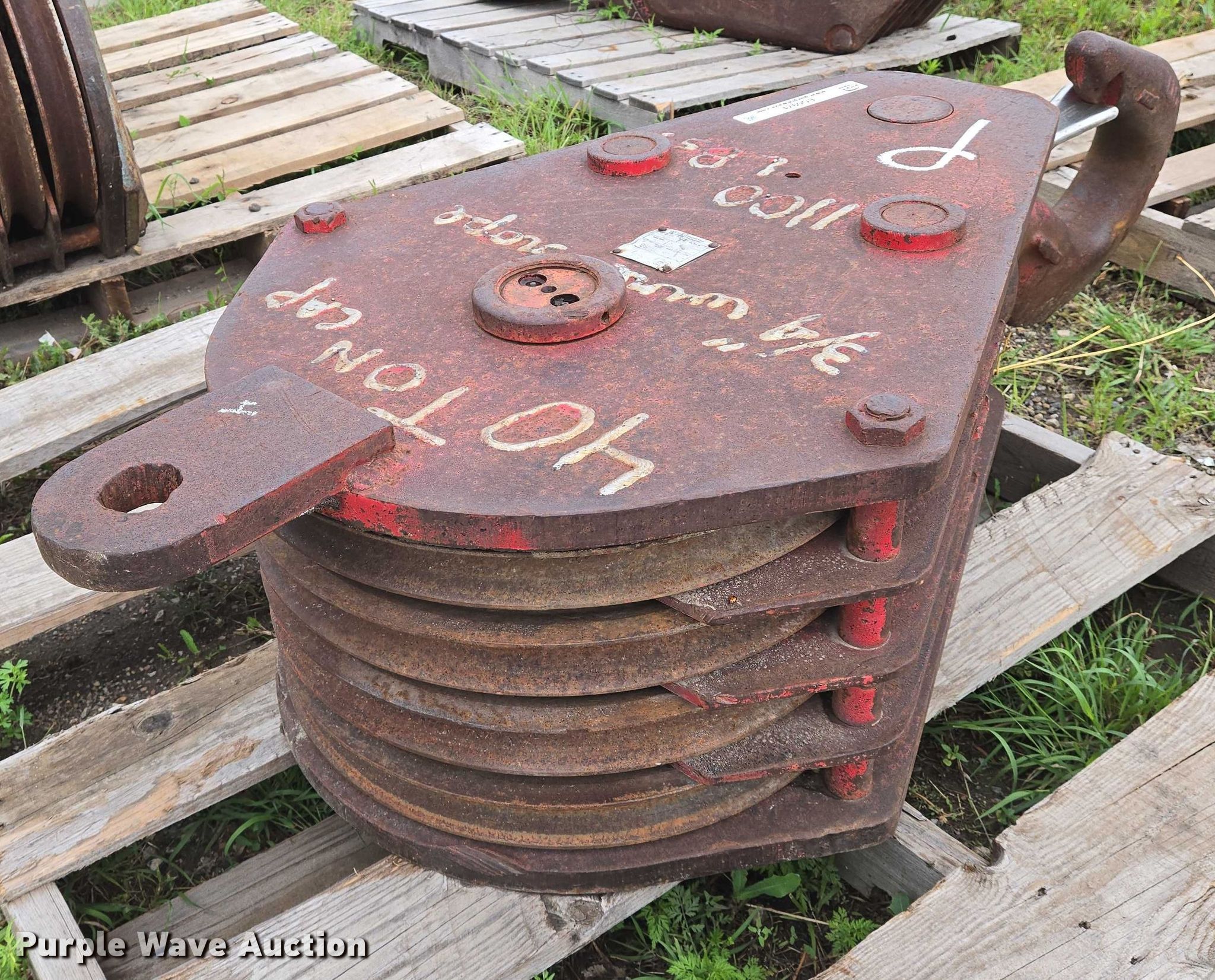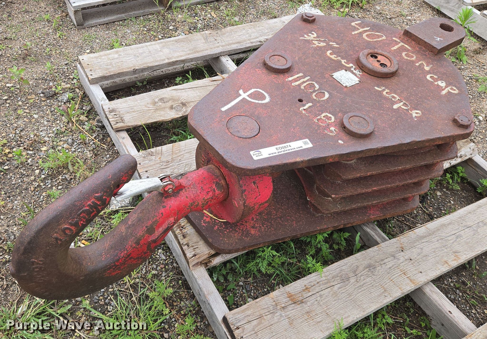 Purple Wave is selling a used Crane Attach. in Kansas. This item is a Crane block with the following: Serial: 83-381, Rope wire capacity: 3/4", Capacity: 40 tons, Sheaves: 4