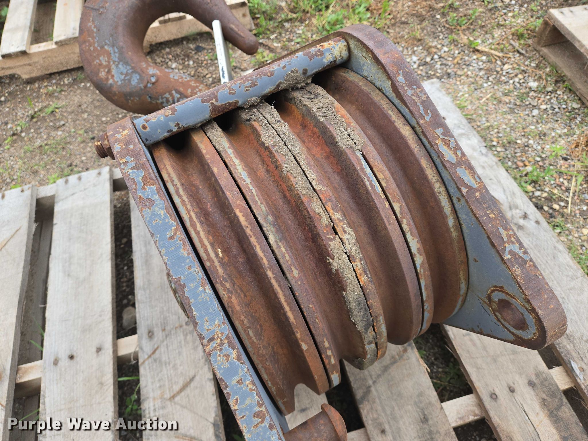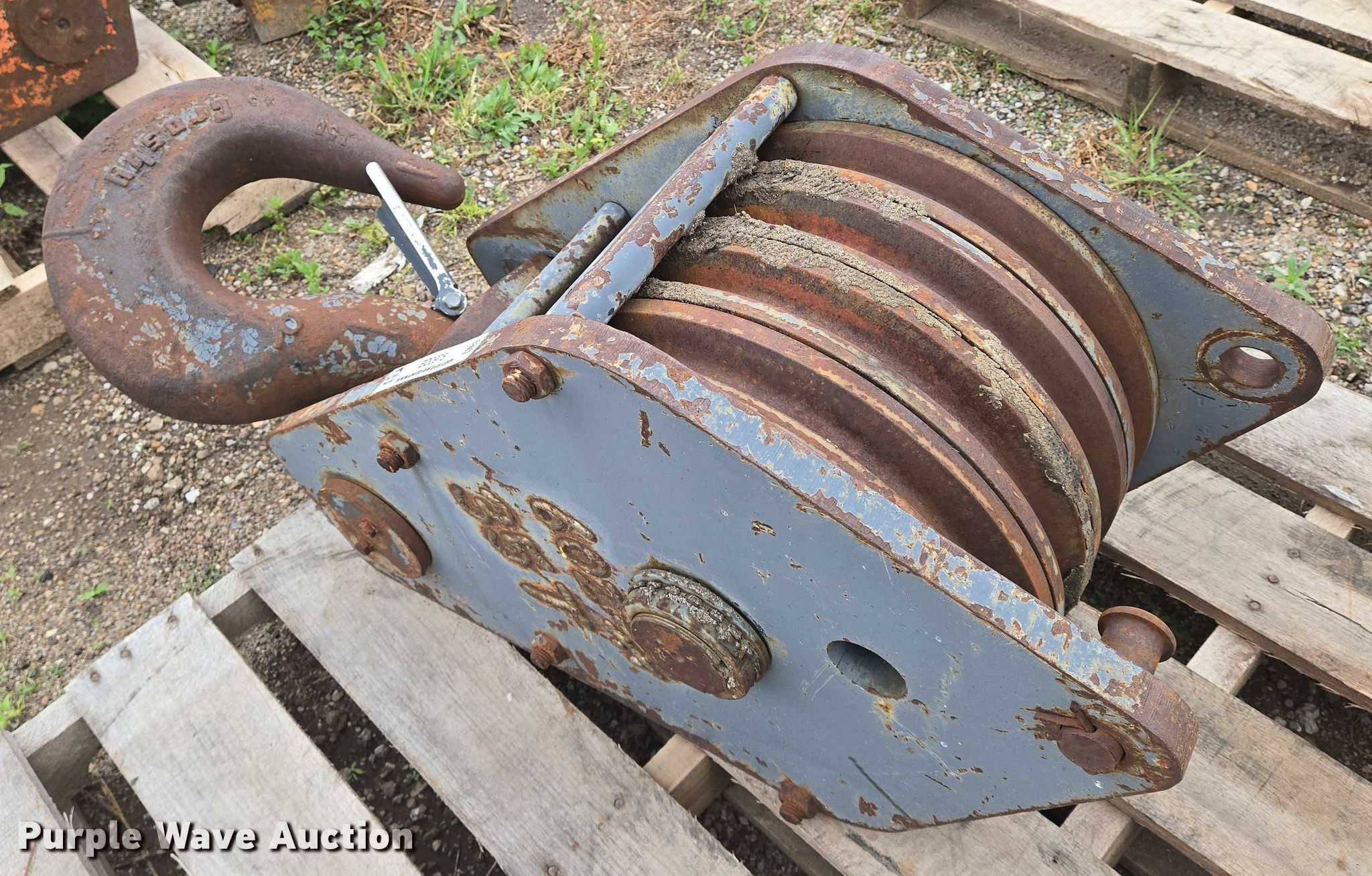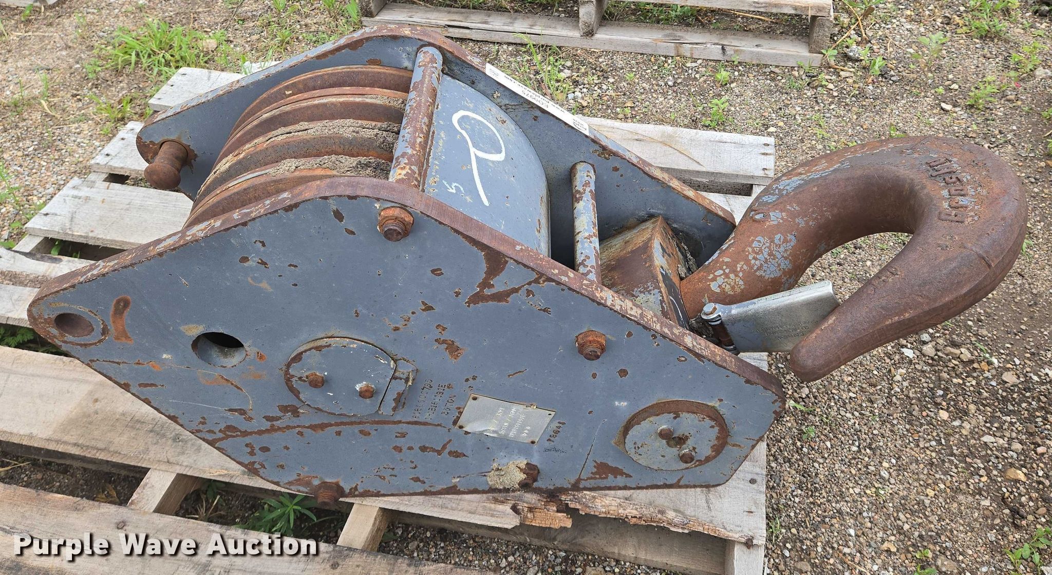 Purple Wave is selling a used Crane Attach. in Kansas. This item is a Crane block with the following: Rope wire capacity: 5/8", Capacity: 35 tons, Sheaves: 4