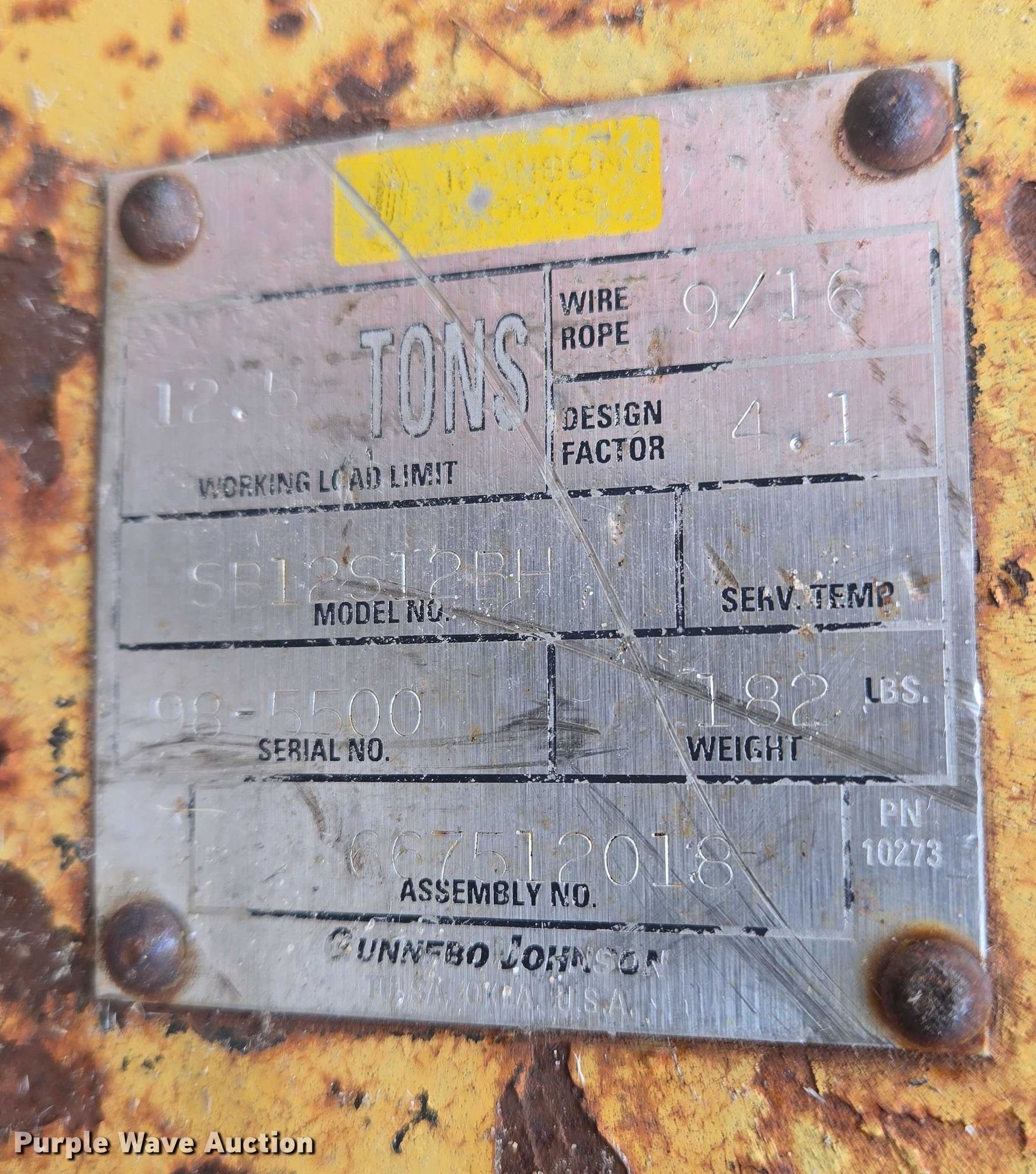 Purple Wave is selling a used Crane Attach. in Kansas. This item is a Johnson crane block with the following: Serial: 98-5500, Rope wire capacity: 9/16", Capacity: 12.5 tons, Sheaves: 1