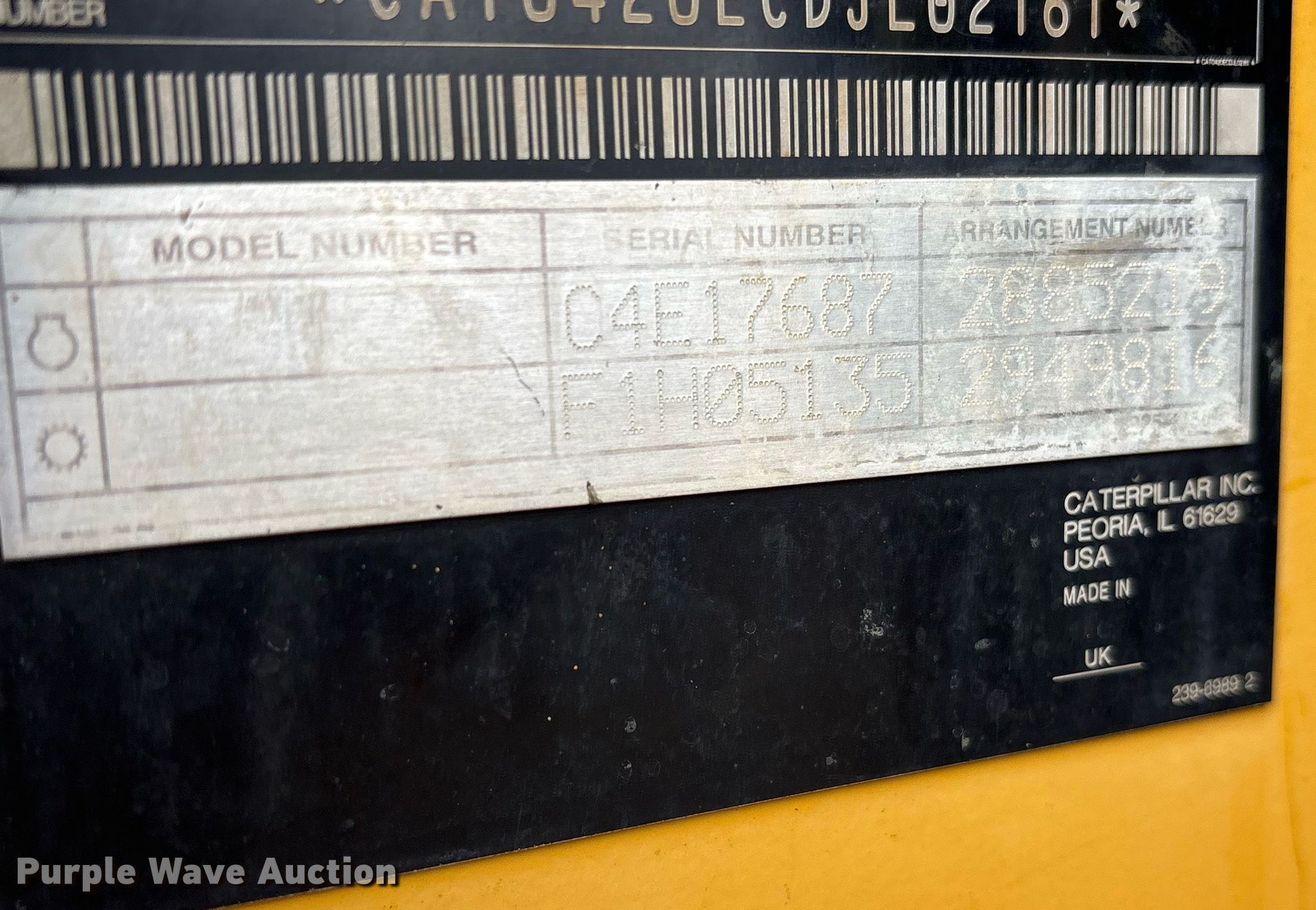 2011 Caterpillar 420E backhoe. Hours: 5,764 on meter, Serial: CAT0420ECDJL02161, Unit #: 3307. Engine Caterpillar C4.4 DIT, Displacement: 4.4L, Cylinders: 4, Fuel type: Diesel, HP: 101, kW: 75. Transmission Shuttle shift, 4F - 4R. Chassis Four wheel drive, Differential lock. Operators station OROPS, Backhoe controls: Pilot control, Pattern changer. Features Loader Bucket Caterpillar, Bucket leveler, Width: 89", Cutting edge: Bolt-on, Backhoe Auxiliary hydraulics, Bucket Caterpillar, Width: 24", Teeth: 5.. Tires Front: 12.5/80-18, Rear: 19.5L-24 IND. Welch Excavation. Winona, TX 75792