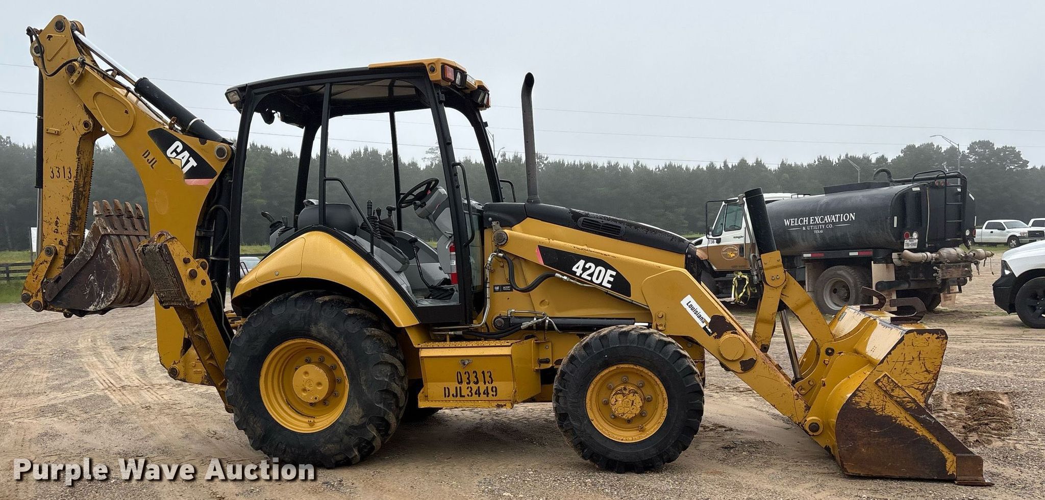 Purple Wave is selling a used Tractor Loader Backhoe in Texas. This item is a 2012 Caterpillar 420E backhoe with the following: Hours: 4,147 on meter, Serial: CAT0420EPDJL03449, Unit #: 3313