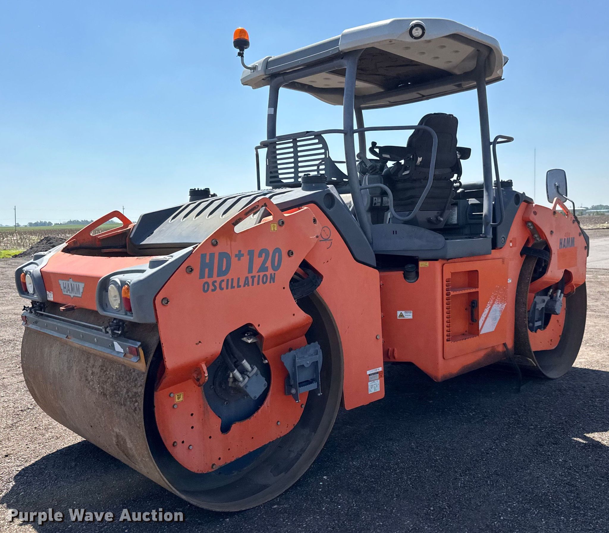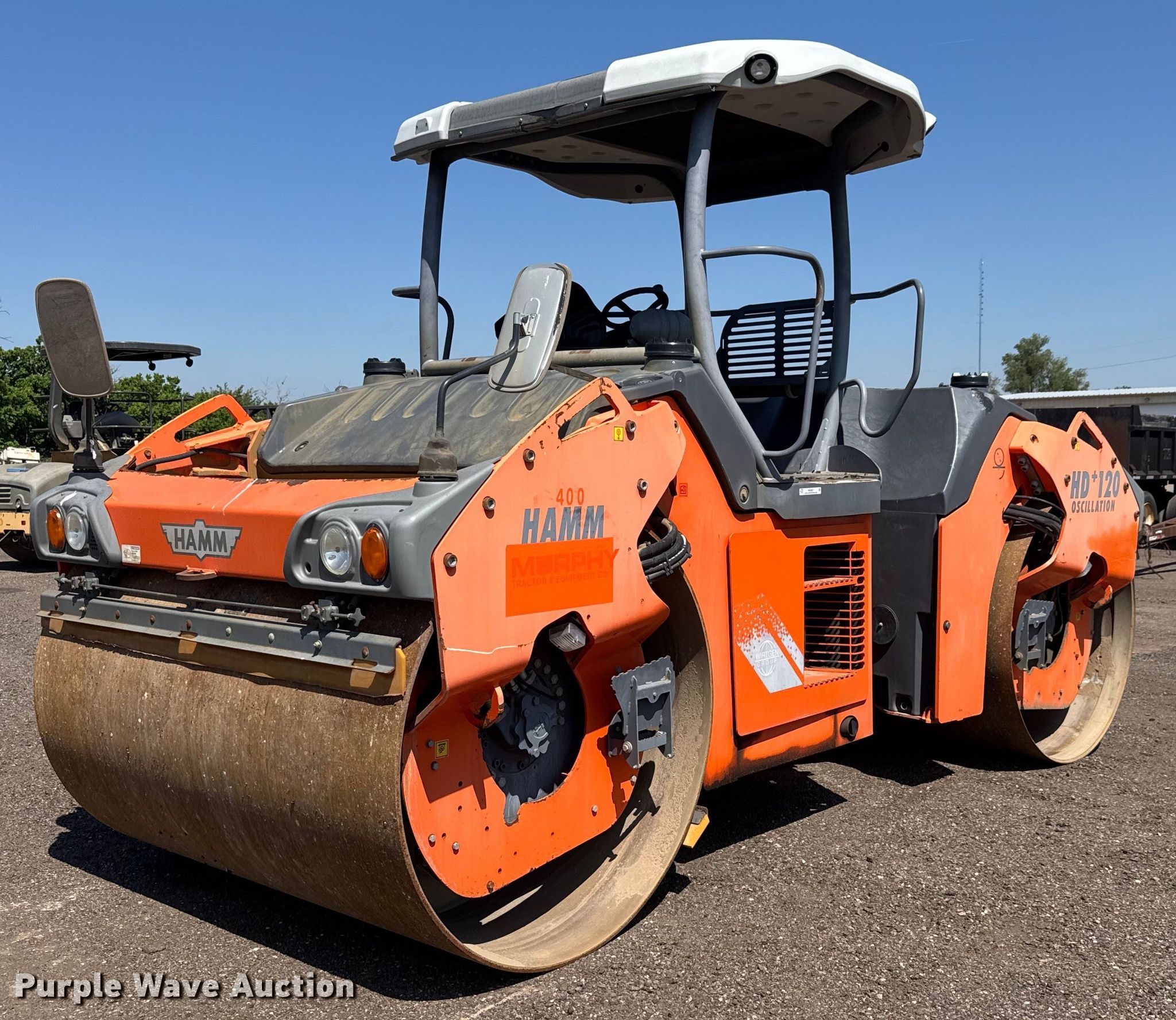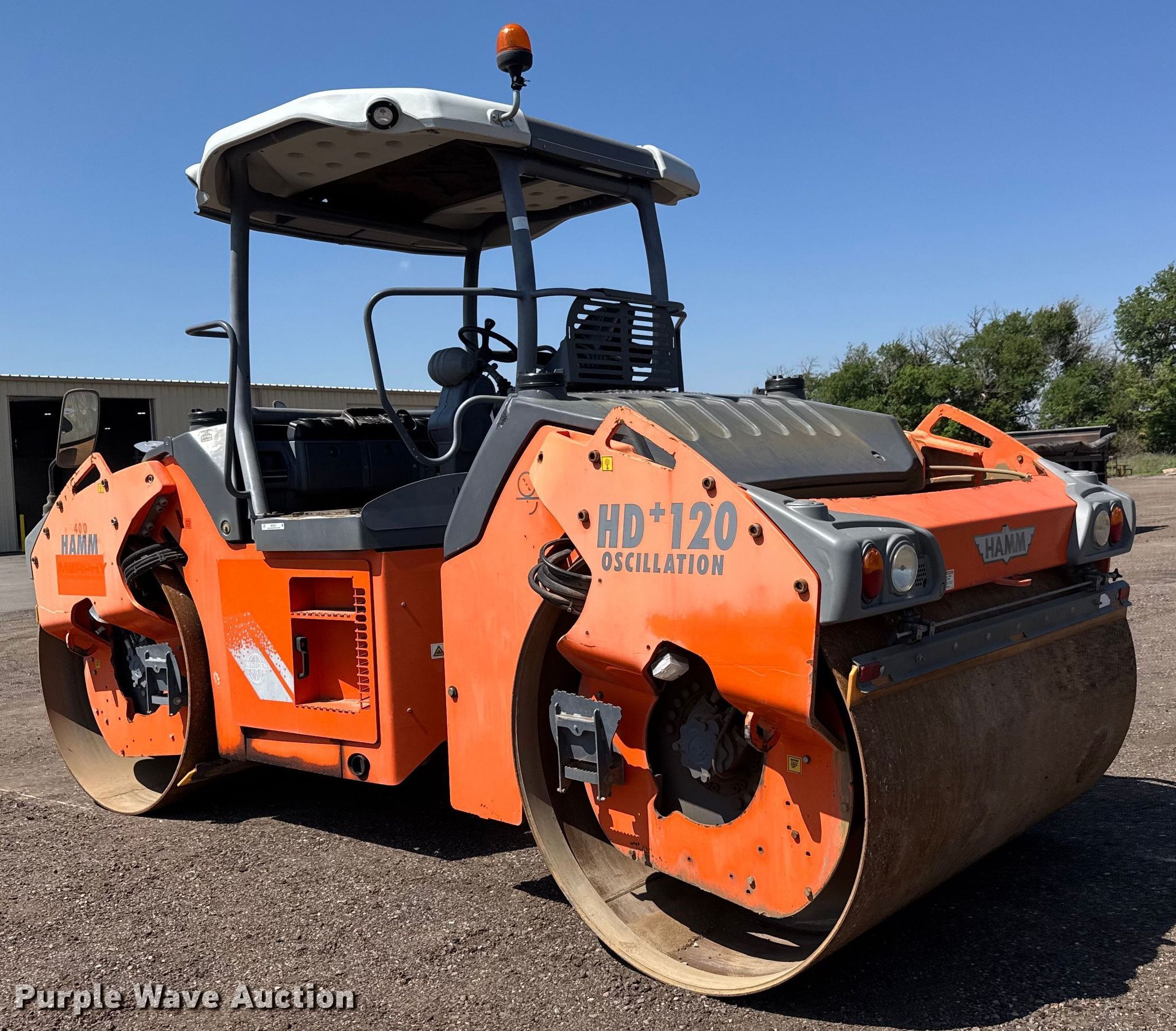 Purple Wave is selling a used Double Drum Roller Compactor in Kansas. This item is a 2012 Hamm HD+120VO double drum vibratory roller with the following: Hours: 3,343 on meter, Serial: H1840723