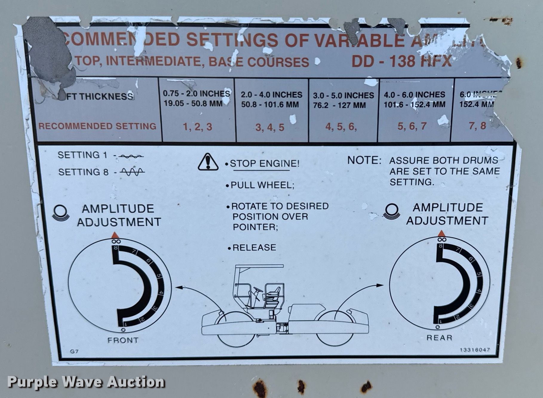 Purple Wave is selling a used Double Drum Roller Compactor in Kansas. This item is a 2004 Ingersoll-Rand DD-138HFA double drum vibratory roller with the following: Hours: 3,616 on meter, Serial: 179479