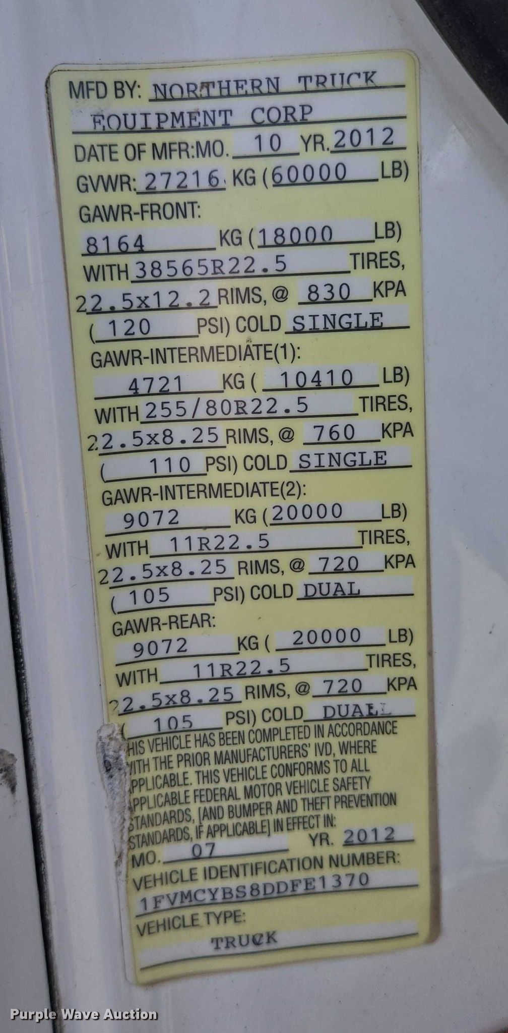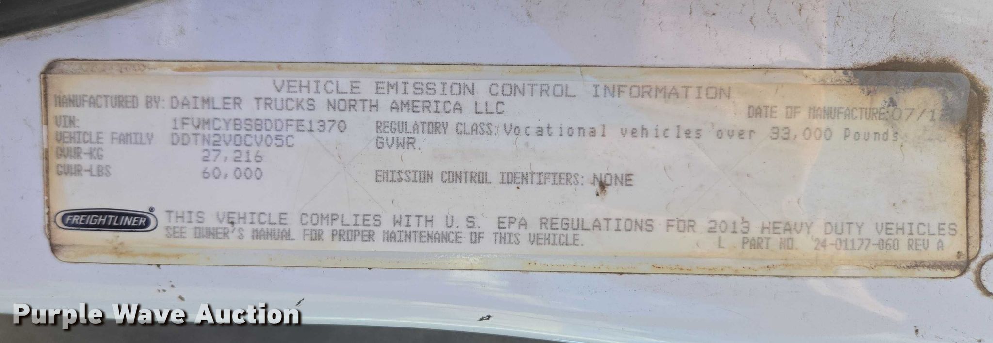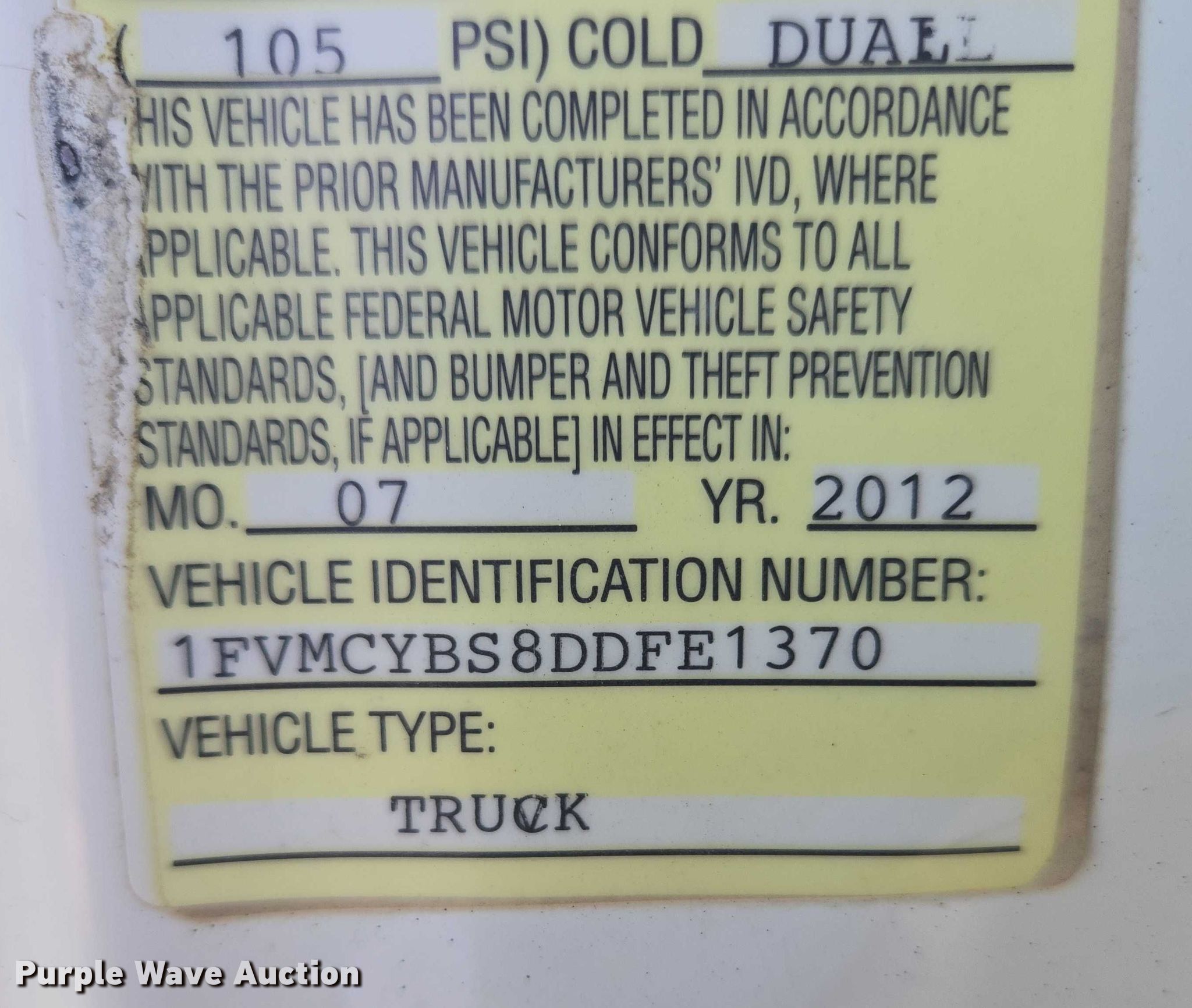 - VIN: 1FVMCYBS8DDFE1370