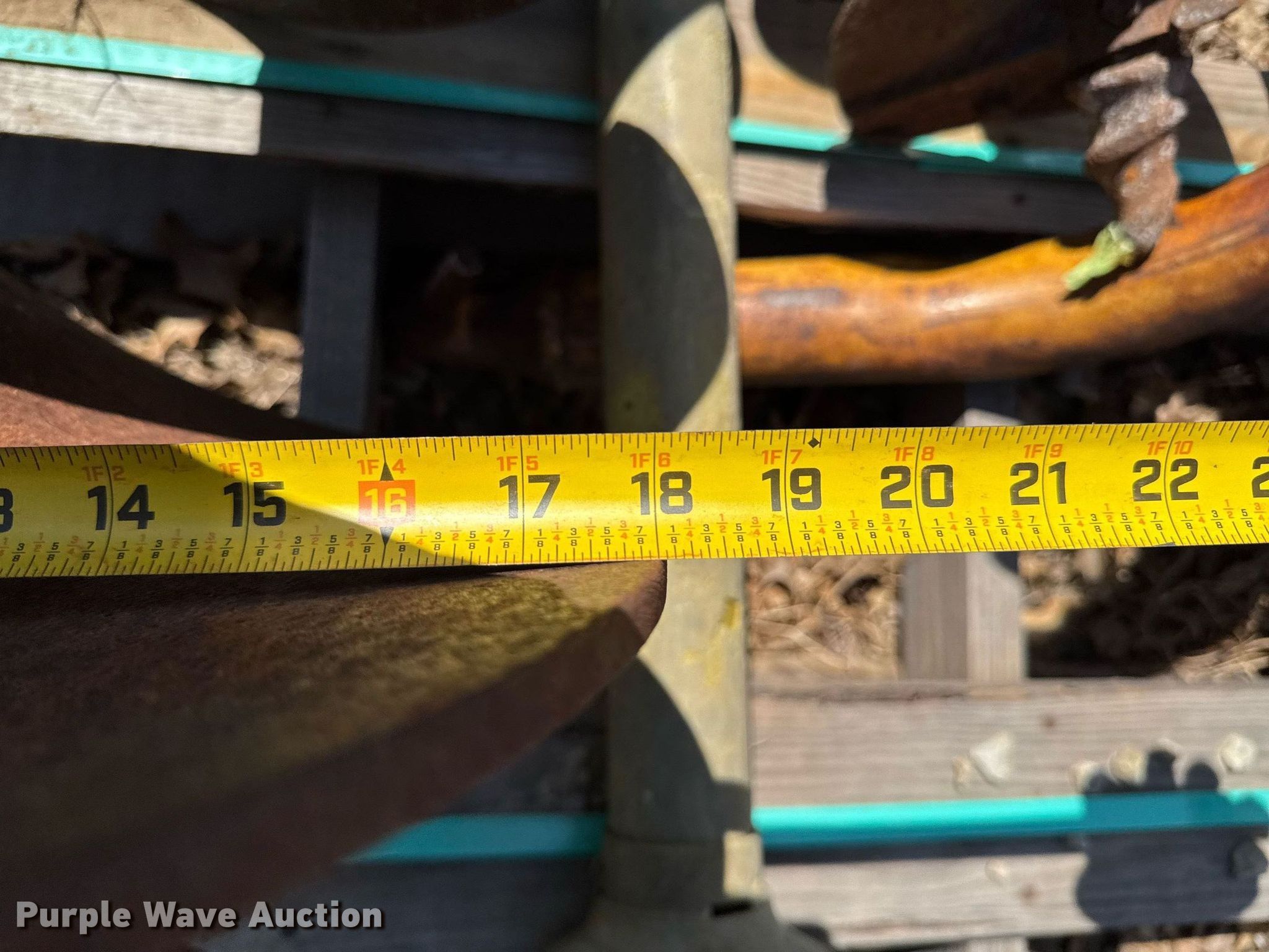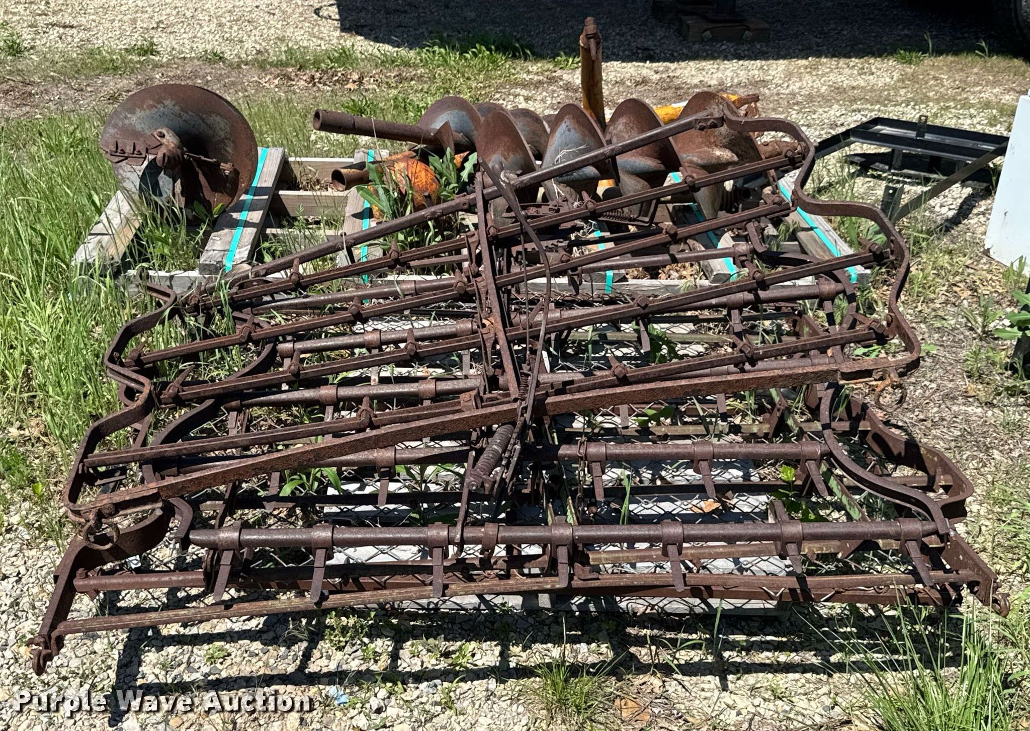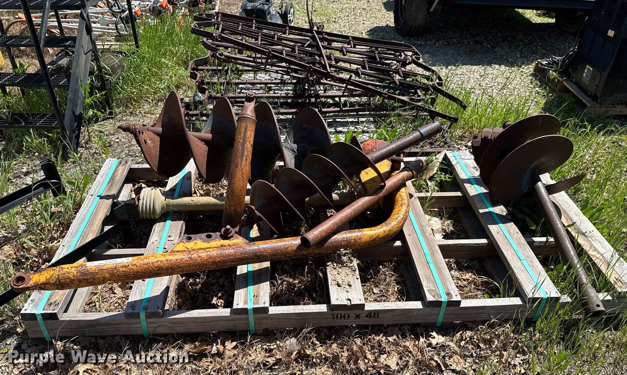 (2) ag attachments. Post hole auger. (3) bits 20� L x 18" diameter, 45� L x 18" diameter, 30� L x 12" diameter, Hitch: Three point, PTO: 540. (3) 66� W spike tooth harrow sections Bars: 4. City of Chanute, KS. Chanute, KS 66720