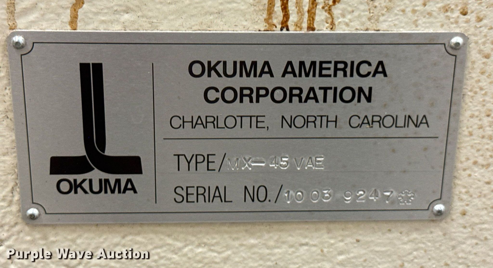 Purple Wave is selling a used Milling Machines in Kansas. This item is a Okuma MX-45VAE CNC vertical machining center with the following: Serial: 10039247