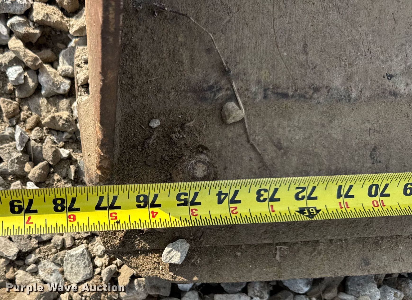 2002 FFC 44295/A1 skid steer bucket. Serial: B011235, Width: 77", Four-in-one, Cutting edge: Bolt-on. Item unavailable for removal until July 7, 2025. City of Kirksville. Kirksville, MO 63501