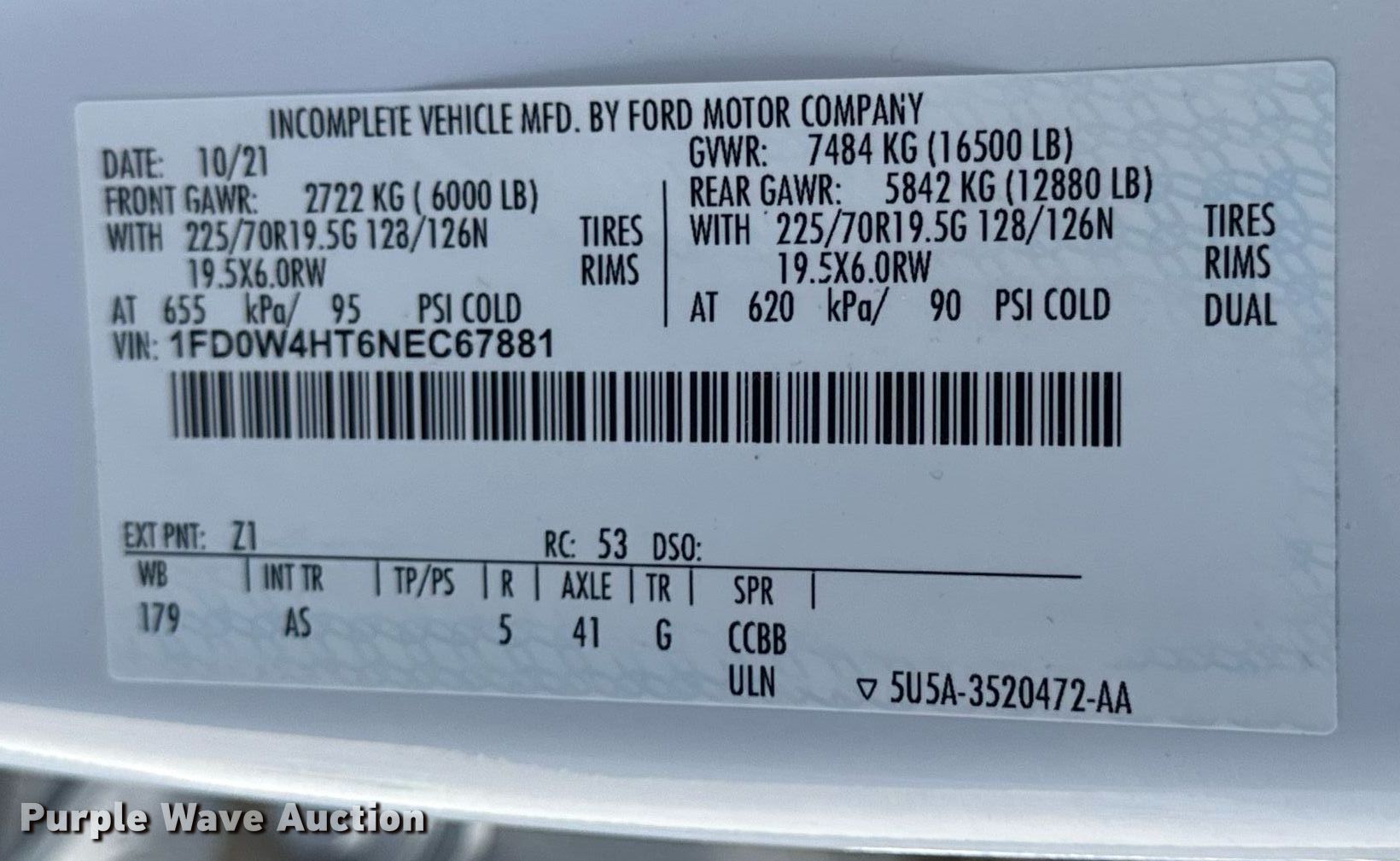 Purple Wave is selling a used Truck Chassis in Missouri. This item is a 2022 Ford F450 Super Duty XL truck cab and chassis with the following: Miles: 35,777 on odometer, Hours: 1,984 on meter, VIN: 1FD0W4HT6NEC67881